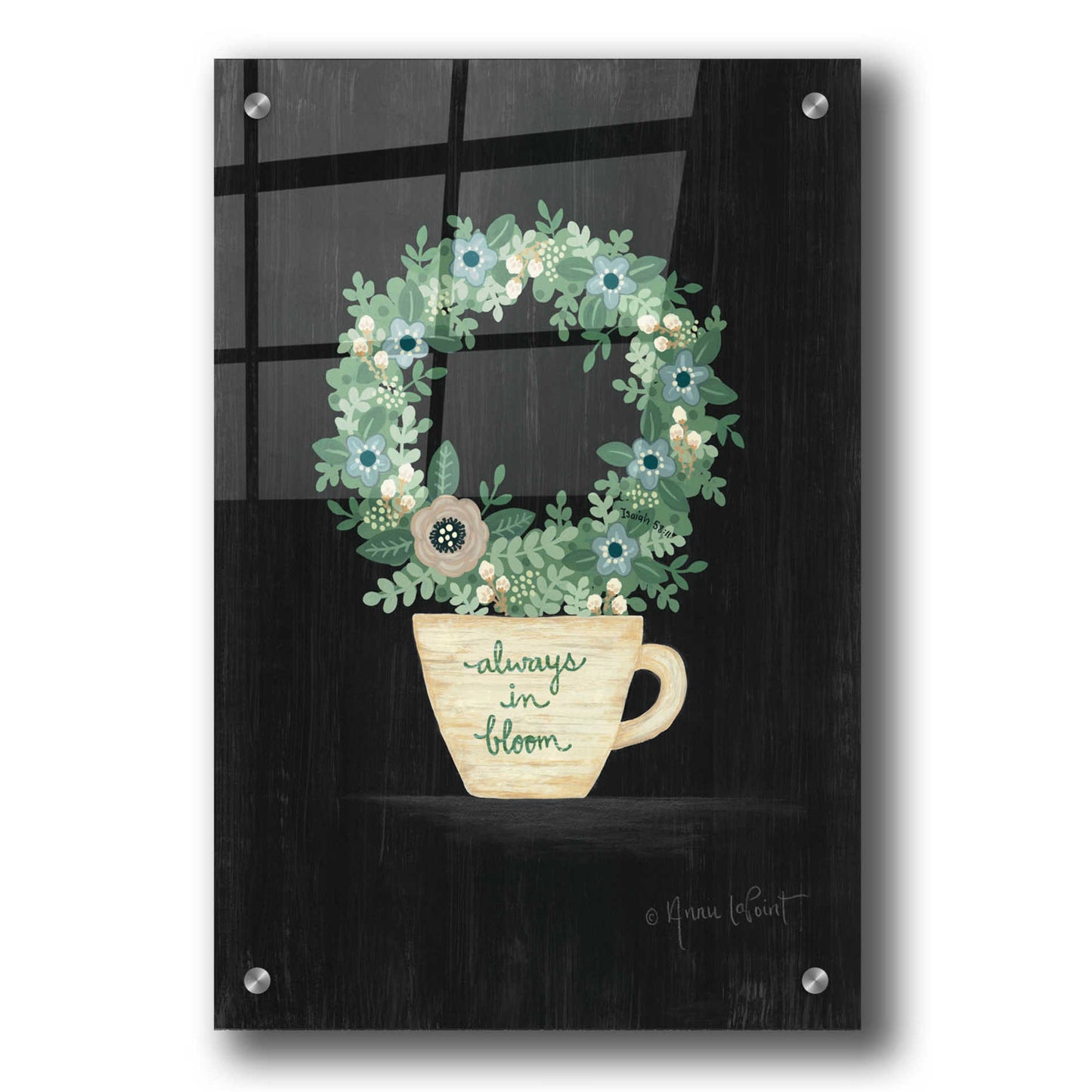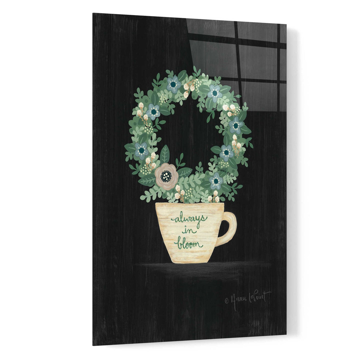 Annie LaPoint has created art from a young age. Growing up in California, she loved art classes so much that she received private art lessons as a teenager. Today, she uses mixed media to create products for home and garden. Each artwork has a bible scripture reference. This is her way to give back to God.
