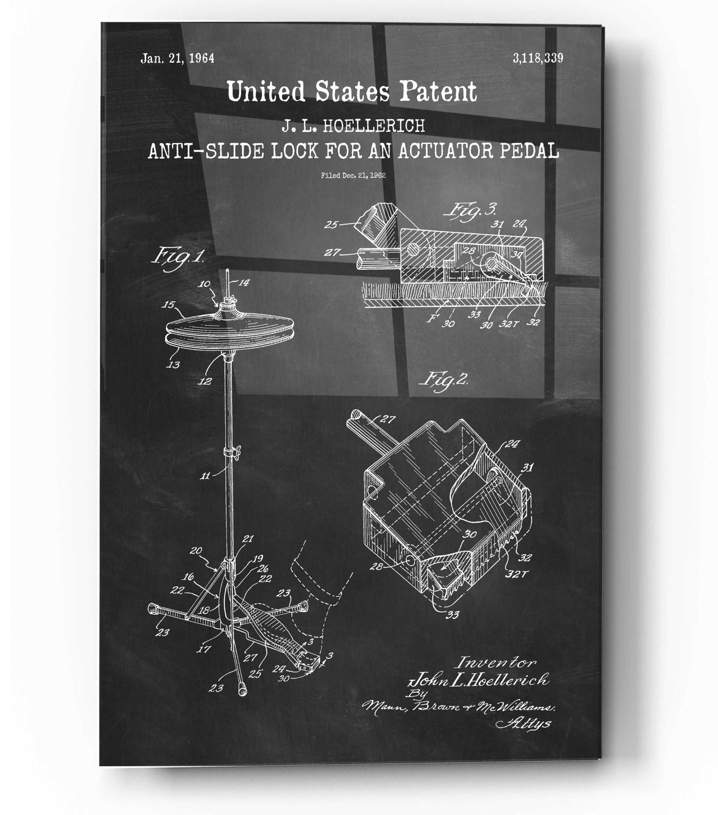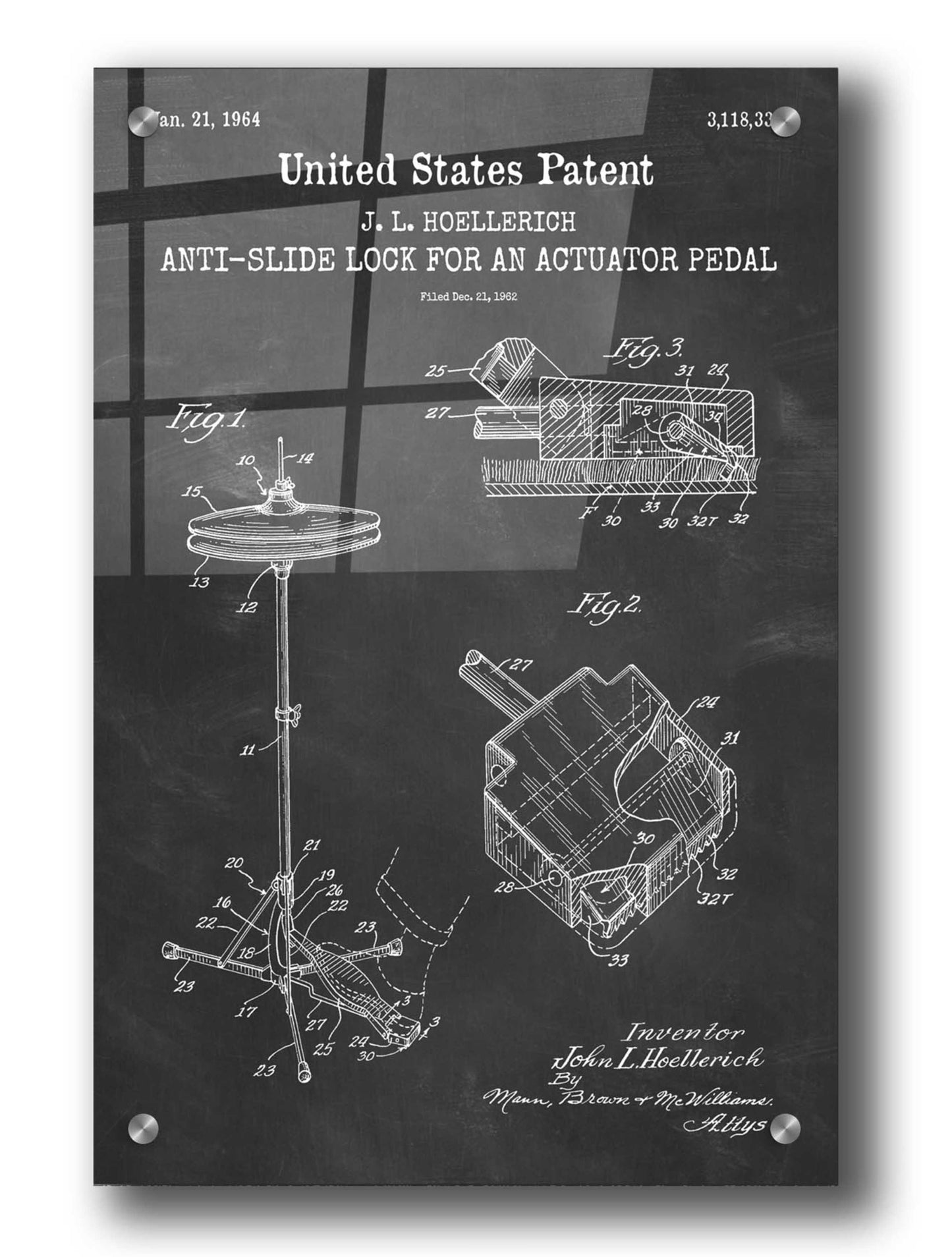 Anti-slide Lock Blueprint Patent Chalkboard. An official US Patent remastered by Epic Art. Available on blackboard or parchment background.