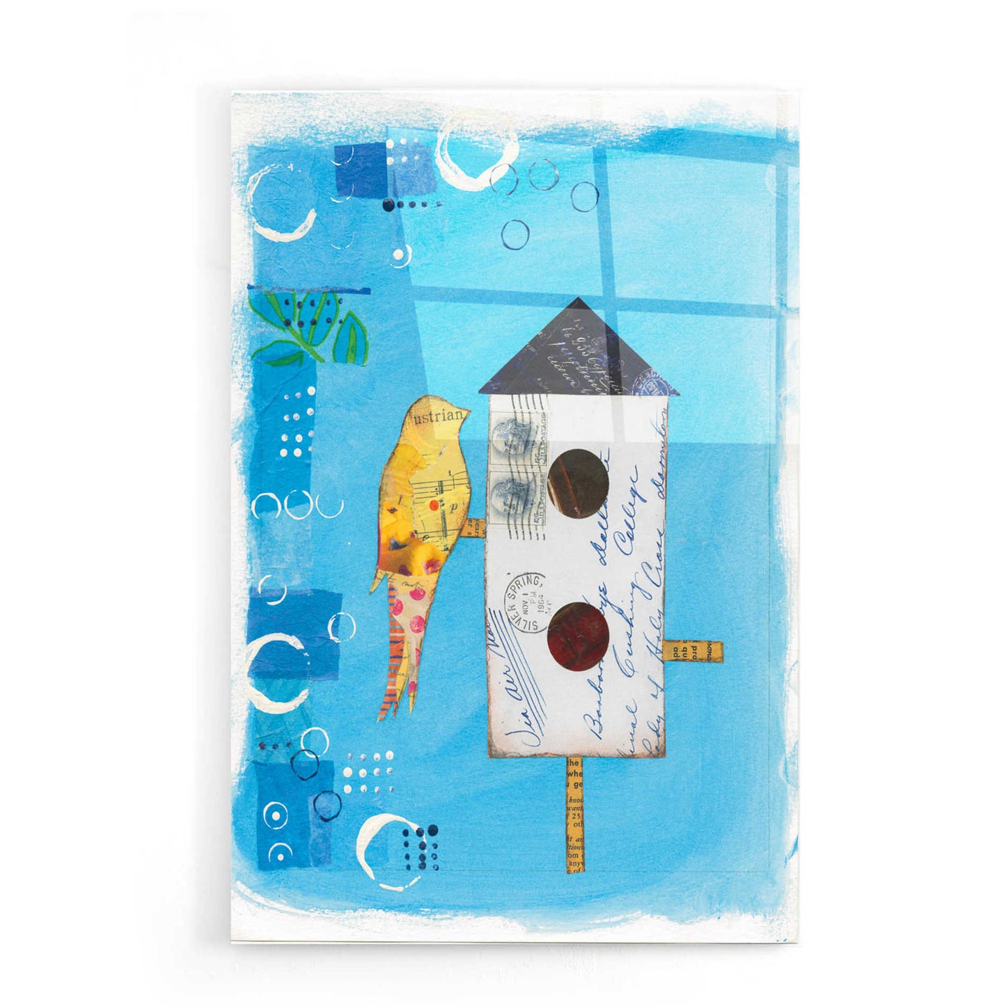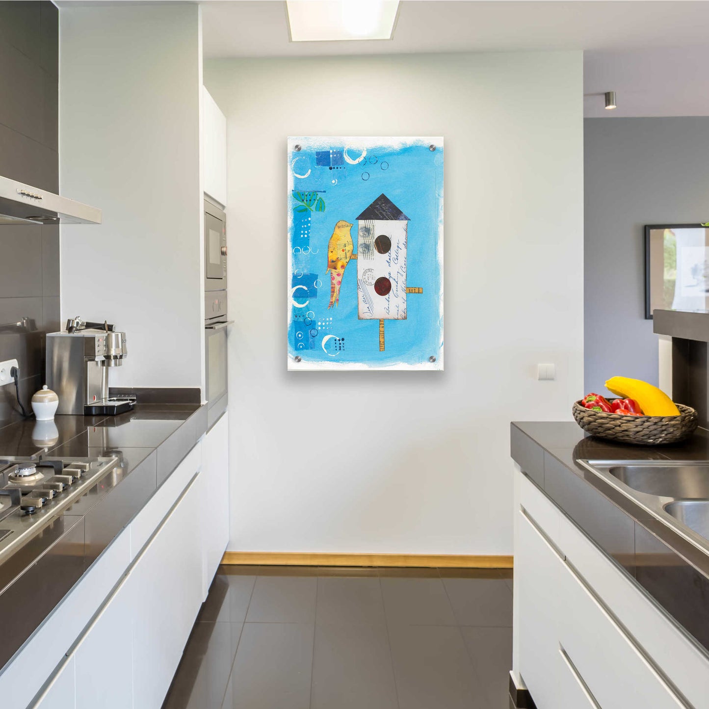 "At Home III" by Courtney Prahl. Courtney is a mixed media artist. Collaging old and new materials are her signature style. She enjoys searching for vintage art materials to incorporate into her artwork. Residing in Maryland with her husband and two sons, she teaches art to children and is co-founder of her local art charity "Lend a Hand." Acrylic wall art looks amazing in your home or business. Printed on the back of the acrylic giving it depth and easy maintenance. The highly durable and hard-to-damage qualities make high definition acrylic the ideal wall art for hotels, rental properties, and restaurants. Now Epic Art brings you unmatched value in contemporary wall decor for your home as well. From small sizes to extra large sizes, it is easy to hang, won't shatter like glass if it ever falls down, and is easy to maintain. Simply dust it off or use a damp soft cloth for cleaning.