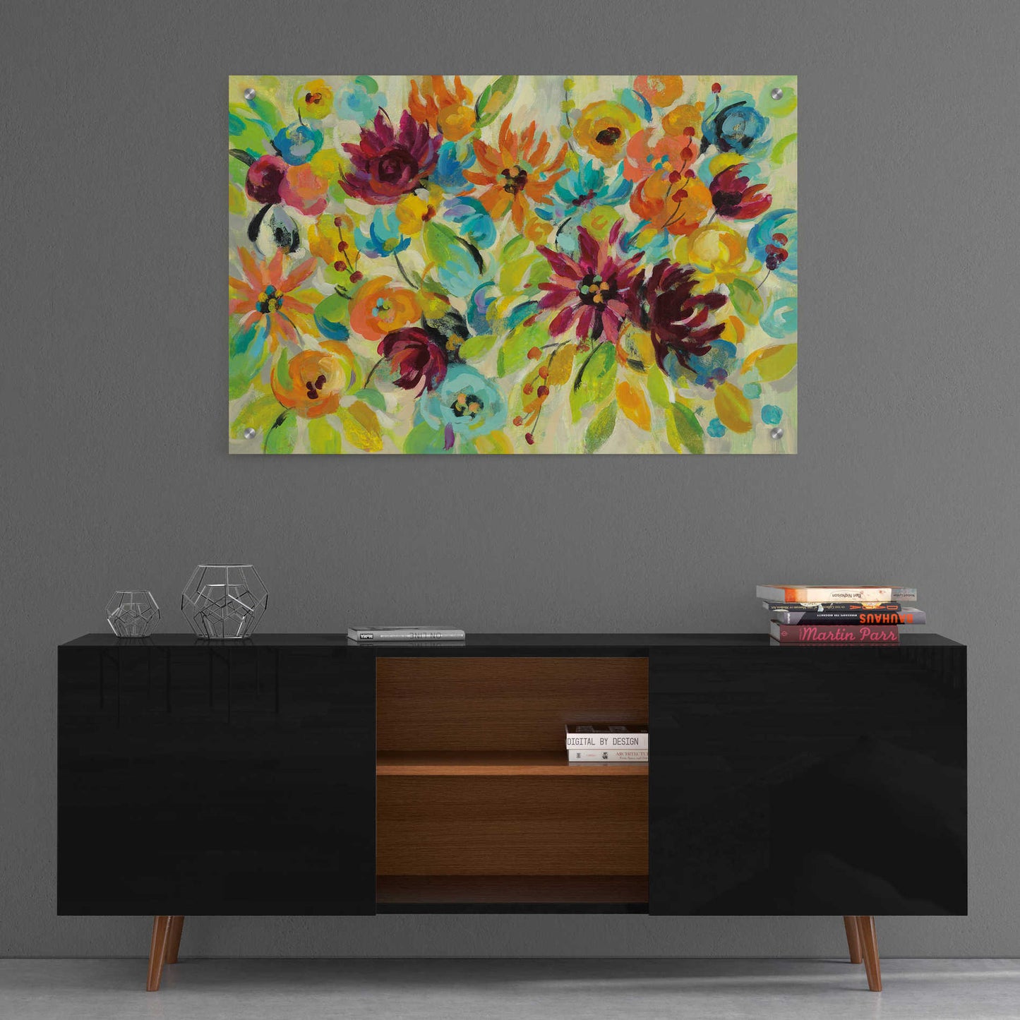 "Autumn Joy" by Silvia Vassileva. Silvia Vassileva pursued her love of art at the Academy of Fine Art in Bulgaria, where she earned both her bachelor's and master's degrees. She spent six years painting and exhibiting her work in Japan before moving to the U.S. Silvia describes her style as very free and bold. She makes her paintings come alive by using contrast and unusual color palettes. Silvia's home studio, which she designed herself, is bright, contemporary and minimalist. Acrylic wall art looks amazing in your home or business. Printed on the back of the acrylic giving it depth and easy maintenance. The highly durable and hard-to-damage qualities make high definition acrylic the ideal wall art for hotels, rental properties, and restaurants. Now Epic Art brings you unmatched value in contemporary wall decor for your home as well. From small sizes to extra large sizes, it is easy to hang, won't shatter like glass if it ever falls down, and is easy to maintain. Simply dust it off or use a damp soft cloth for cleaning.