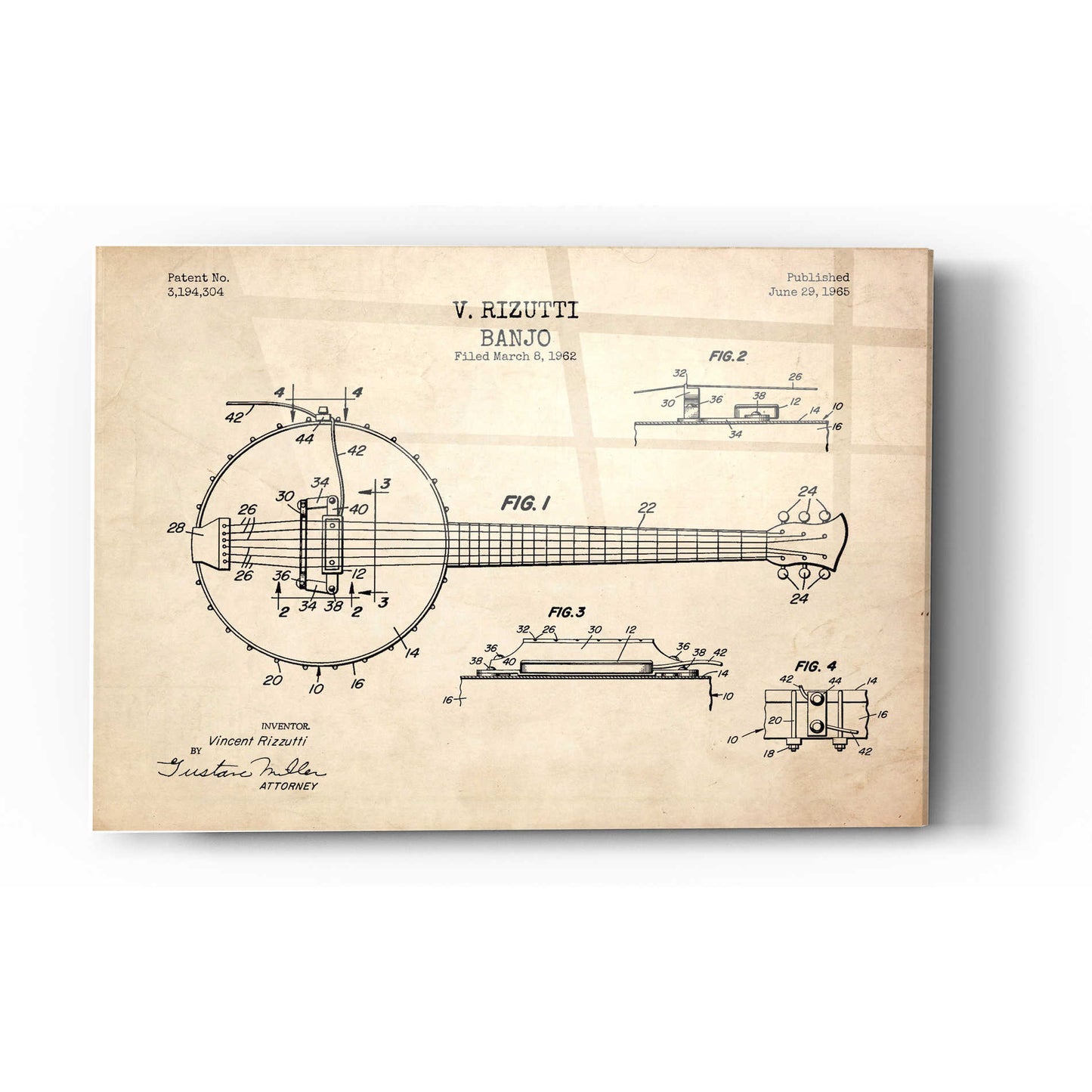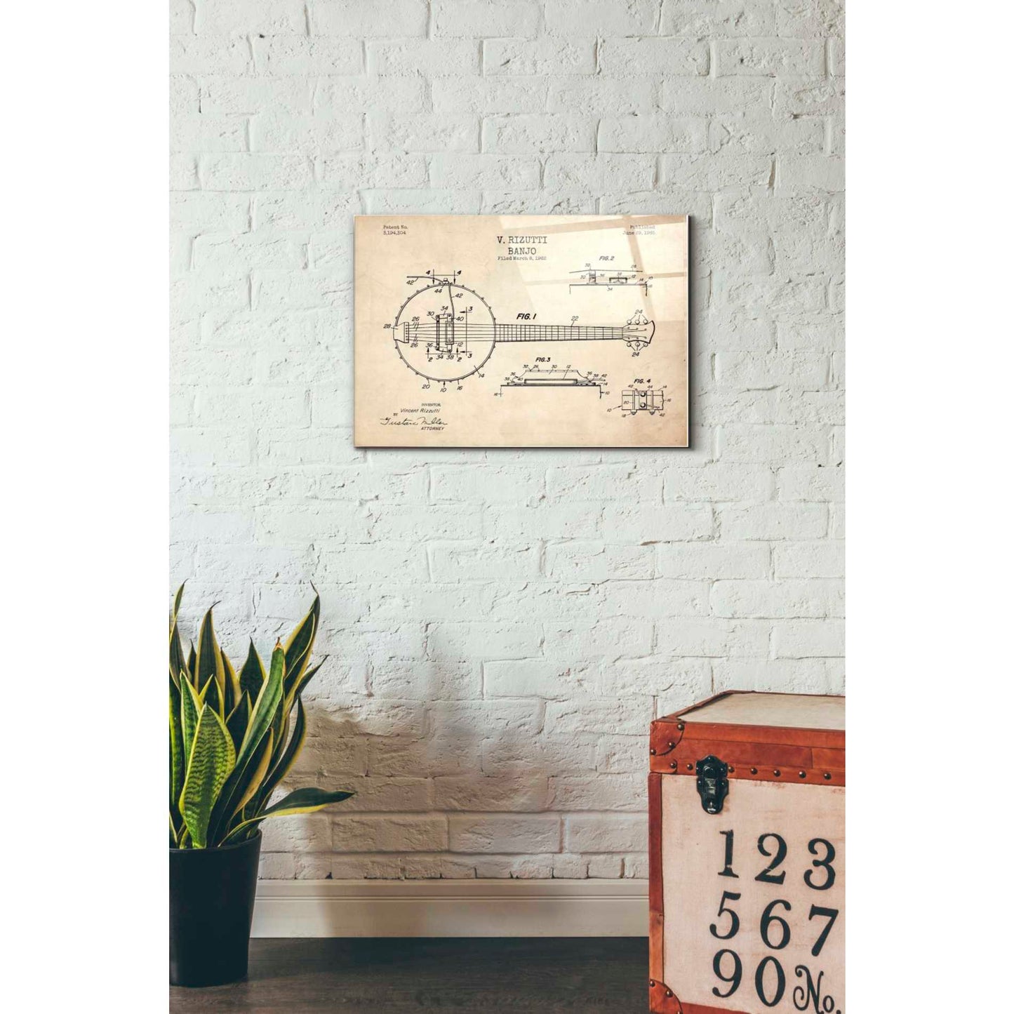 Epic Art 'Banjo Blueprint Patent Parchment' Acrylic Glass Wall Art