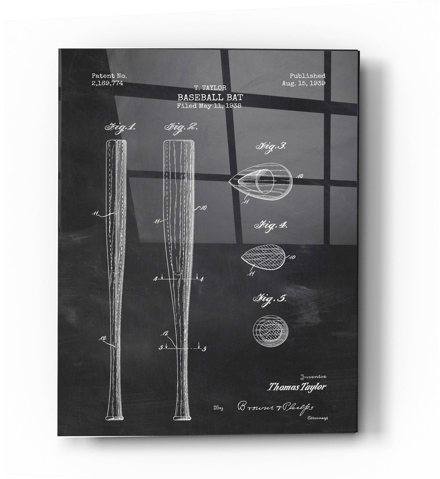 Epic Art 'Baseball Bat Blueprint Patent Chalkboard' Acrylic Glass Wall Art