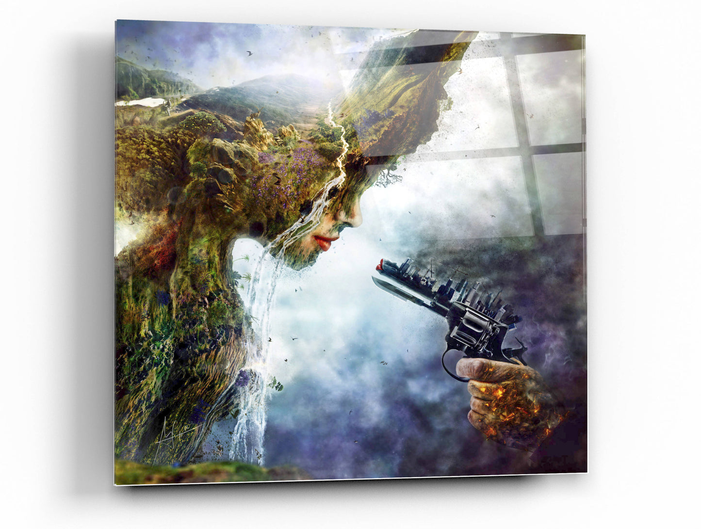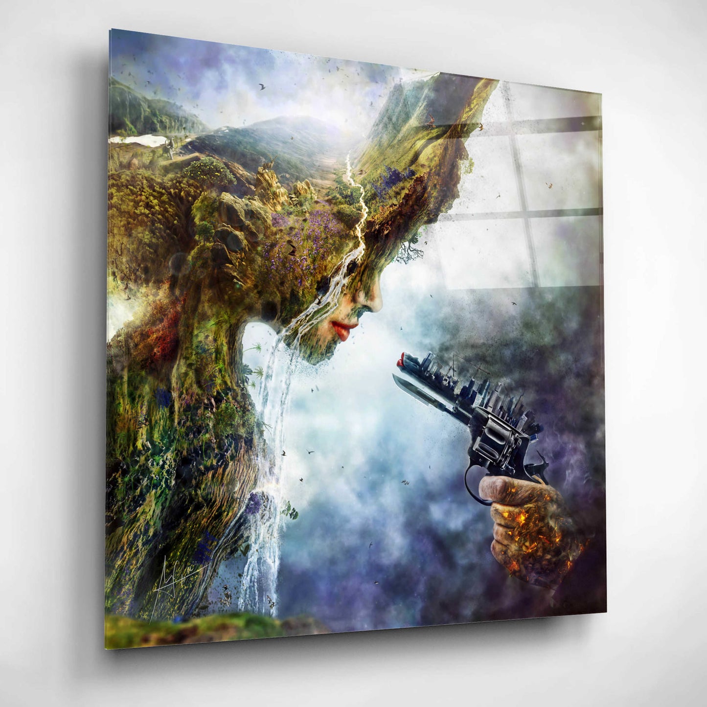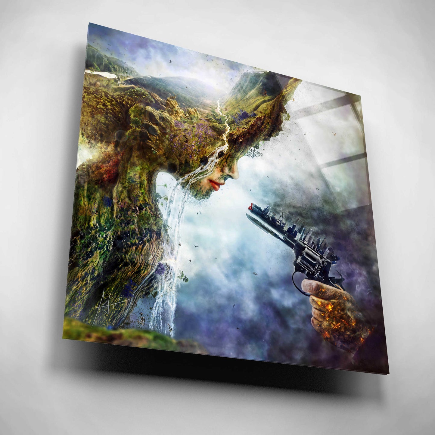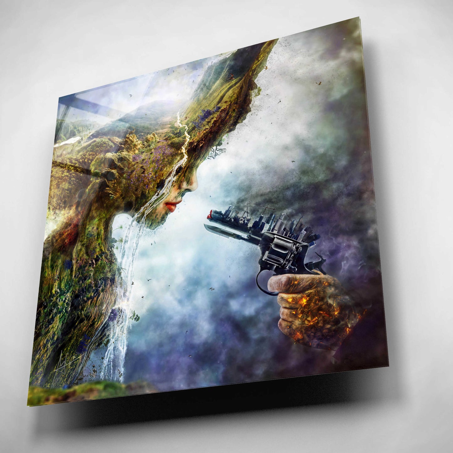 "Betrayal" by Mario Sanchez Nevado. Mario Nevado delivers some of the best surreal artworks of the digital era, but it's his sensitive but caustic approach to storytelling that makes his style to be an unique emotional experience. Acrylic wall art looks amazing in your home or business. Printed on the back of the acrylic giving it depth and easy maintenance. The highly durable and hard-to-damage qualities make high definition acrylic the ideal wall art for hotels, rental properties, and restaurants. Now Epic Art brings you unmatched value in contemporary wall decor for your home as well. From small sizes to extra large sizes, it is easy to hang, won't shatter like glass if it ever falls down, and is easy to maintain. Simply dust it off or use a damp soft cloth for cleaning.