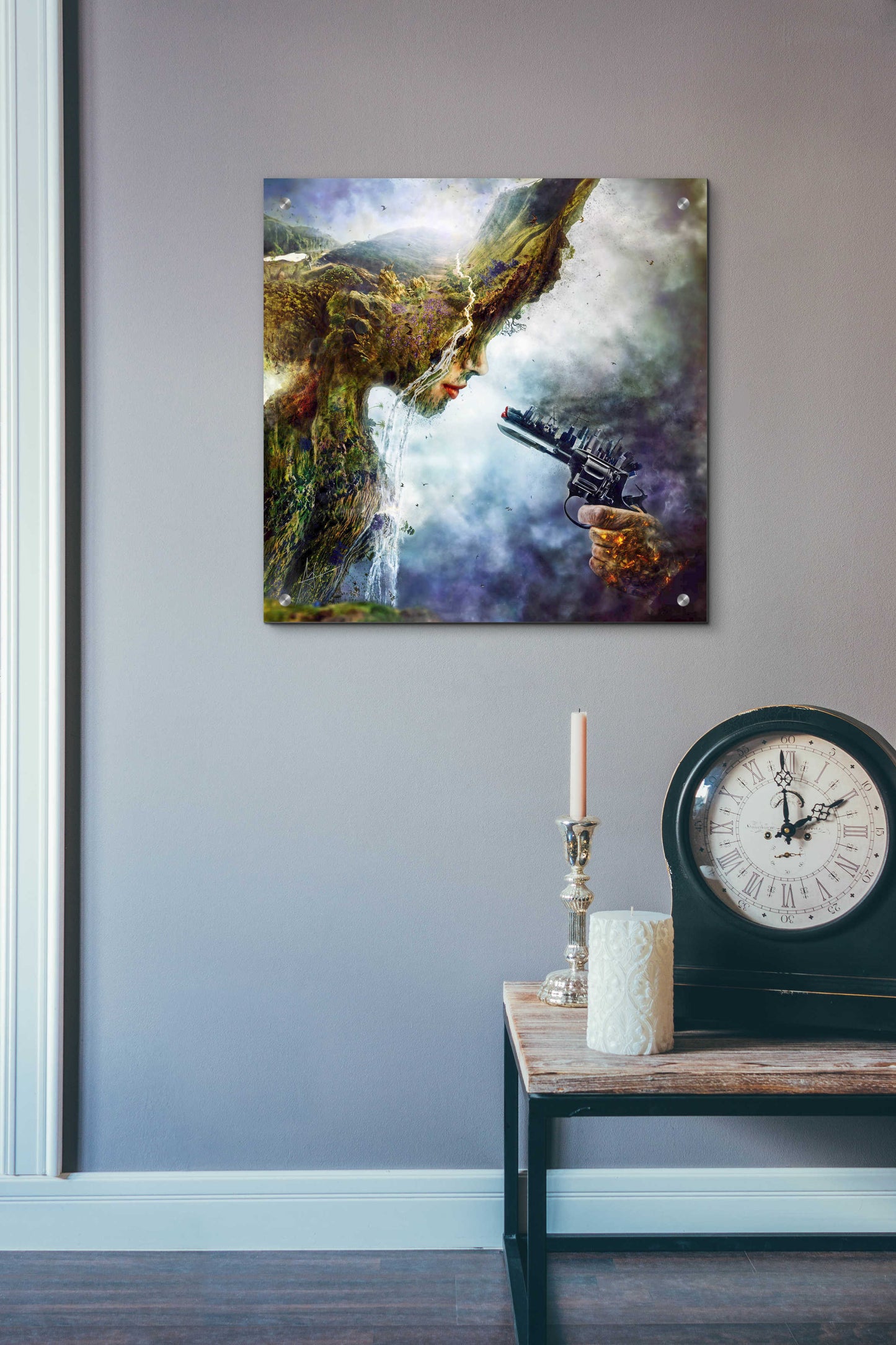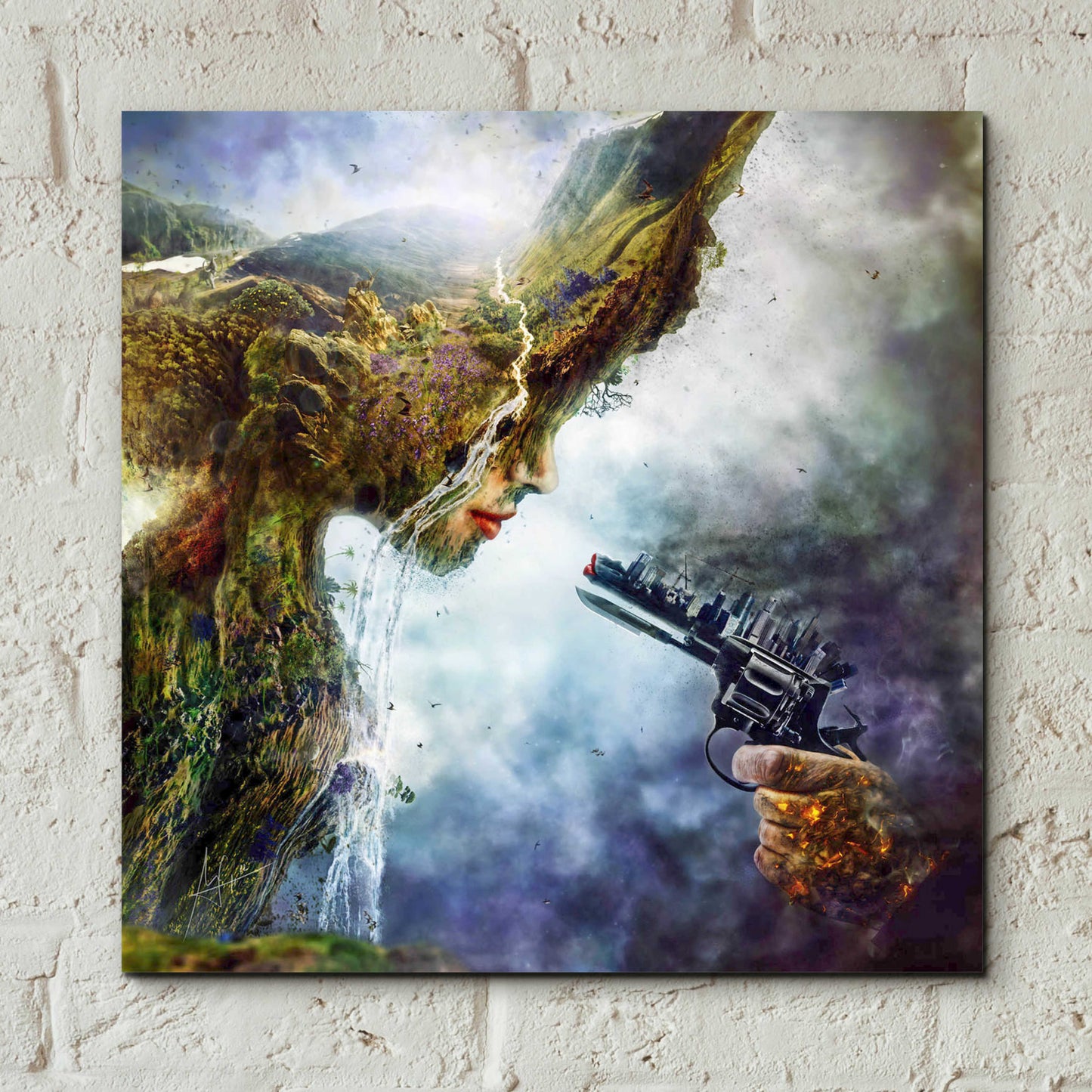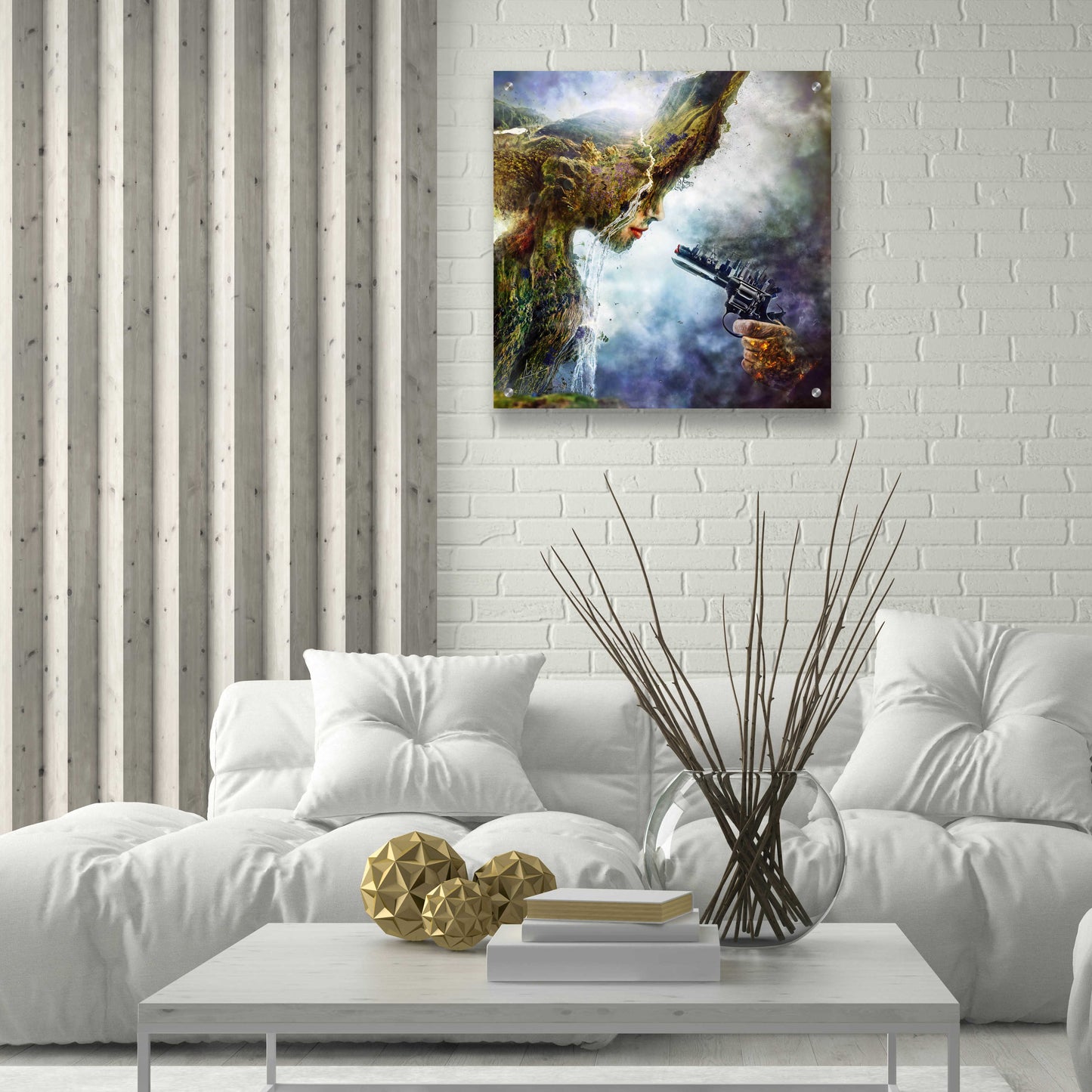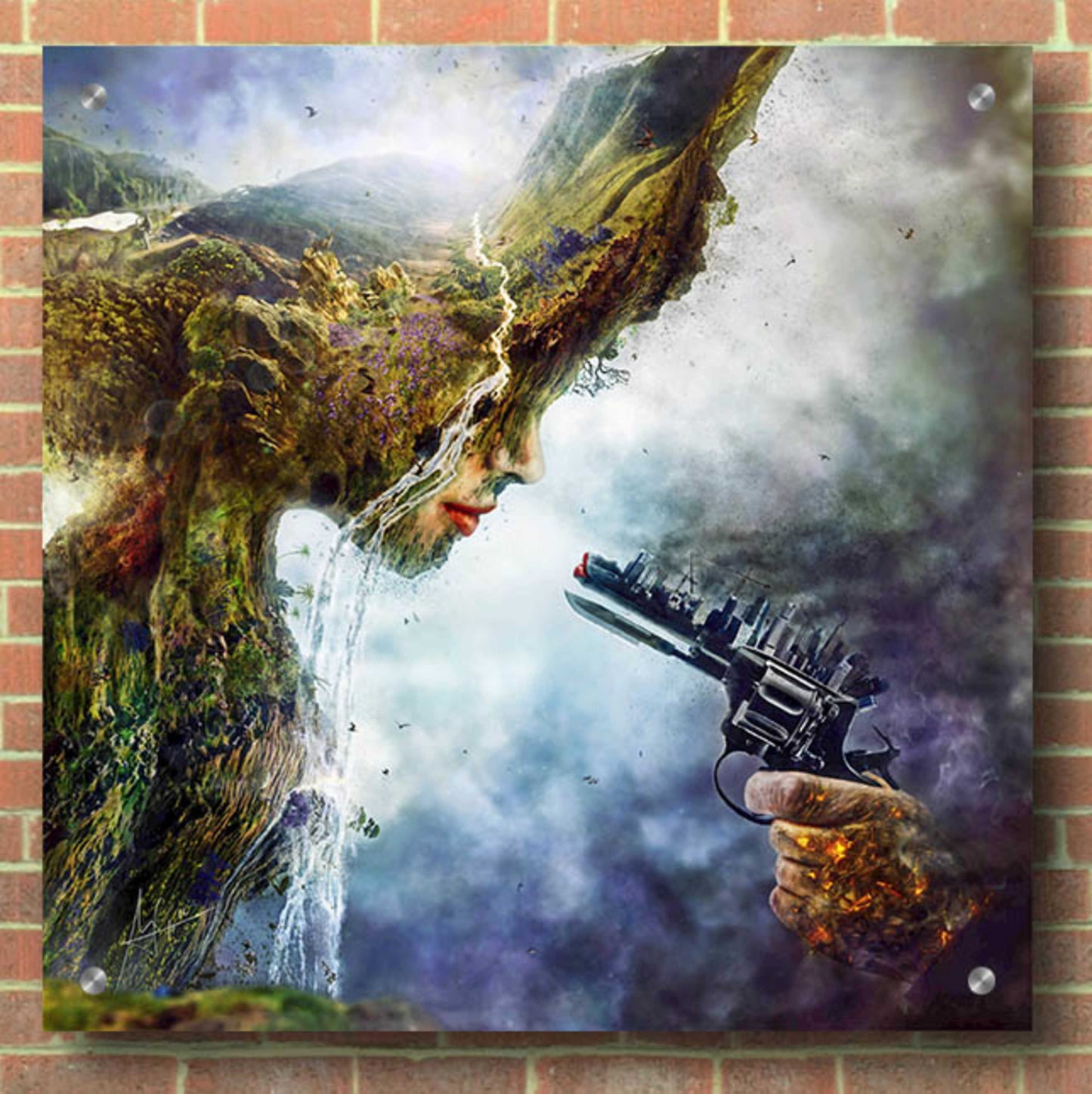 "Betrayal" by Mario Sanchez Nevado. Mario Nevado delivers some of the best surreal artworks of the digital era, but it's his sensitive but caustic approach to storytelling that makes his style to be an unique emotional experience. Acrylic wall art looks amazing in your home or business. Printed on the back of the acrylic giving it depth and easy maintenance. The highly durable and hard-to-damage qualities make high definition acrylic the ideal wall art for hotels, rental properties, and restaurants. Now Epic Art brings you unmatched value in contemporary wall decor for your home as well. From small sizes to extra large sizes, it is easy to hang, won't shatter like glass if it ever falls down, and is easy to maintain. Simply dust it off or use a damp soft cloth for cleaning.
