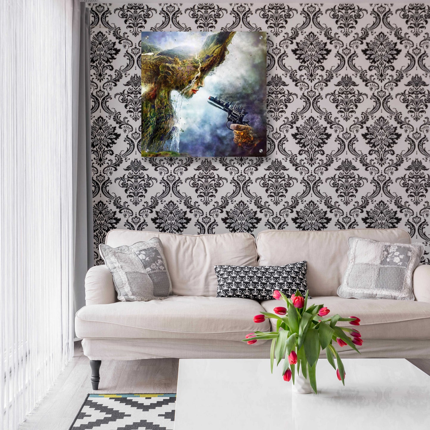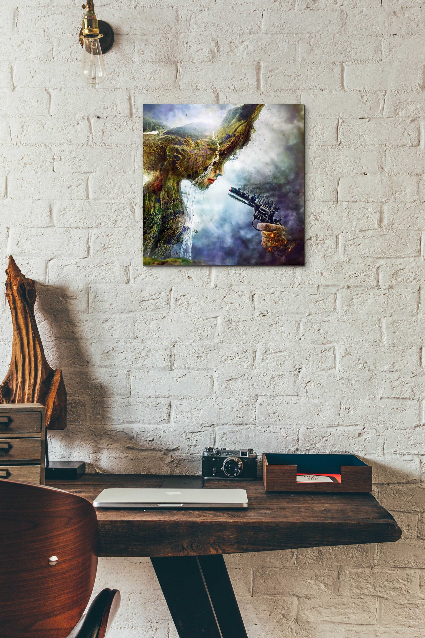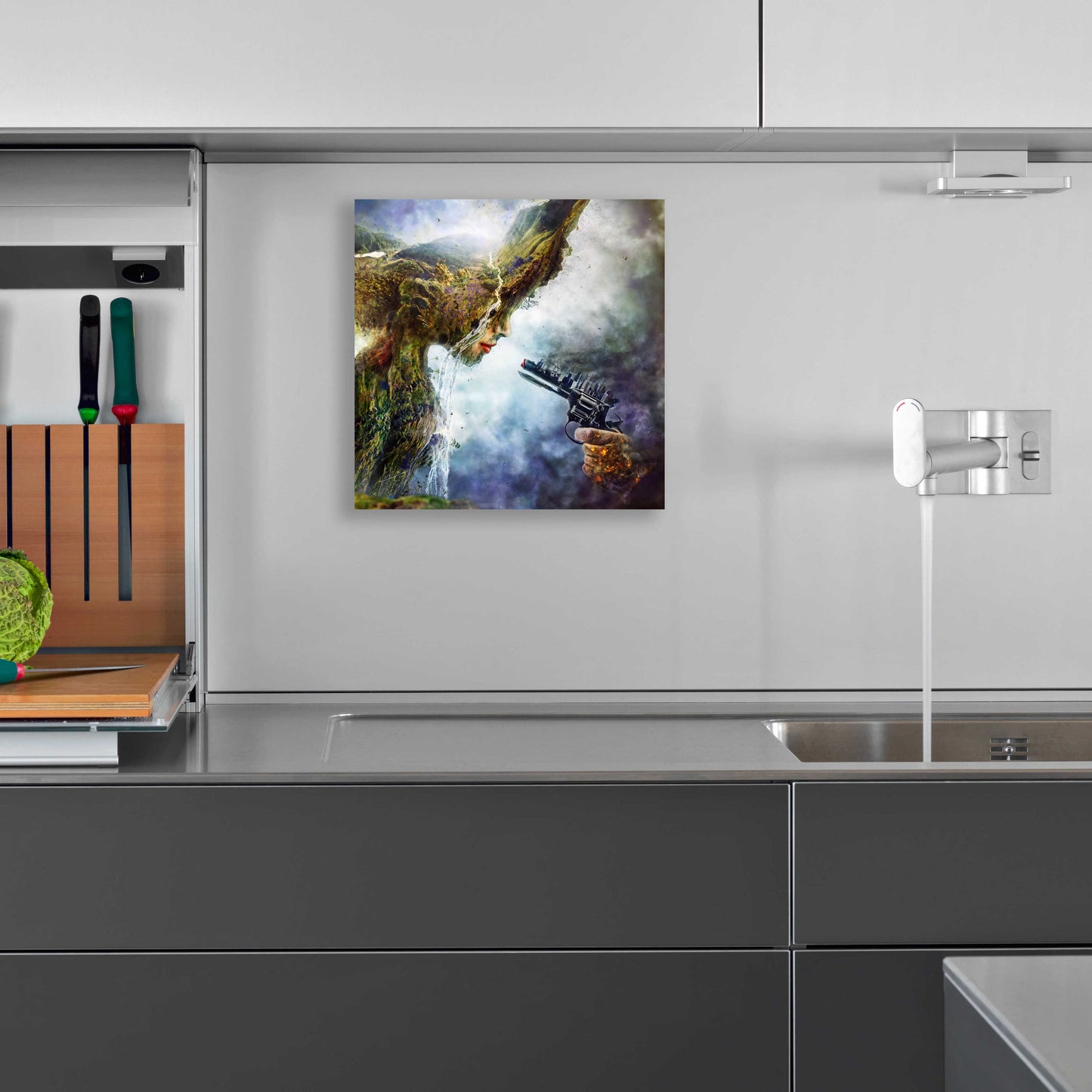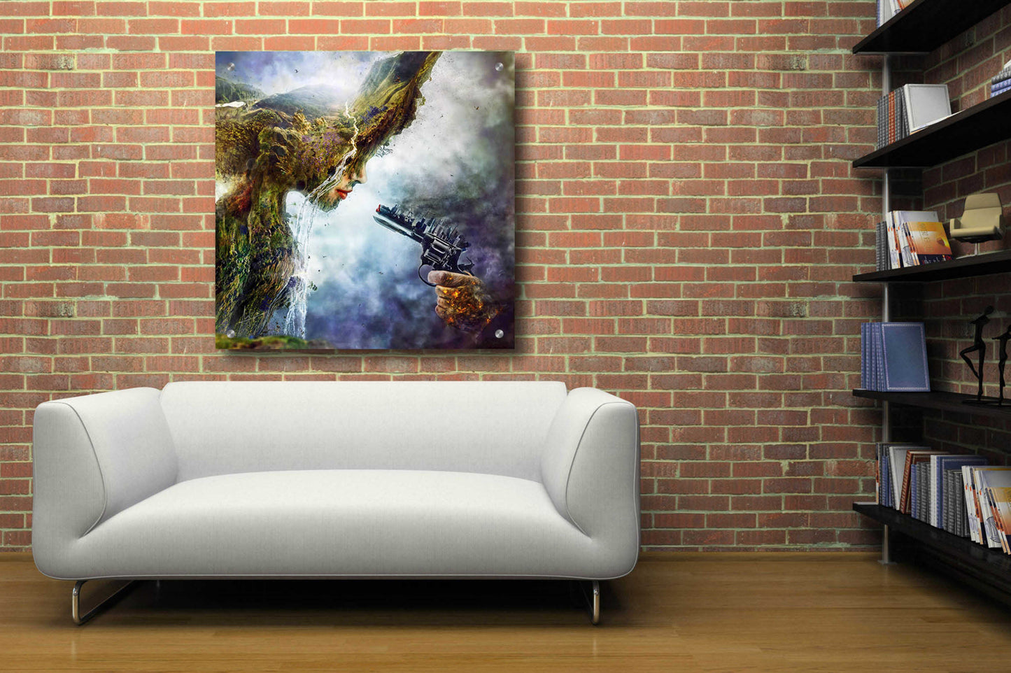 "Betrayal" by Mario Sanchez Nevado. Mario Nevado delivers some of the best surreal artworks of the digital era, but it's his sensitive but caustic approach to storytelling that makes his style to be an unique emotional experience. Acrylic wall art looks amazing in your home or business. Printed on the back of the acrylic giving it depth and easy maintenance. The highly durable and hard-to-damage qualities make high definition acrylic the ideal wall art for hotels, rental properties, and restaurants. Now Epic Art brings you unmatched value in contemporary wall decor for your home as well. From small sizes to extra large sizes, it is easy to hang, won't shatter like glass if it ever falls down, and is easy to maintain. Simply dust it off or use a damp soft cloth for cleaning.