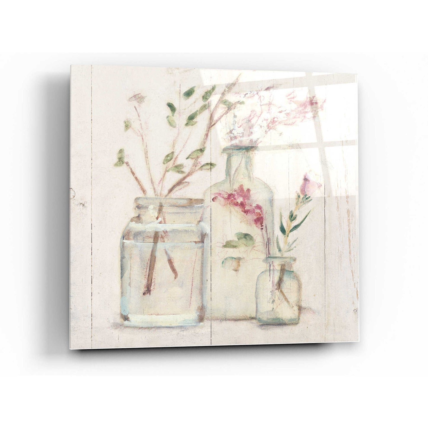 "Blossoms on Birch VI" by Cheri Blum printed on crystal clear acrylic glass. Featuring a painting of arrangements of small field flowers and buds. This is a perfect stand alone piece but also pairs great with any of the other art in the "Blossoms on Birch" series.
