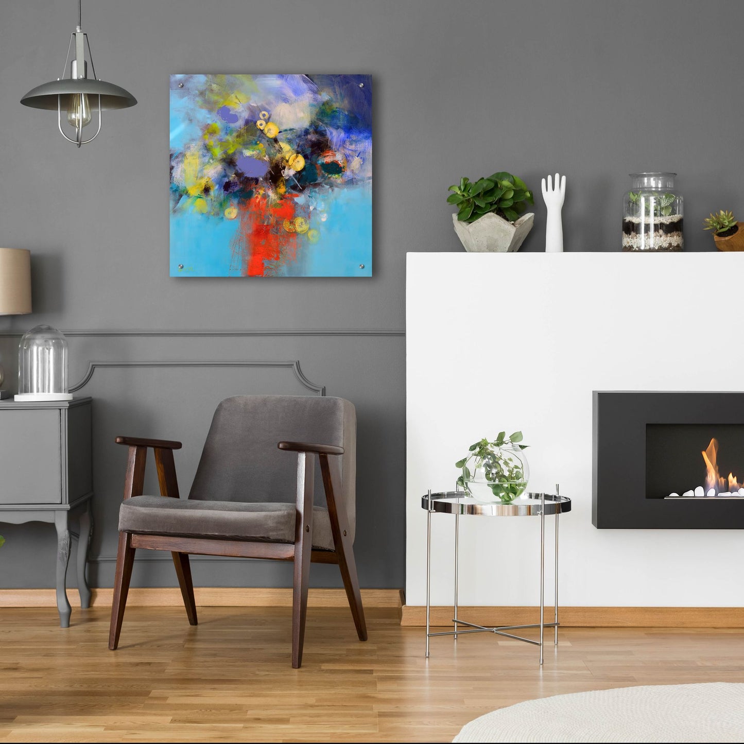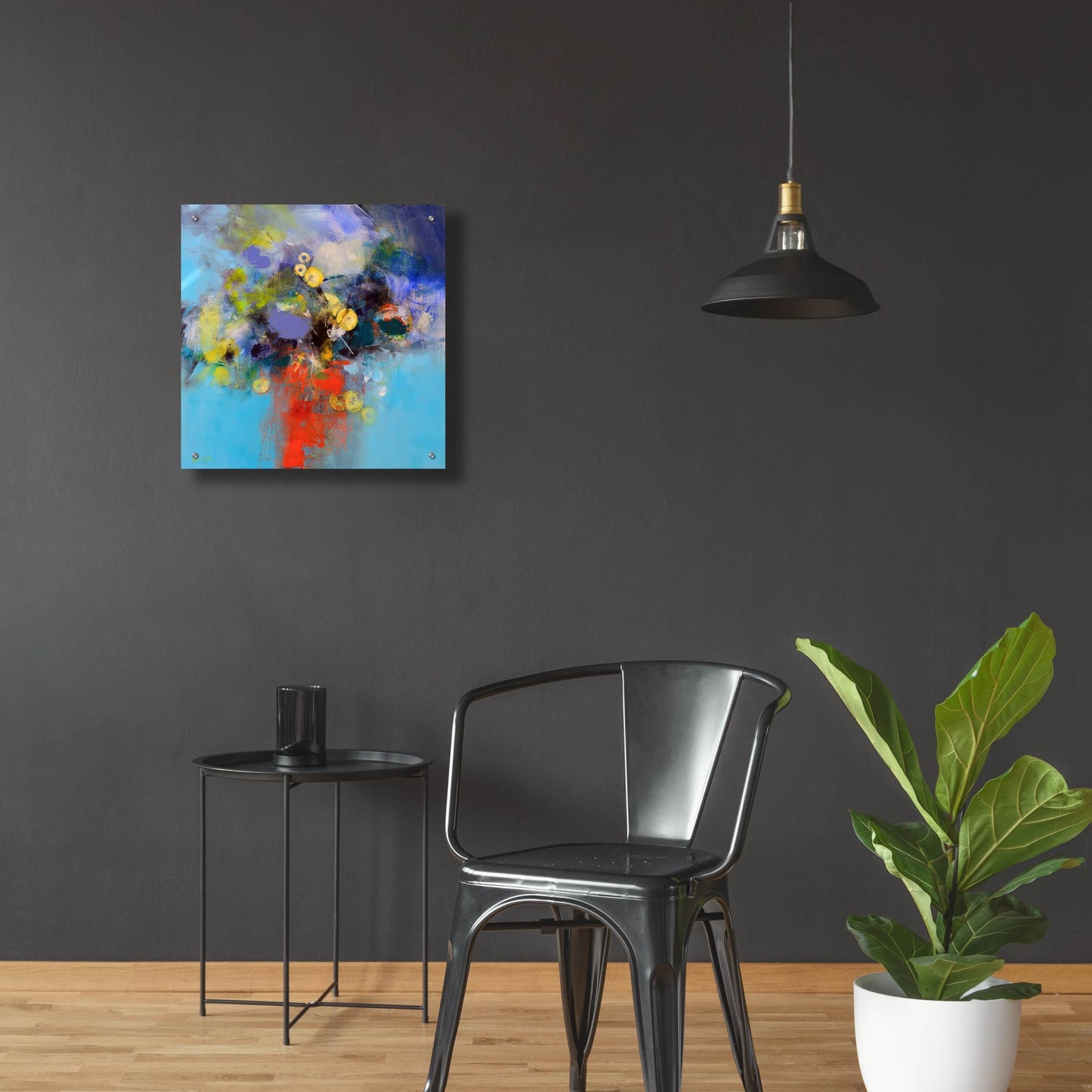- Modern art with vibrant colors and extraordinary depth comes ready to hang with a mounted hanging plate on the back