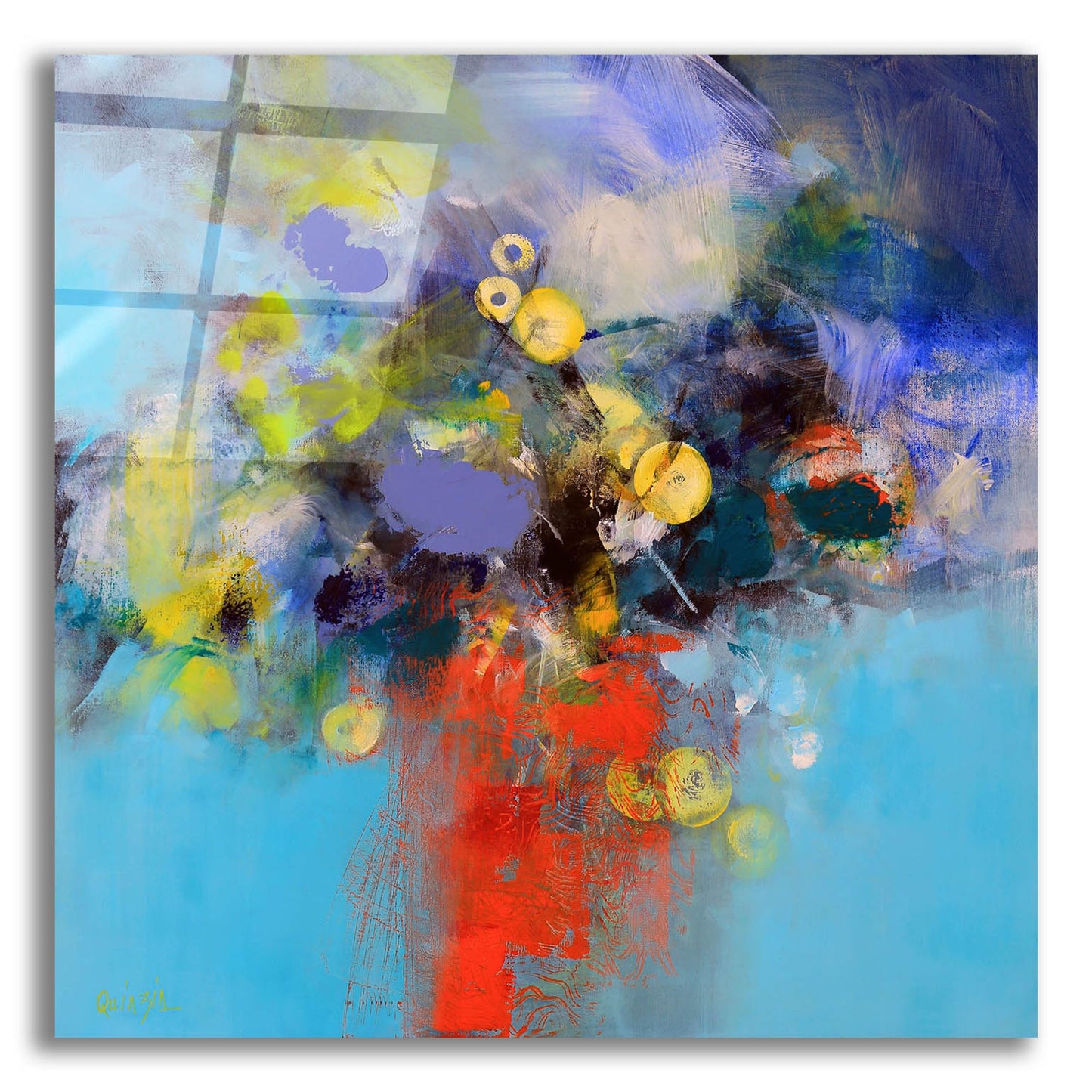 Epic Art ' Blue and Yellow Flowers' by Marianne Quinzin, Acrylic Glass Wall Art