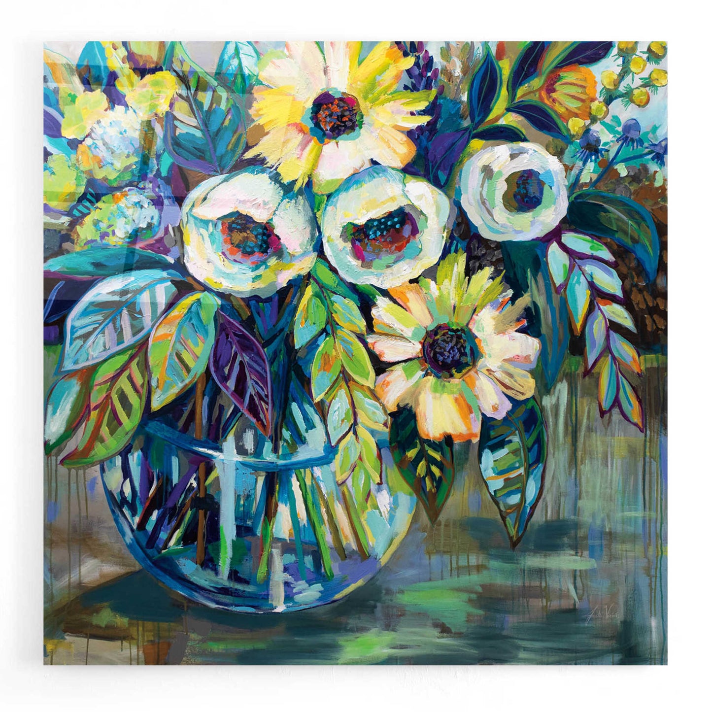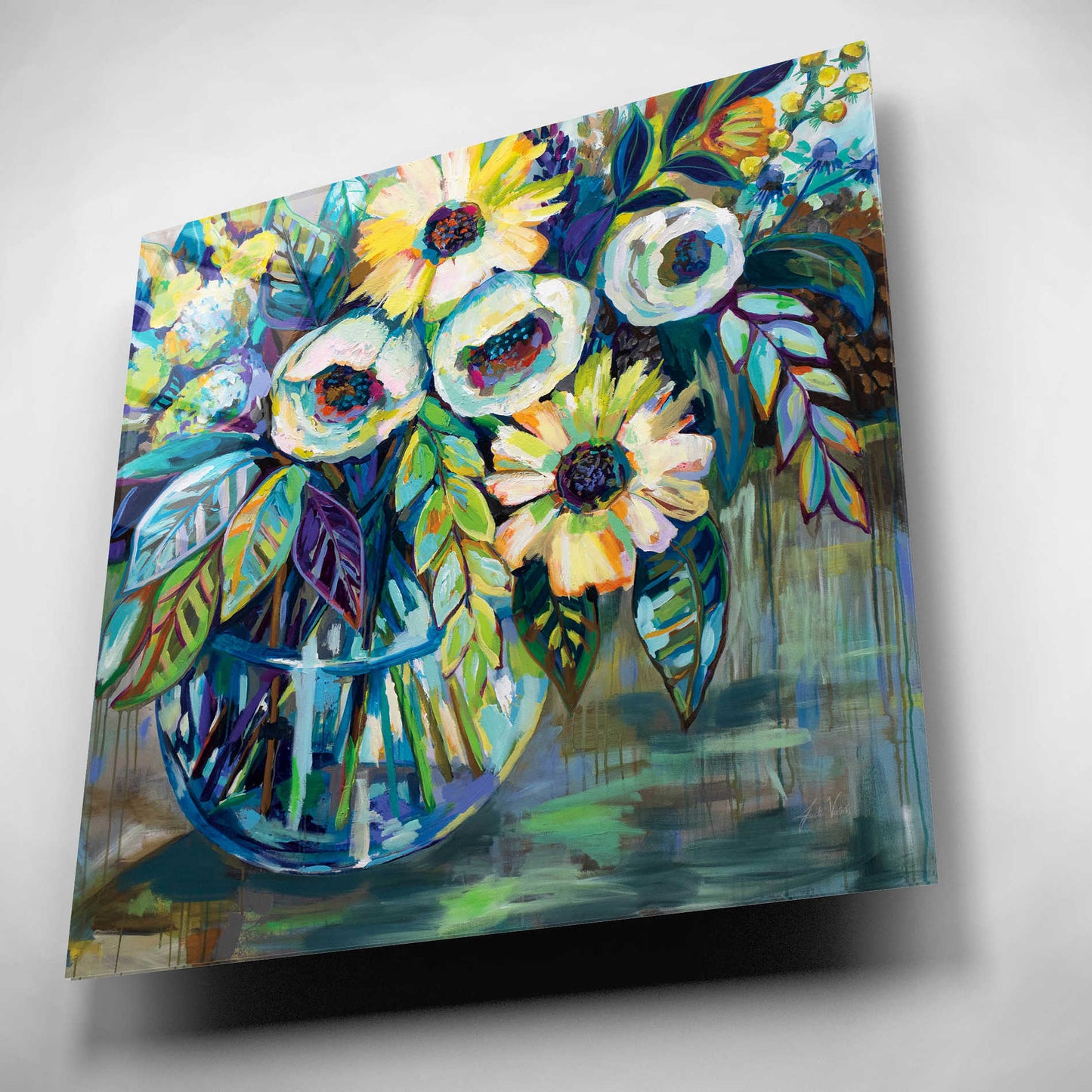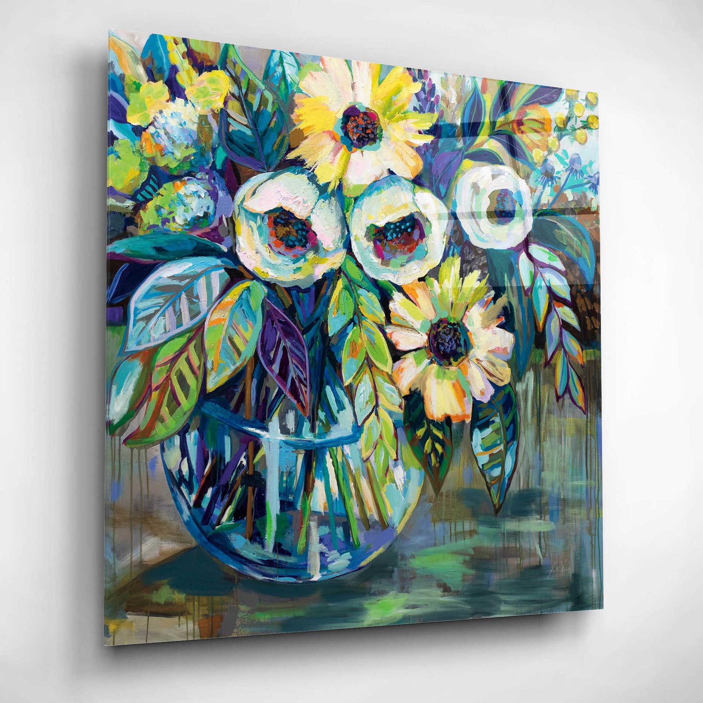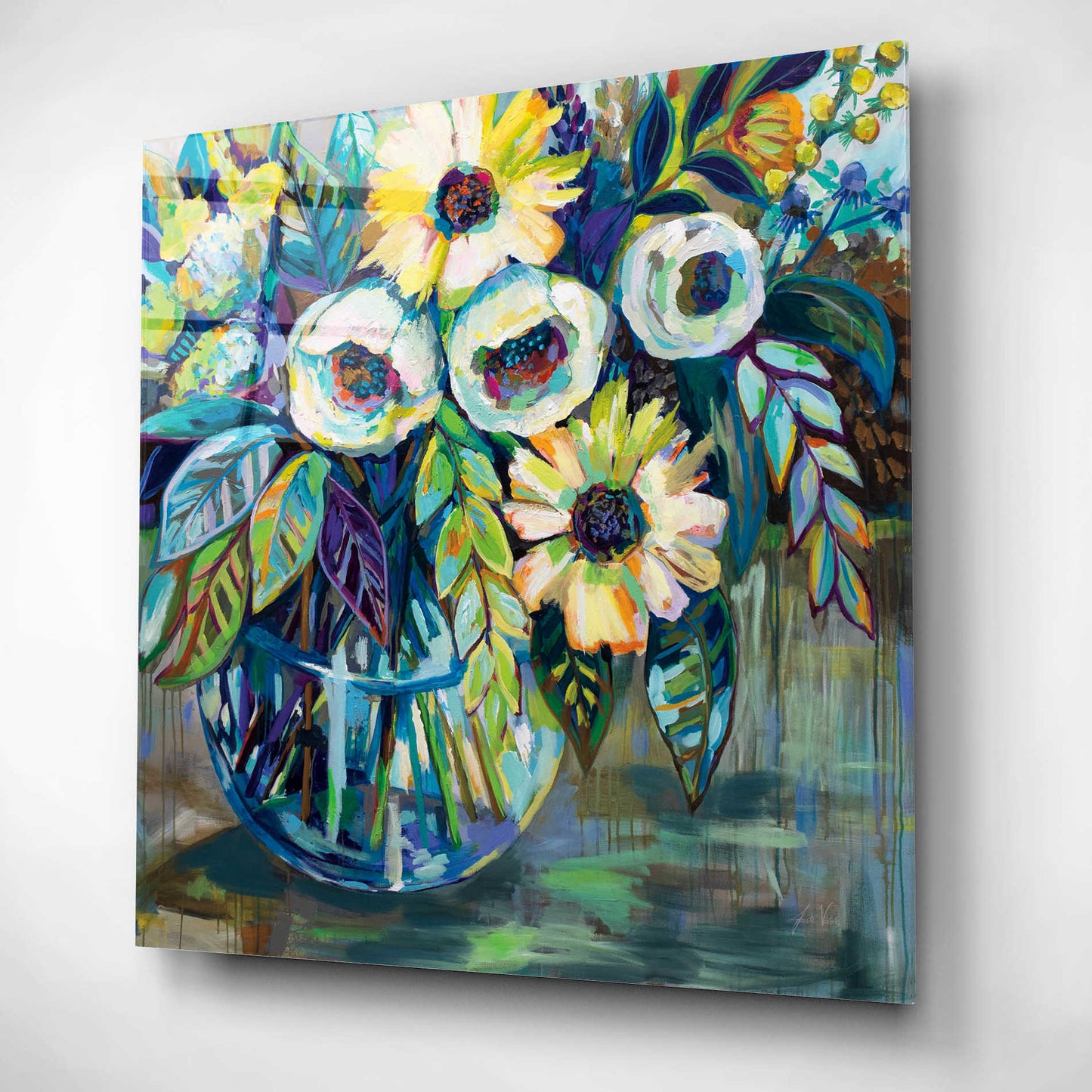 "Blue Light" by Jeanette Vertentes. Jeanette's contemporary paintings pay homage to North Stonington, Connecticut, where she lives with her dogs and gardens. She adds each artwork vibrancy with the use of color, texture, movement and bold compositions. As a child, she trained under the painter John Lutes. She earned a Bachelor of Fine Art with a concentration in painting from Rhode Island College. You can find Jeanette's work displayed throughout spring and summer. She teaches throughout the winter and works on commissions worldwide. Acrylic wall art looks amazing in your home or business. Printed on the back of the acrylic giving it depth and easy maintenance. The highly durable and hard-to-damage qualities make high definition acrylic the ideal wall art for hotels, rental properties, and restaurants. Now Epic Art brings you unmatched value in contemporary wall decor for your home as well. From small sizes to extra large sizes, it is easy to hang, won't shatter like glass if it ever falls down, and is easy to maintain. Simply dust it off or use a damp soft cloth for cleaning.