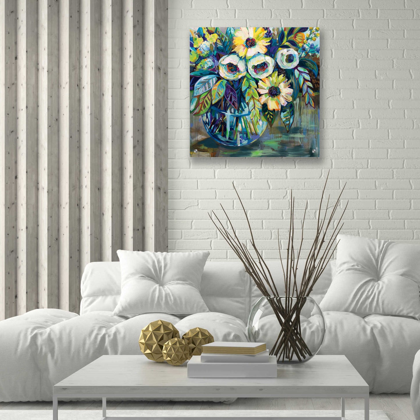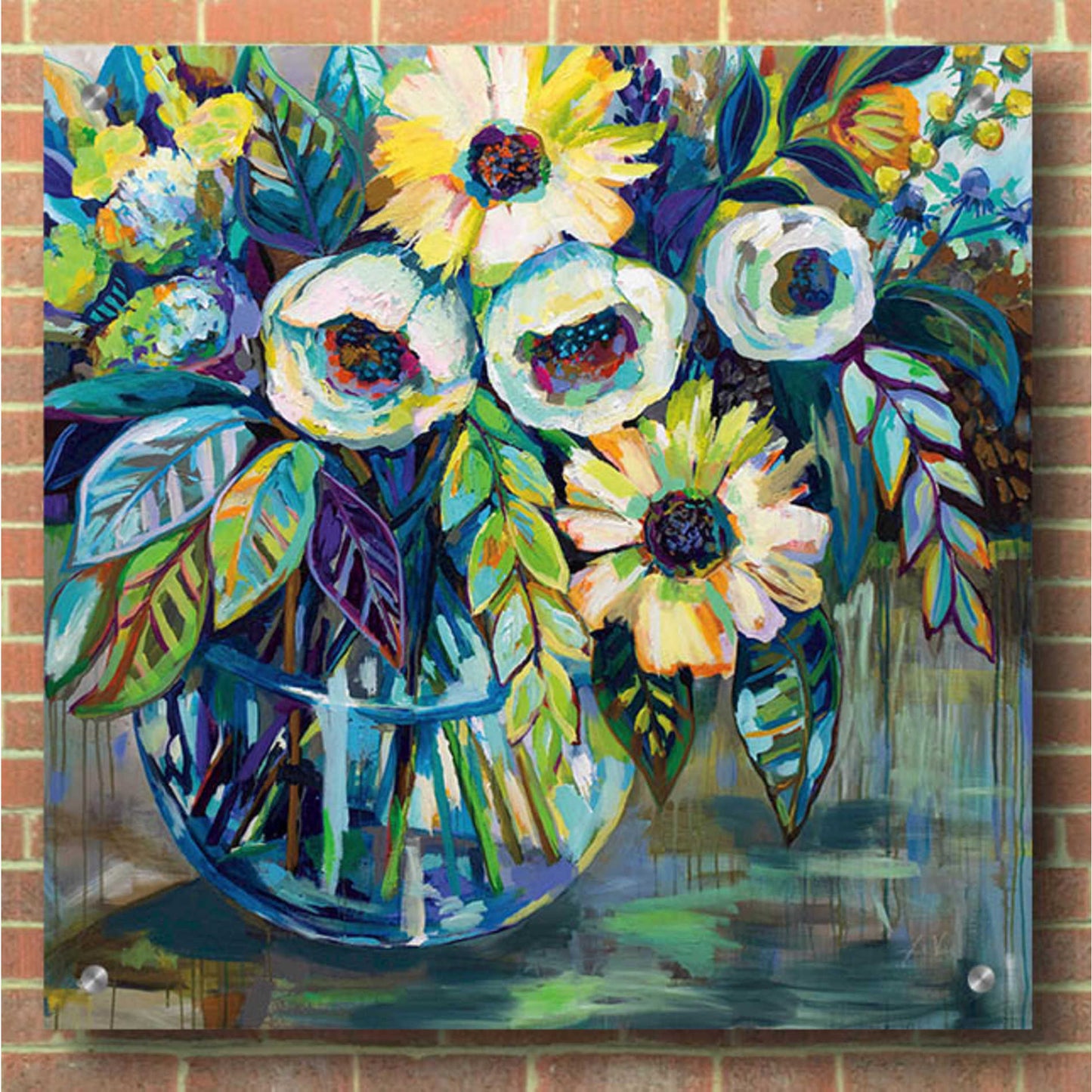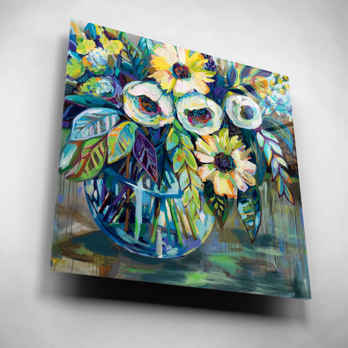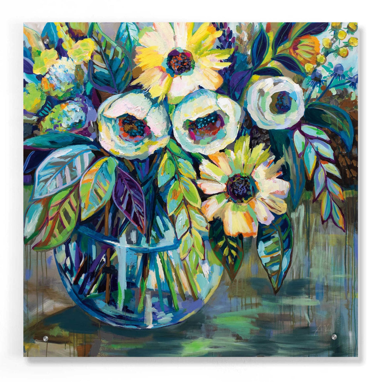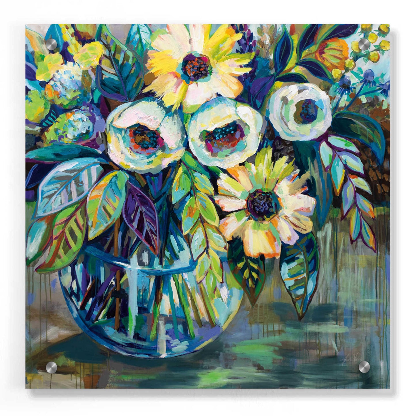 "Blue Light" by Jeanette Vertentes. Jeanette's contemporary paintings pay homage to North Stonington, Connecticut, where she lives with her dogs and gardens. She adds each artwork vibrancy with the use of color, texture, movement and bold compositions. As a child, she trained under the painter John Lutes. She earned a Bachelor of Fine Art with a concentration in painting from Rhode Island College. You can find Jeanette's work displayed throughout spring and summer. She teaches throughout the winter and works on commissions worldwide. Acrylic wall art looks amazing in your home or business. Printed on the back of the acrylic giving it depth and easy maintenance. The highly durable and hard-to-damage qualities make high definition acrylic the ideal wall art for hotels, rental properties, and restaurants. Now Epic Art brings you unmatched value in contemporary wall decor for your home as well. From small sizes to extra large sizes, it is easy to hang, won't shatter like glass if it ever falls down, and is easy to maintain. Simply dust it off or use a damp soft cloth for cleaning.