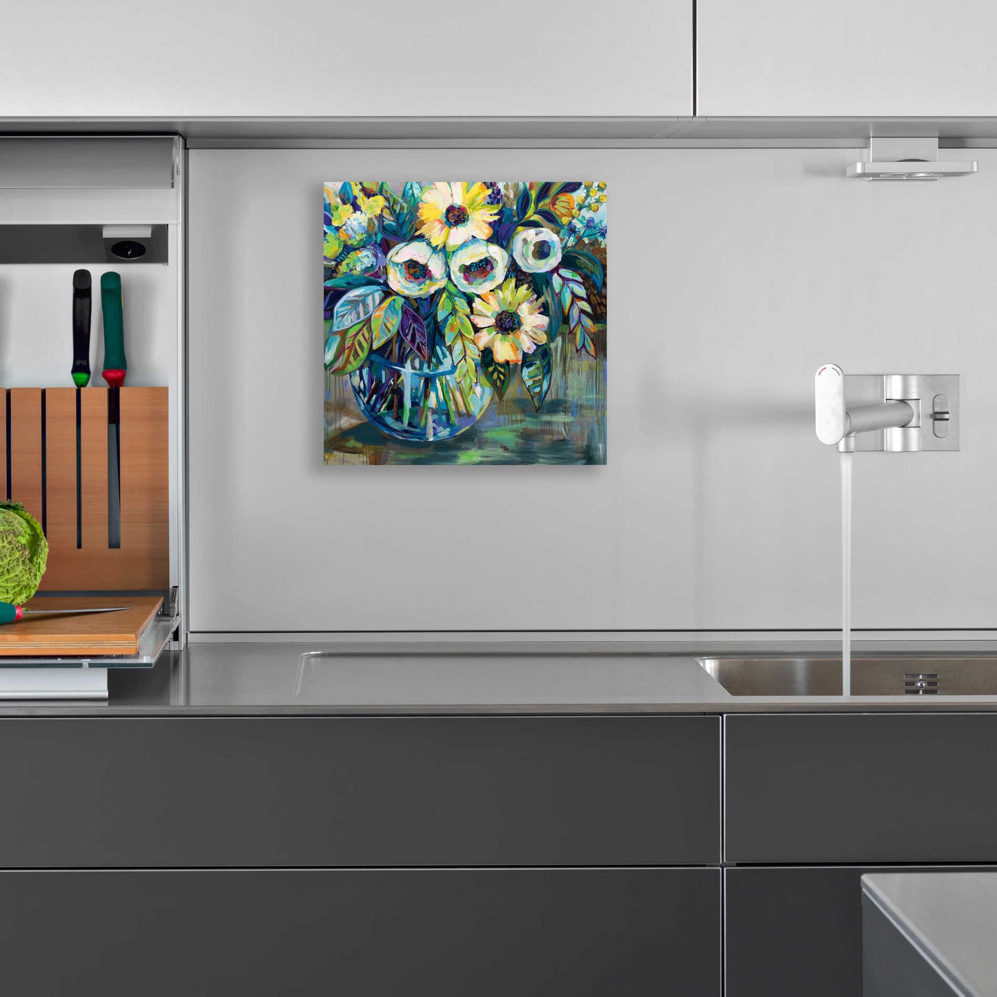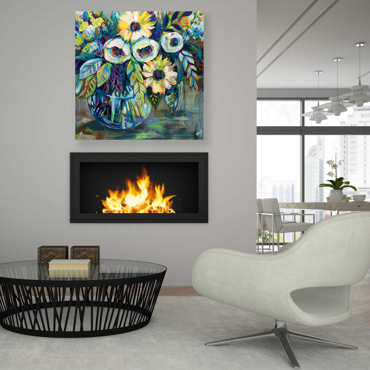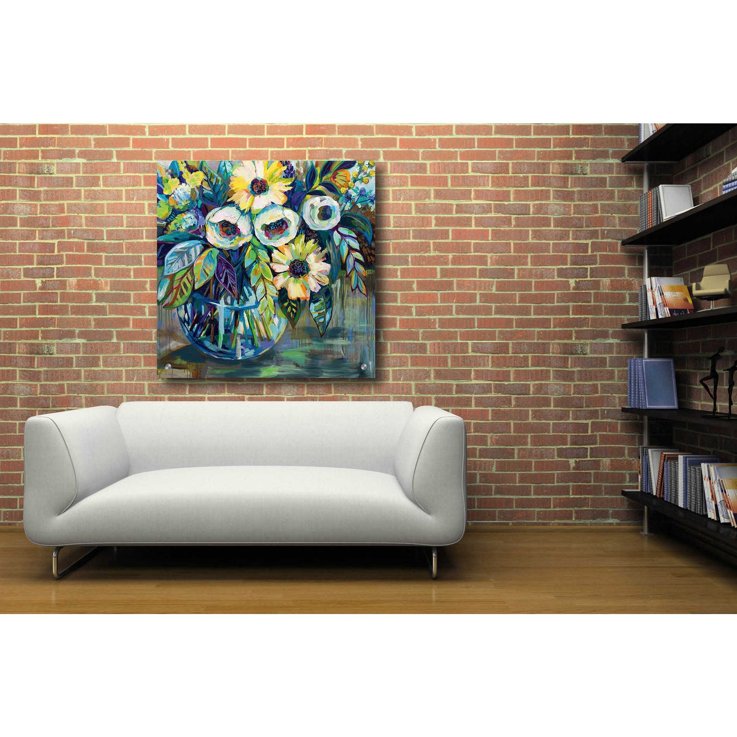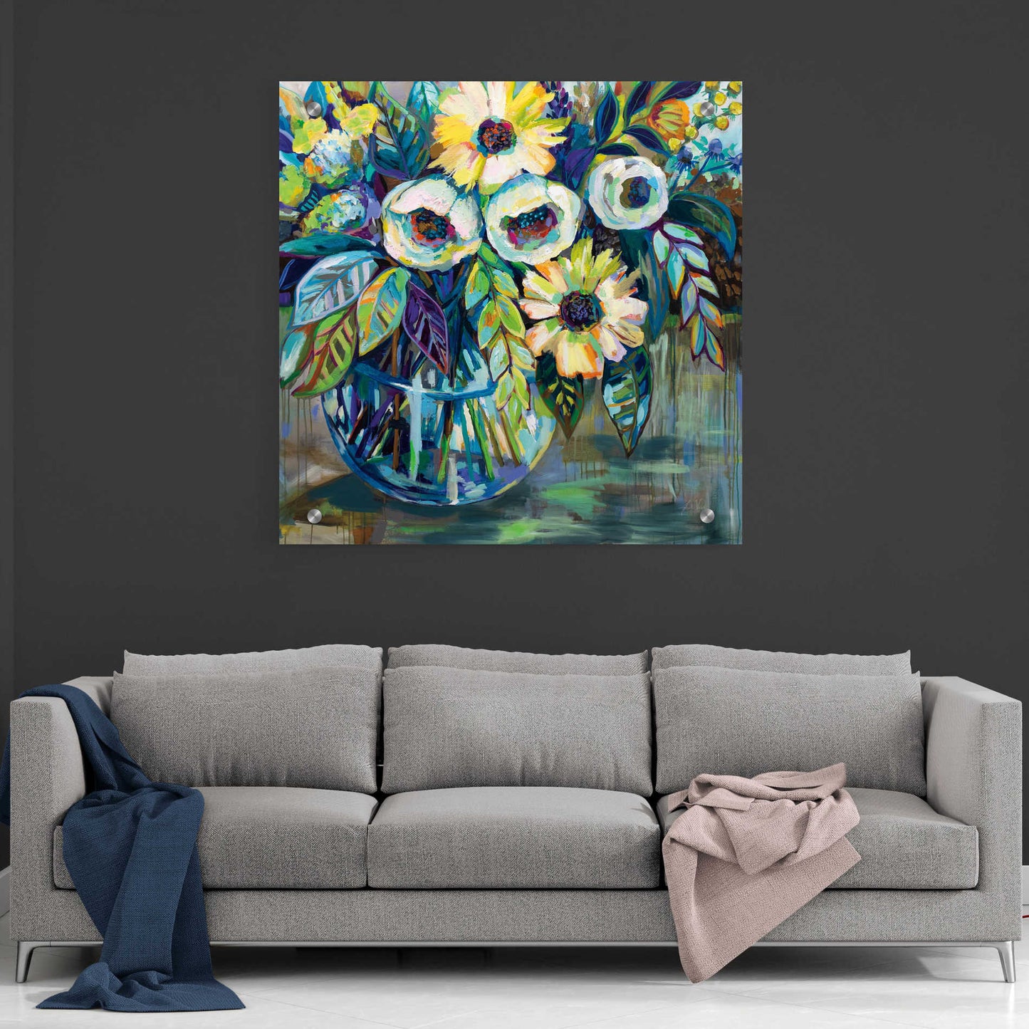 "Blue Light" by Jeanette Vertentes. Jeanette's contemporary paintings pay homage to North Stonington, Connecticut, where she lives with her dogs and gardens. She adds each artwork vibrancy with the use of color, texture, movement and bold compositions. As a child, she trained under the painter John Lutes. She earned a Bachelor of Fine Art with a concentration in painting from Rhode Island College. You can find Jeanette's work displayed throughout spring and summer. She teaches throughout the winter and works on commissions worldwide. Acrylic wall art looks amazing in your home or business. Printed on the back of the acrylic giving it depth and easy maintenance. The highly durable and hard-to-damage qualities make high definition acrylic the ideal wall art for hotels, rental properties, and restaurants. Now Epic Art brings you unmatched value in contemporary wall decor for your home as well. From small sizes to extra large sizes, it is easy to hang, won't shatter like glass if it ever falls down, and is easy to maintain. Simply dust it off or use a damp soft cloth for cleaning.