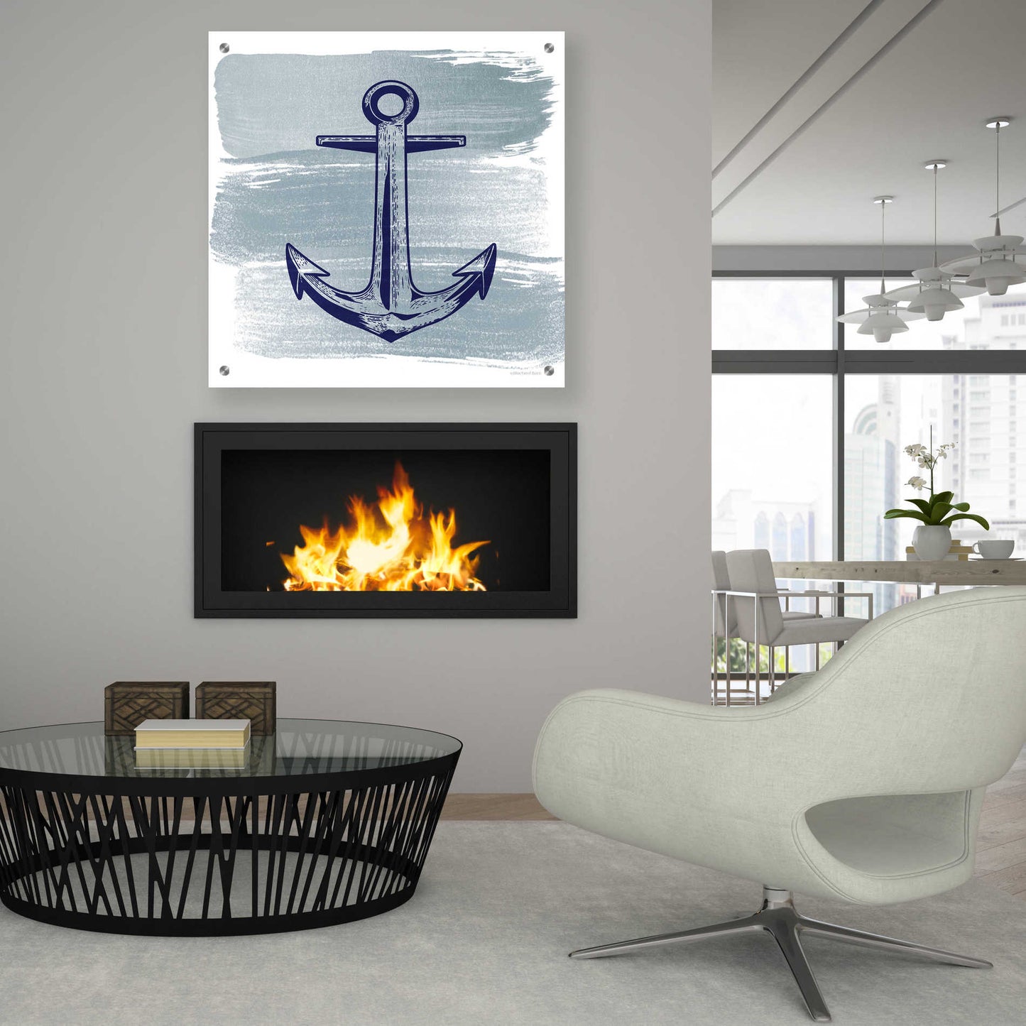 Epic Art 'Brushed Midnight Blue Anchor' by Bluebird Barn, Acrylic Glass Wall Art