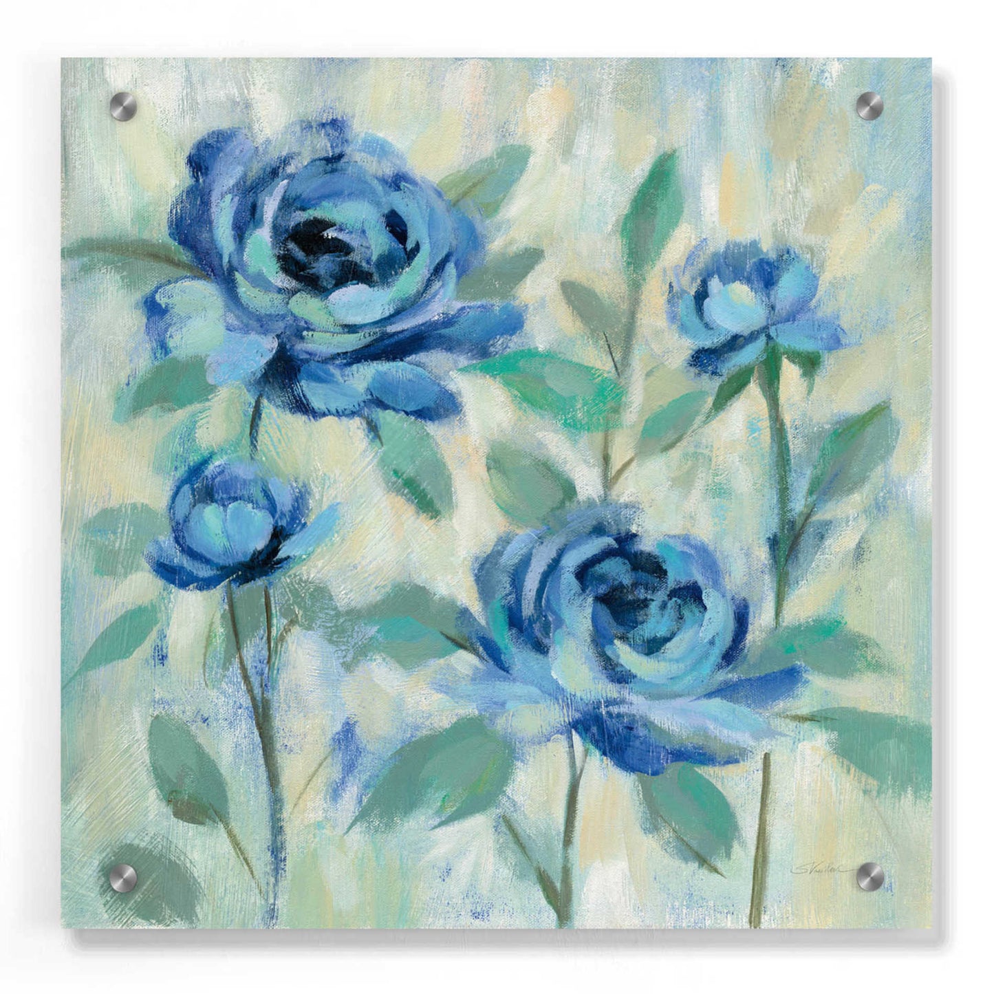 Epic Art 'Brushy Blue Flowers I' by Silvia Vassileva, Acrylic Glass Wall Art