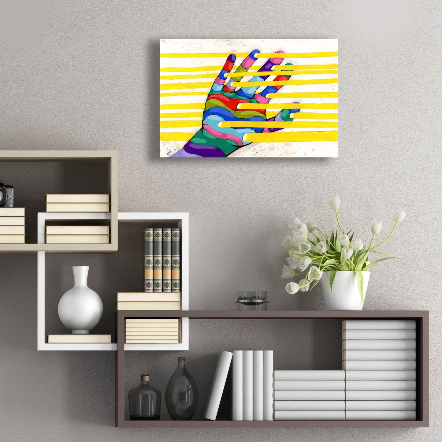 - Modern art with vibrant colors and extraordinary depth comes ready to hang with a mounted hanging plate on the back