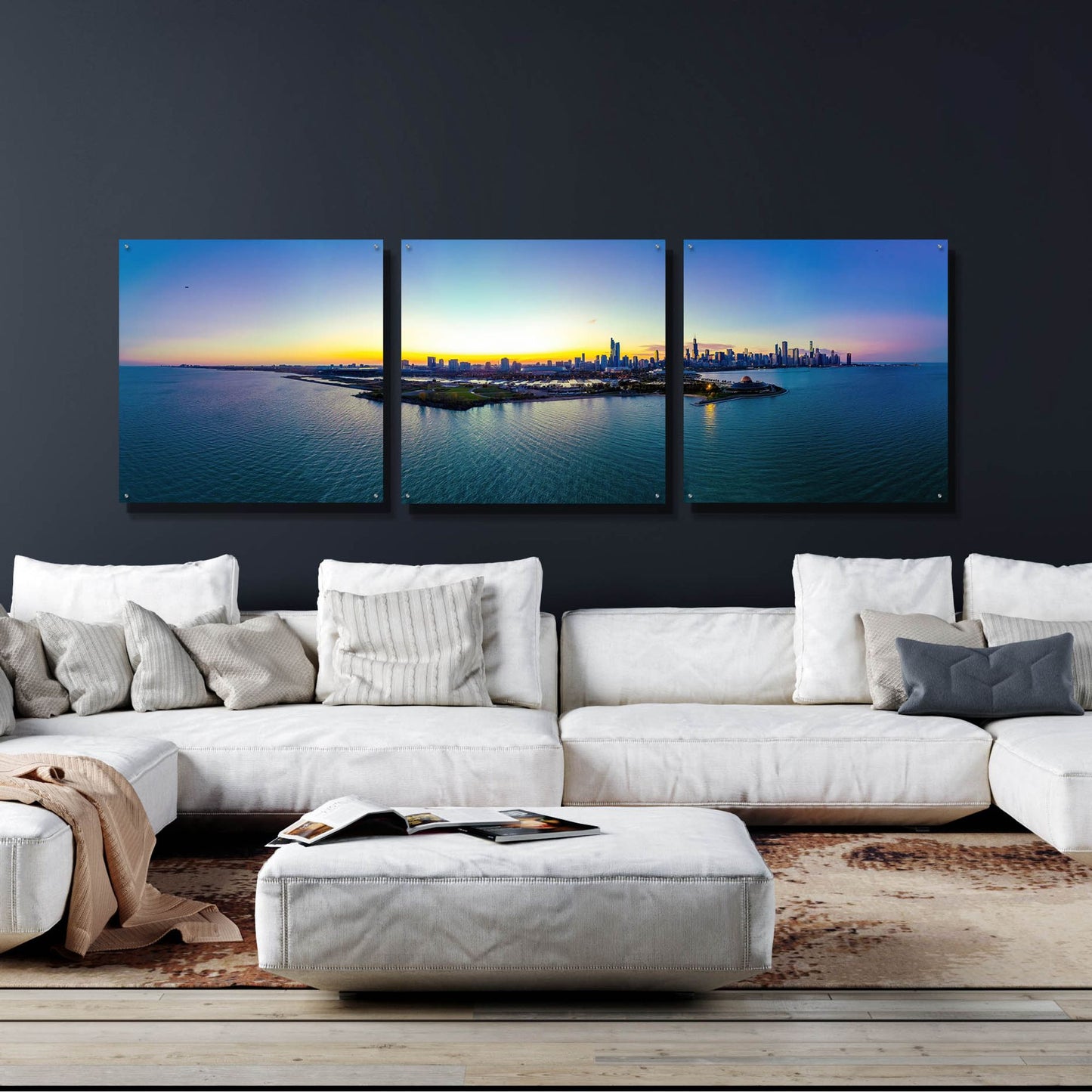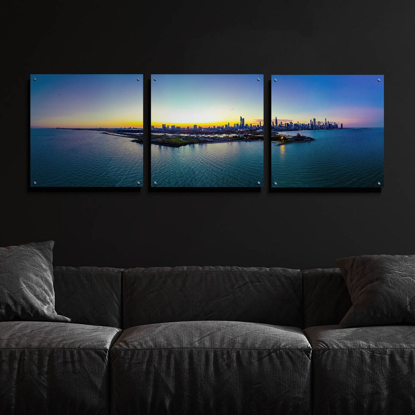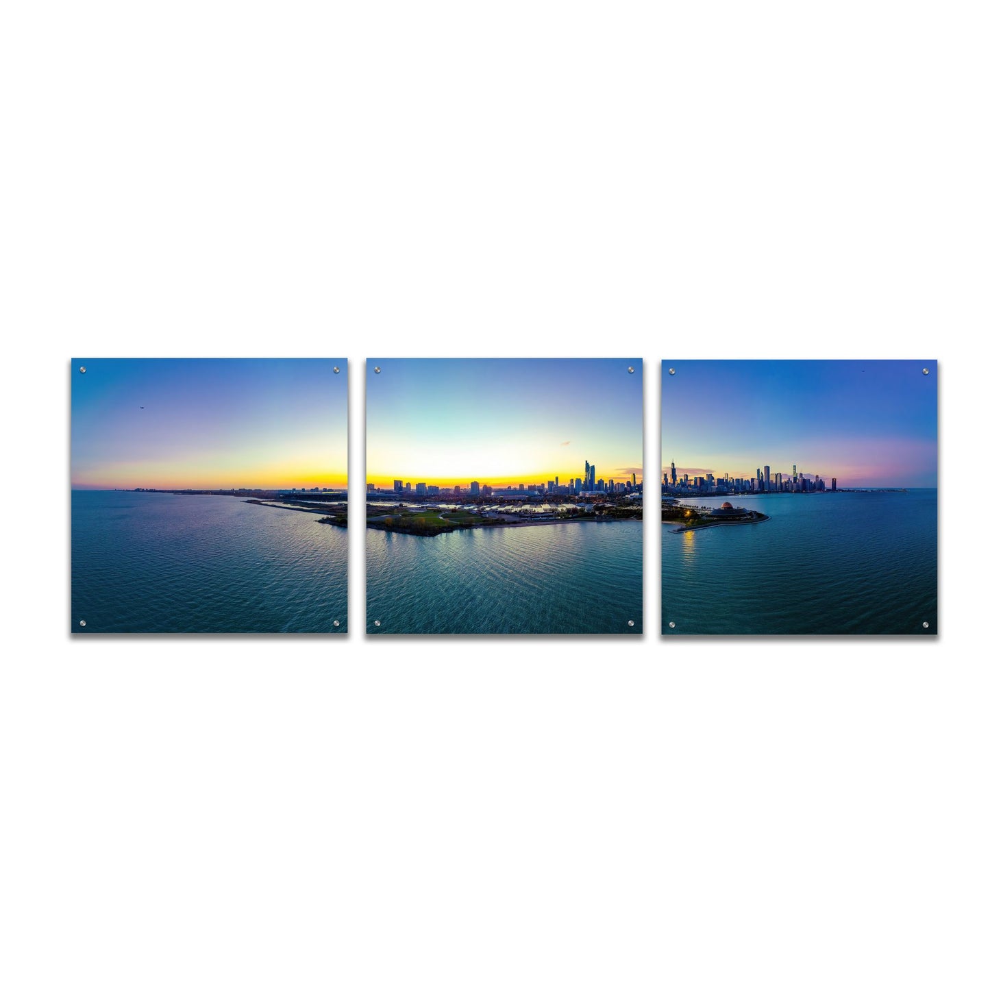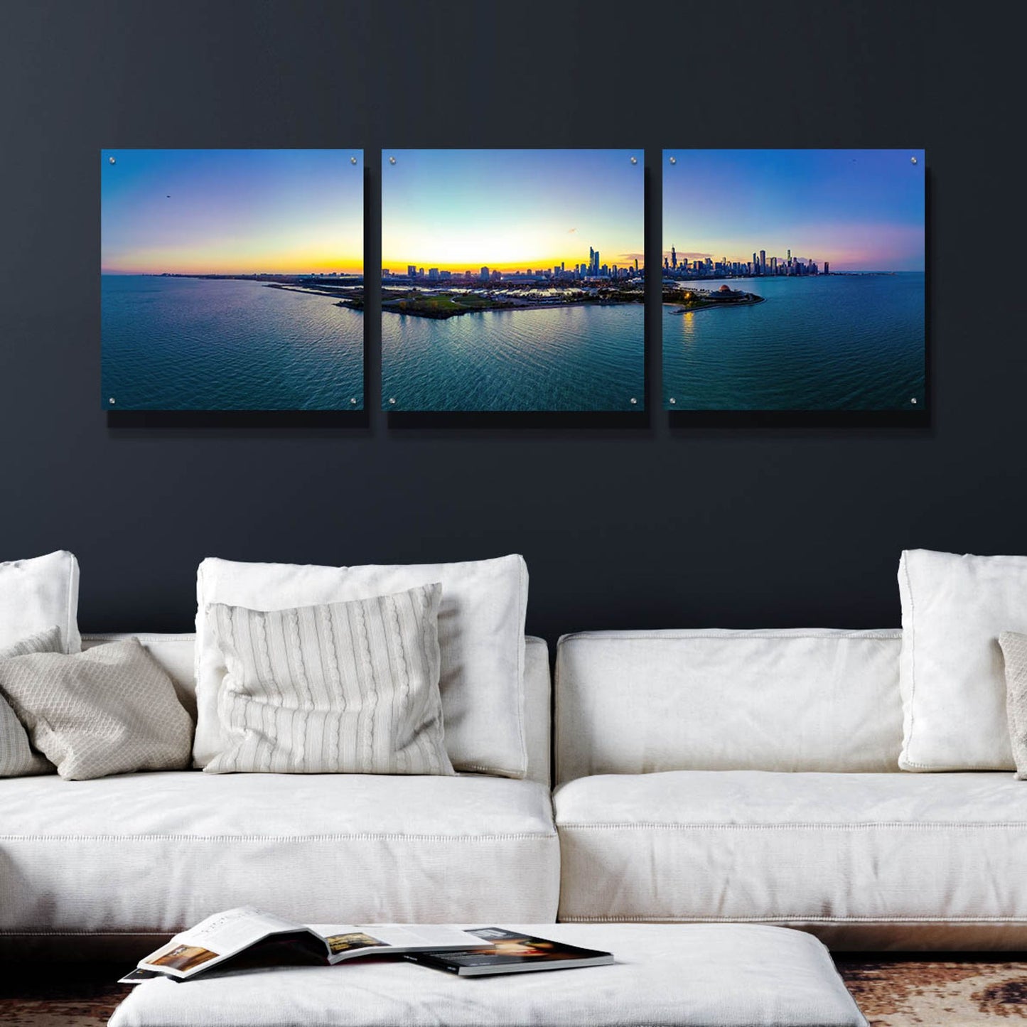 Epic Art 'Chicago - Planetarium Sunset' by Epic Portfolio, Acrylic Glass Wall Art, 3 Piece Set