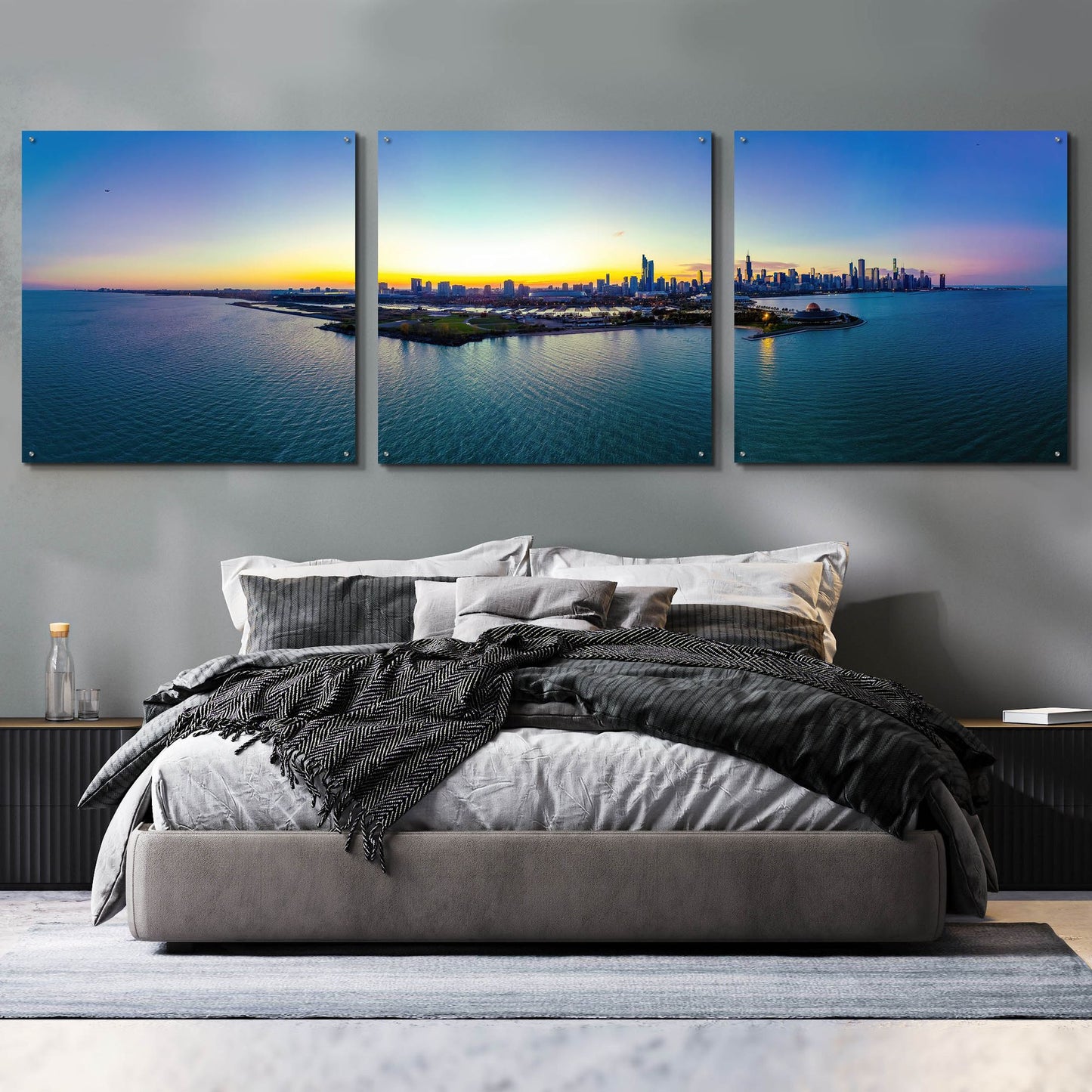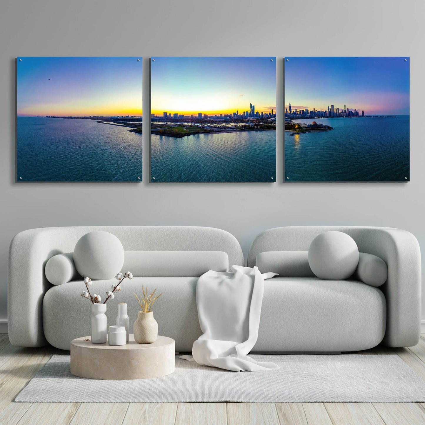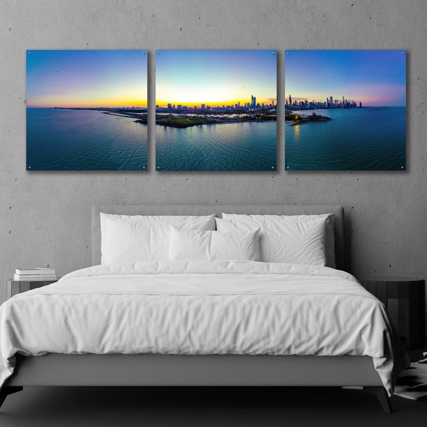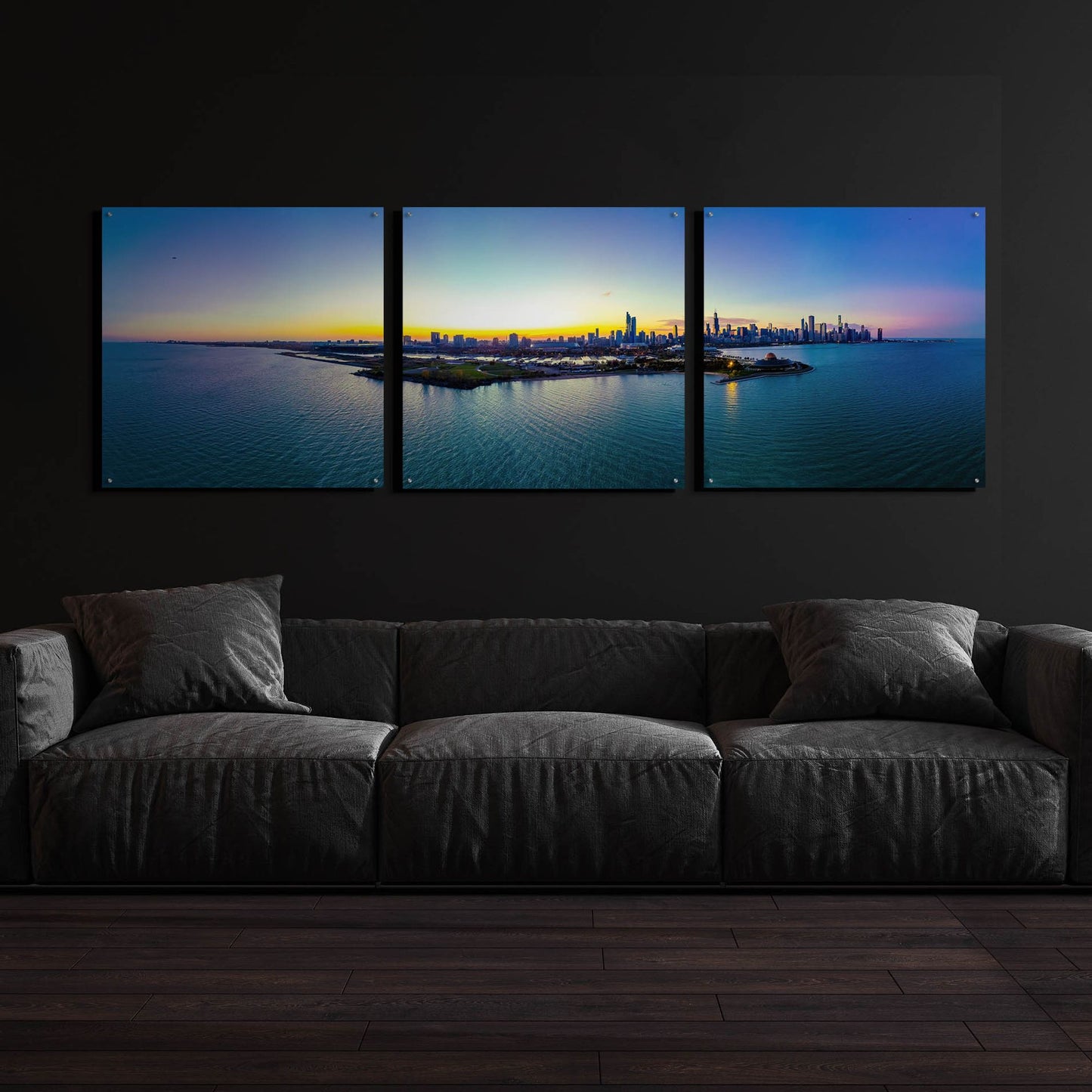 Epic Art 'Chicago - Planetarium Sunset' by Epic Portfolio, Acrylic Glass Wall Art, 3 Piece Set
