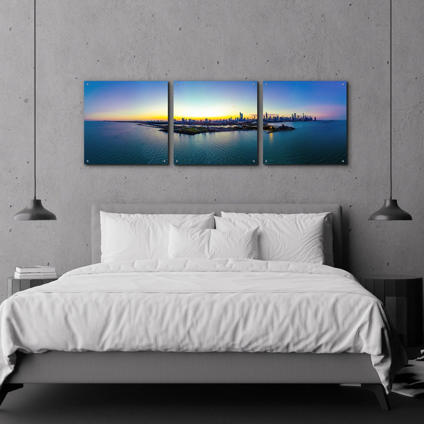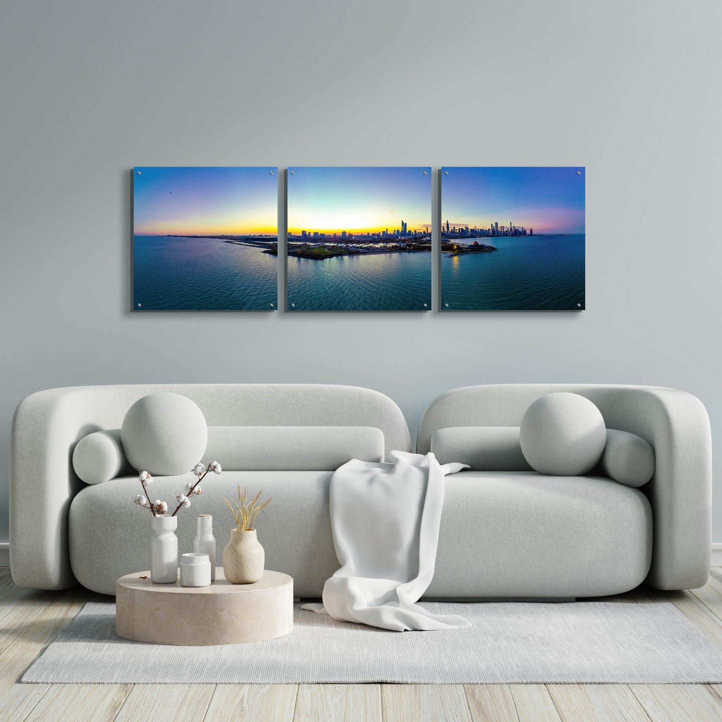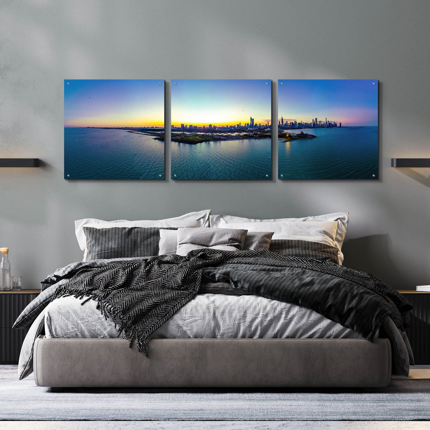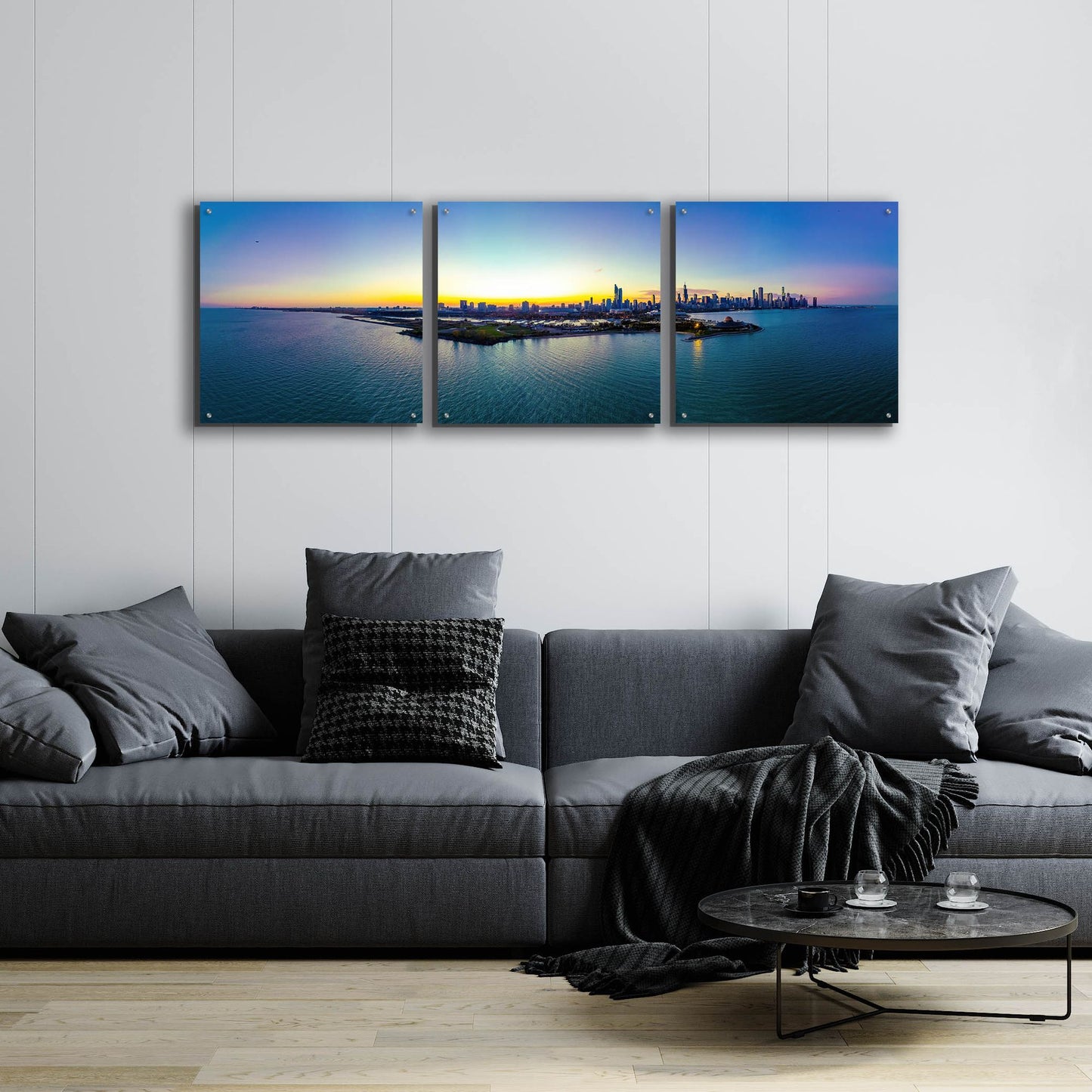 Epic Art 'Chicago - Planetarium Sunset' by Epic Portfolio, Acrylic Glass Wall Art, 3 Piece Set