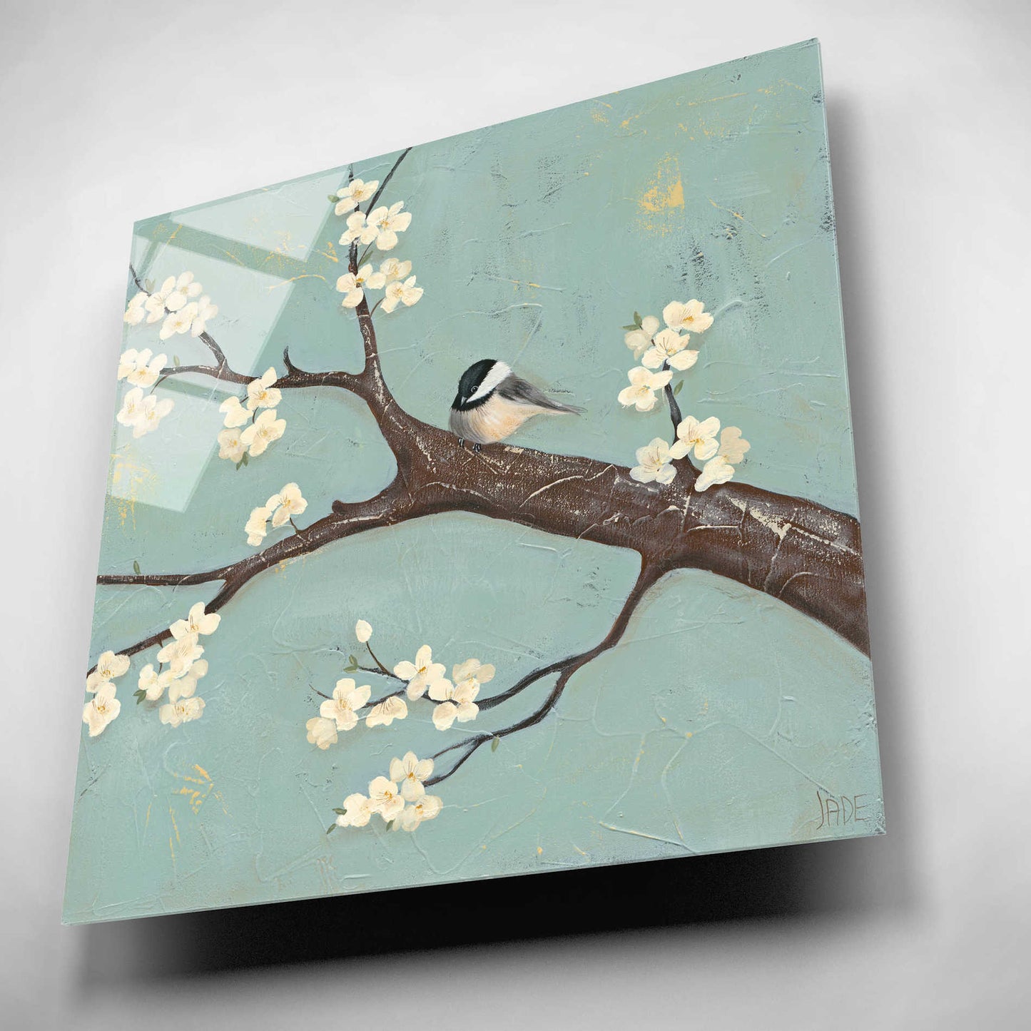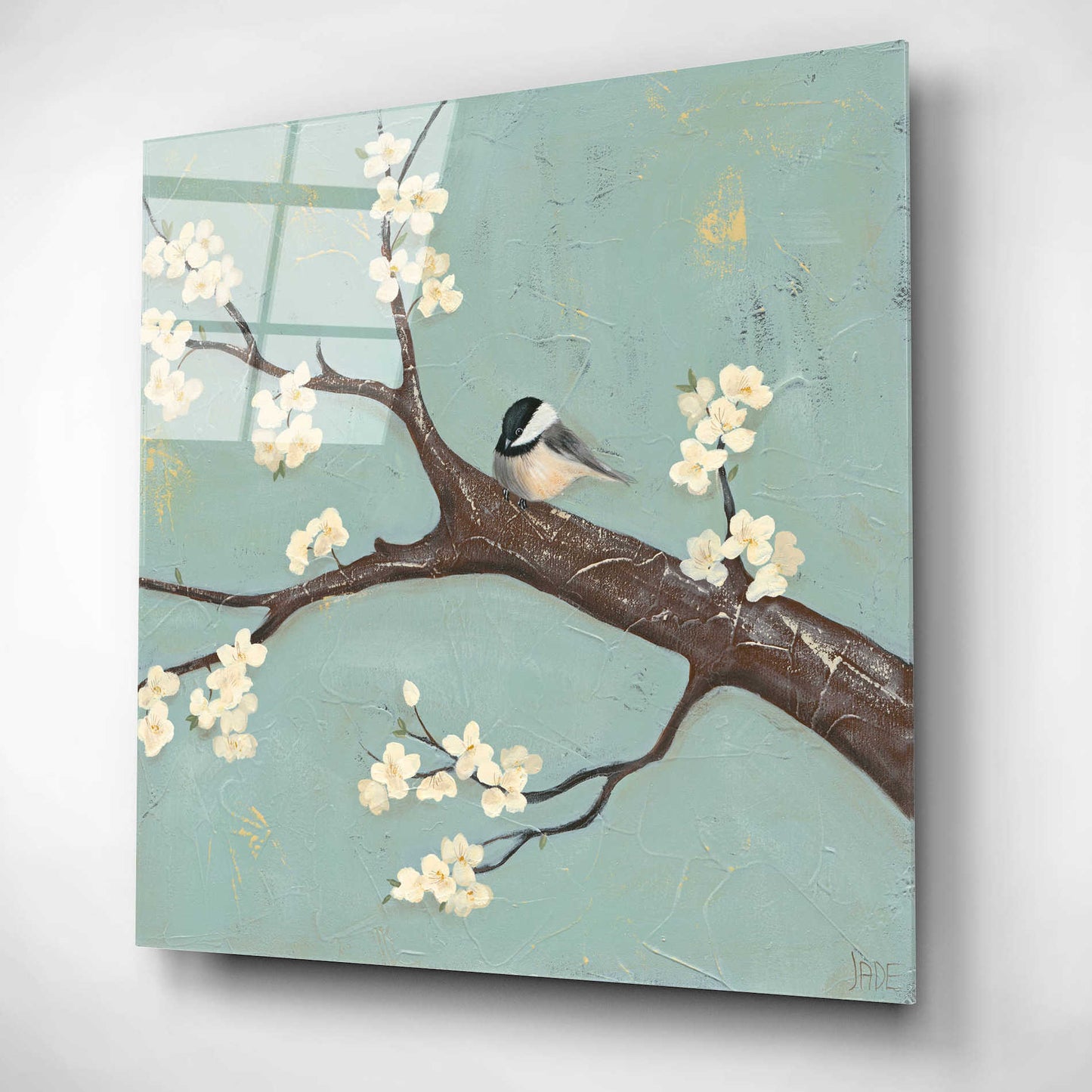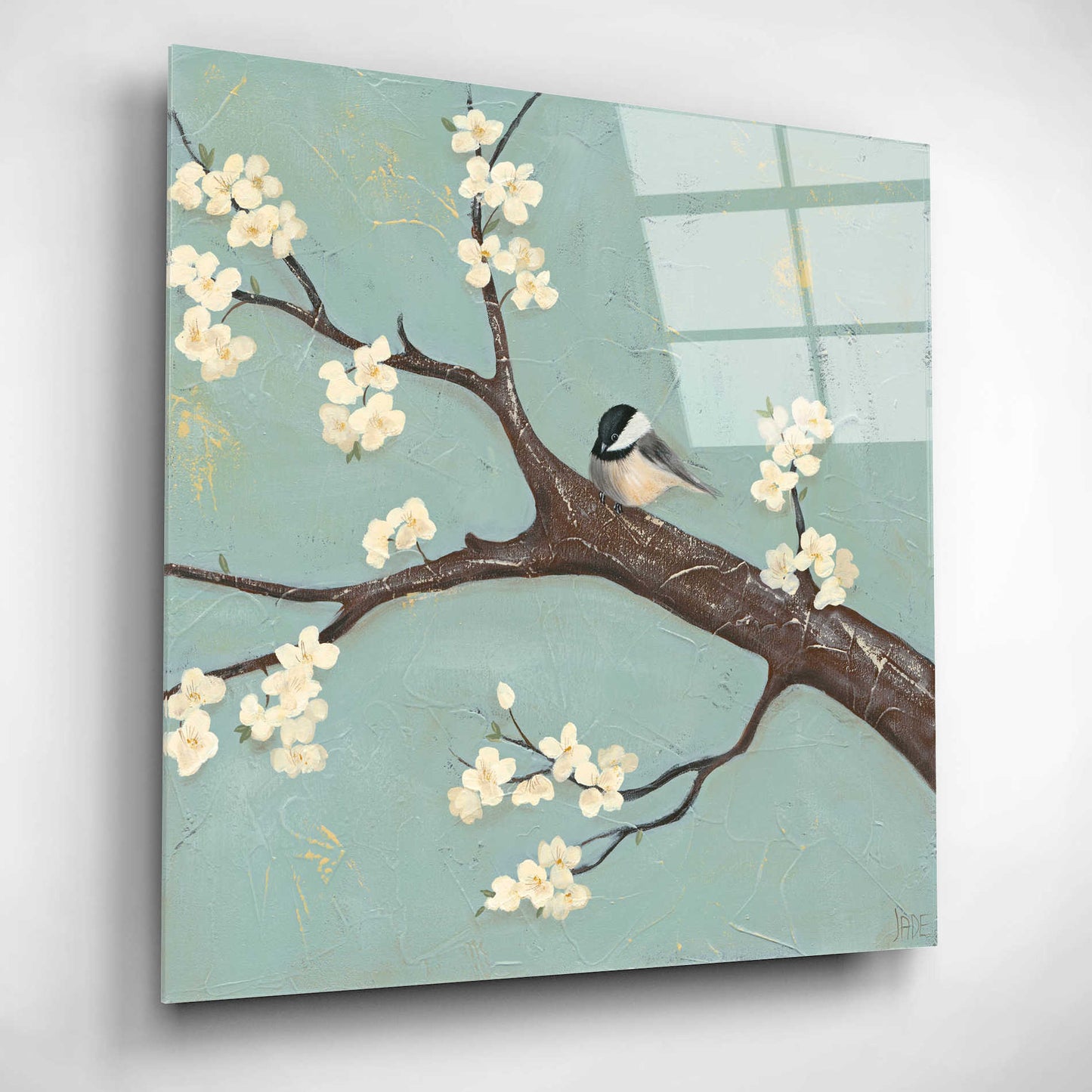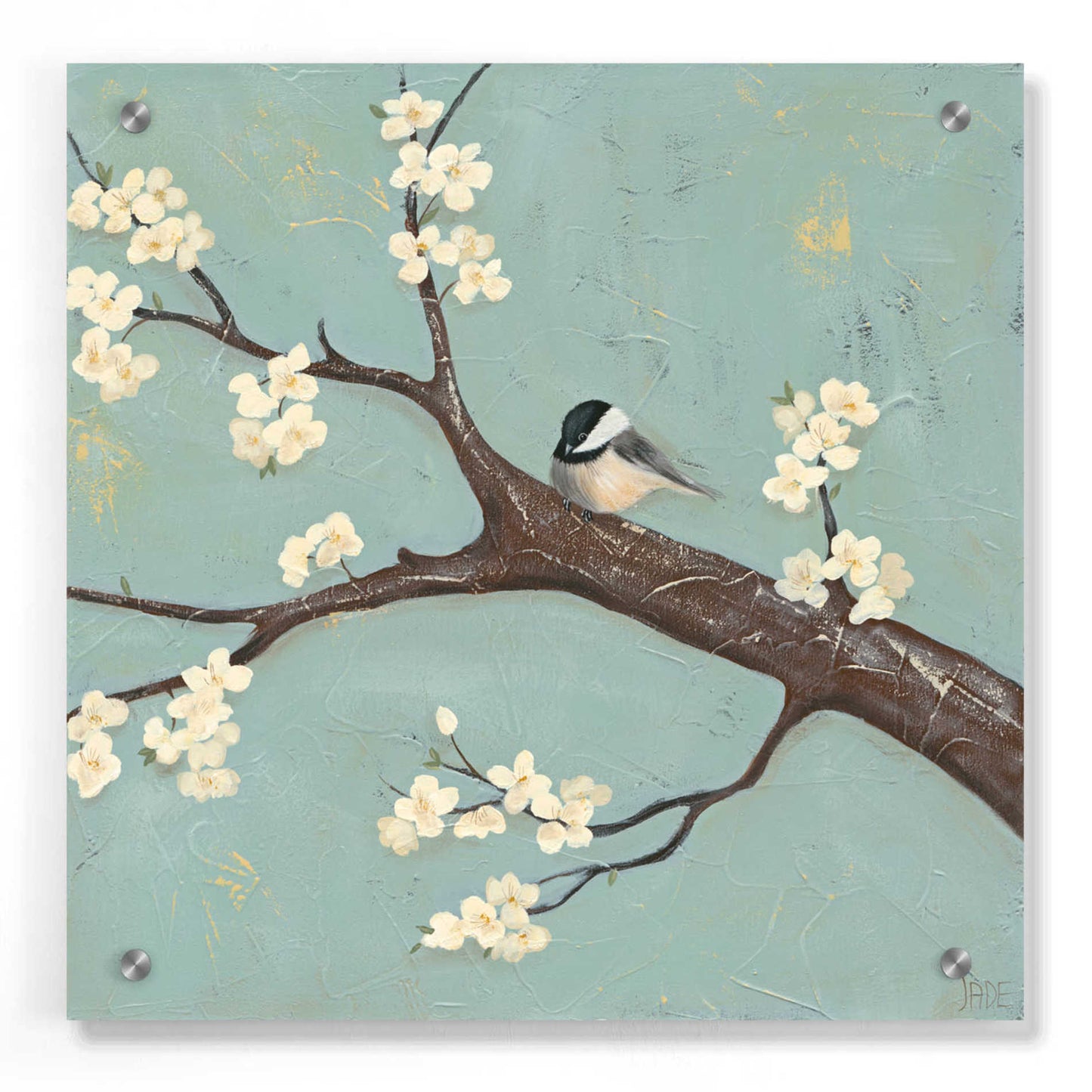 Epic Art 'Chickadee and Dogwood II' by Jade Reynolds, Acrylic Glass Wall Art
