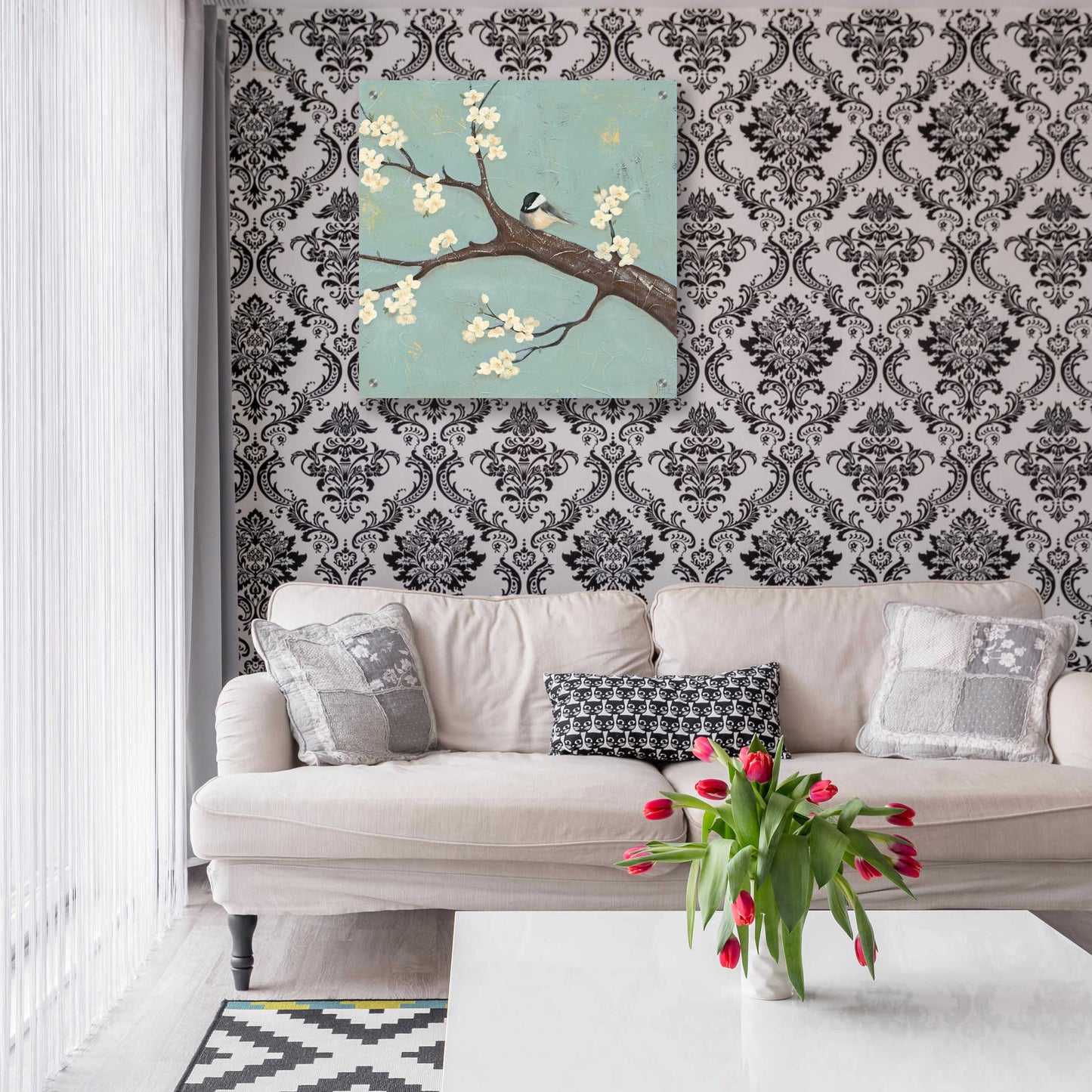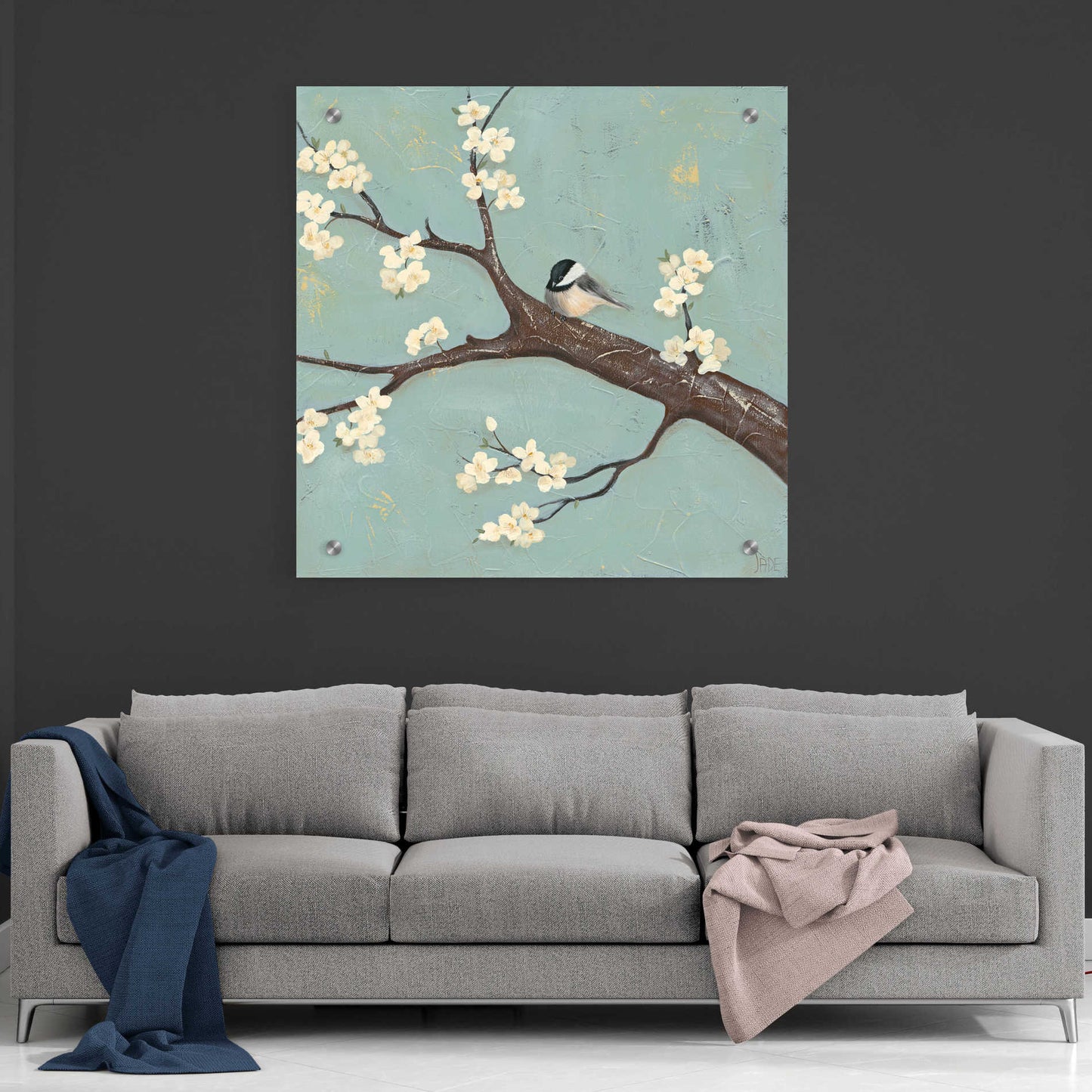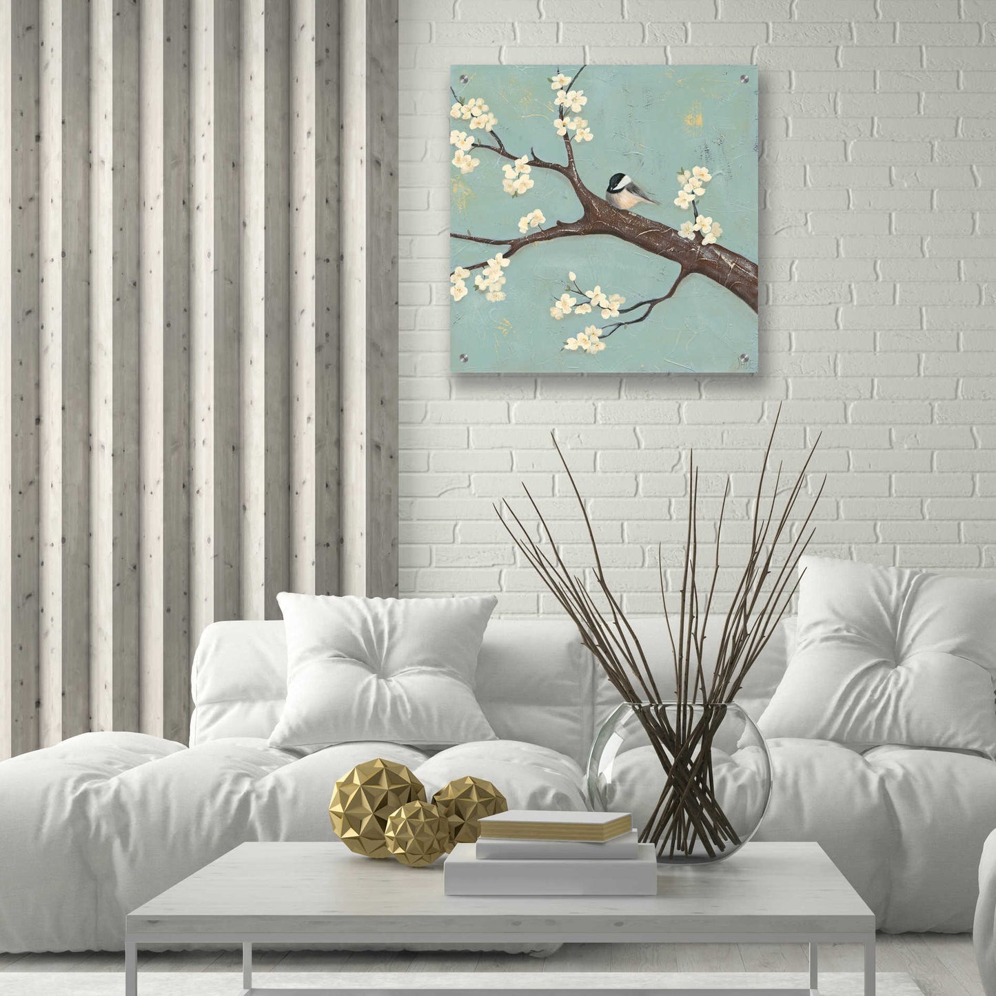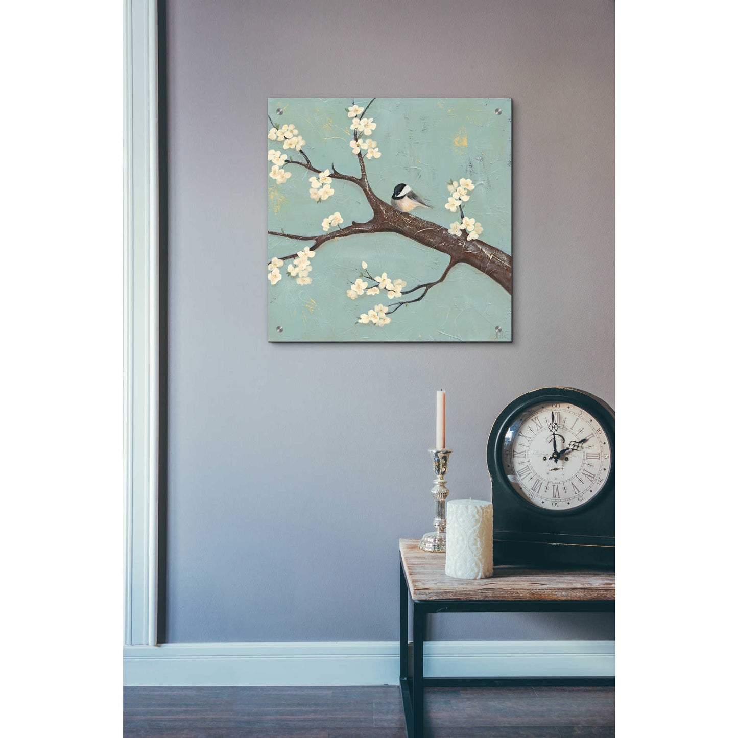 Epic Art 'Chickadee and Dogwood II' by Jade Reynolds, Acrylic Glass Wall Art