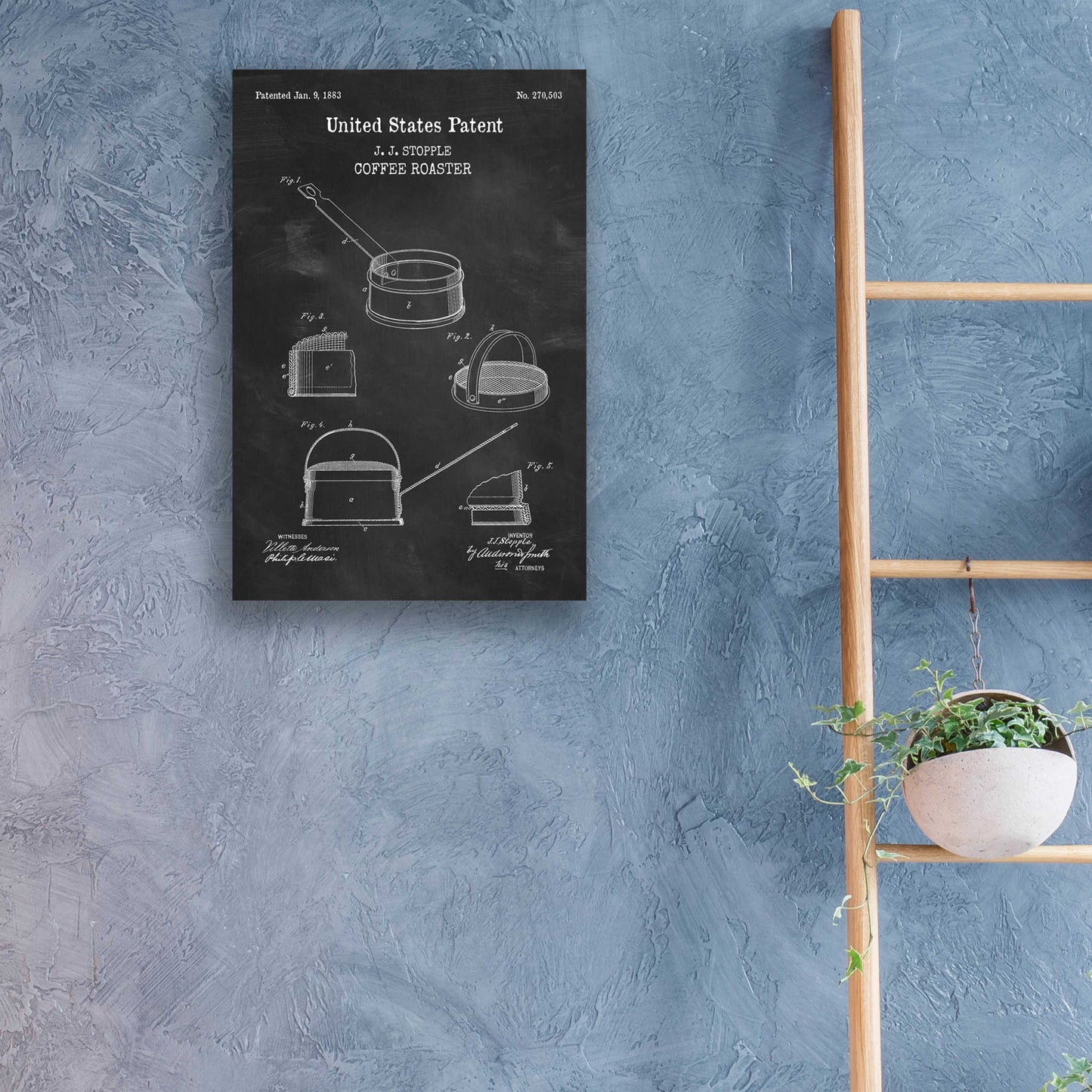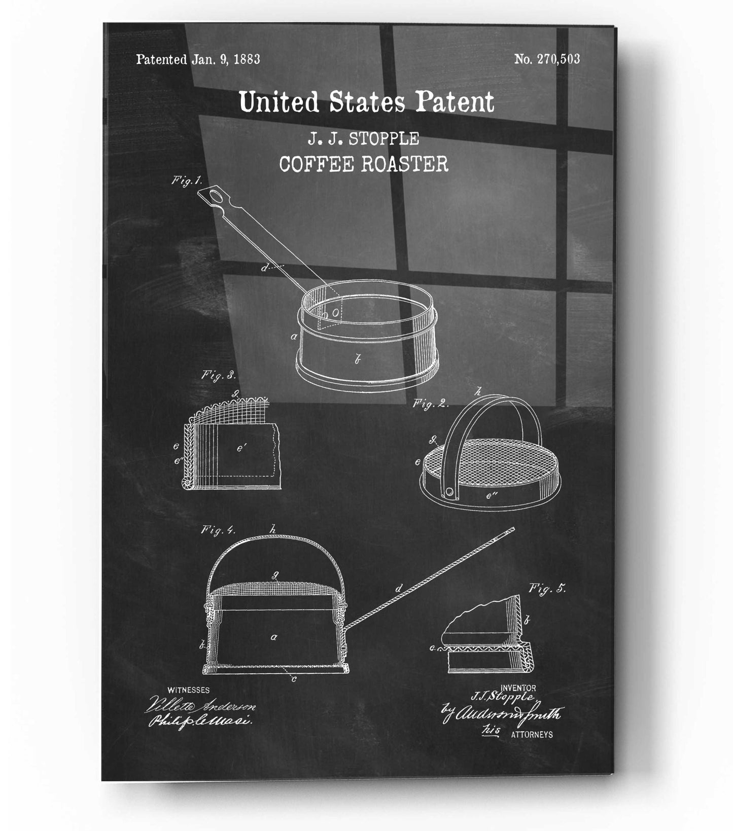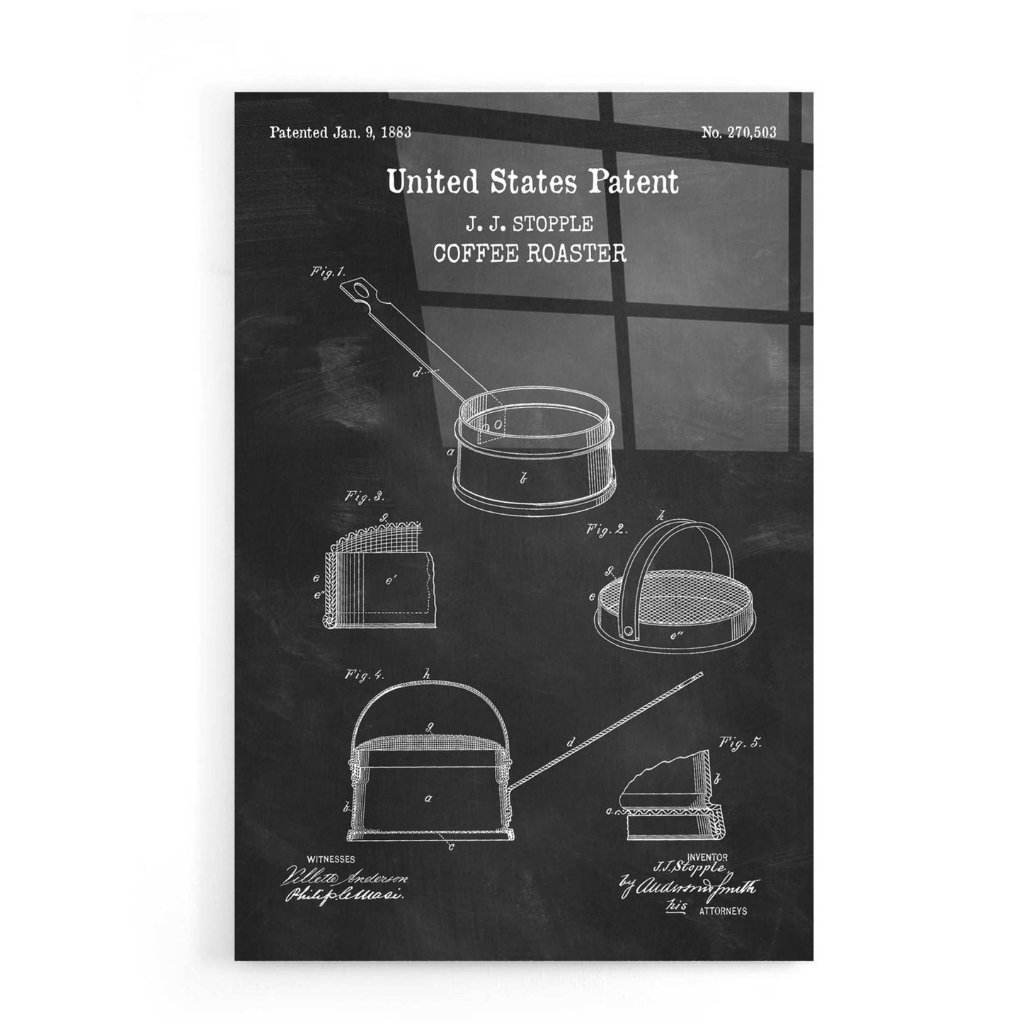 Coffee Roaster Blueprint Patent Chalkboard. An official US Patent remastered by Epic Art. Available on blackboard or parchment background.