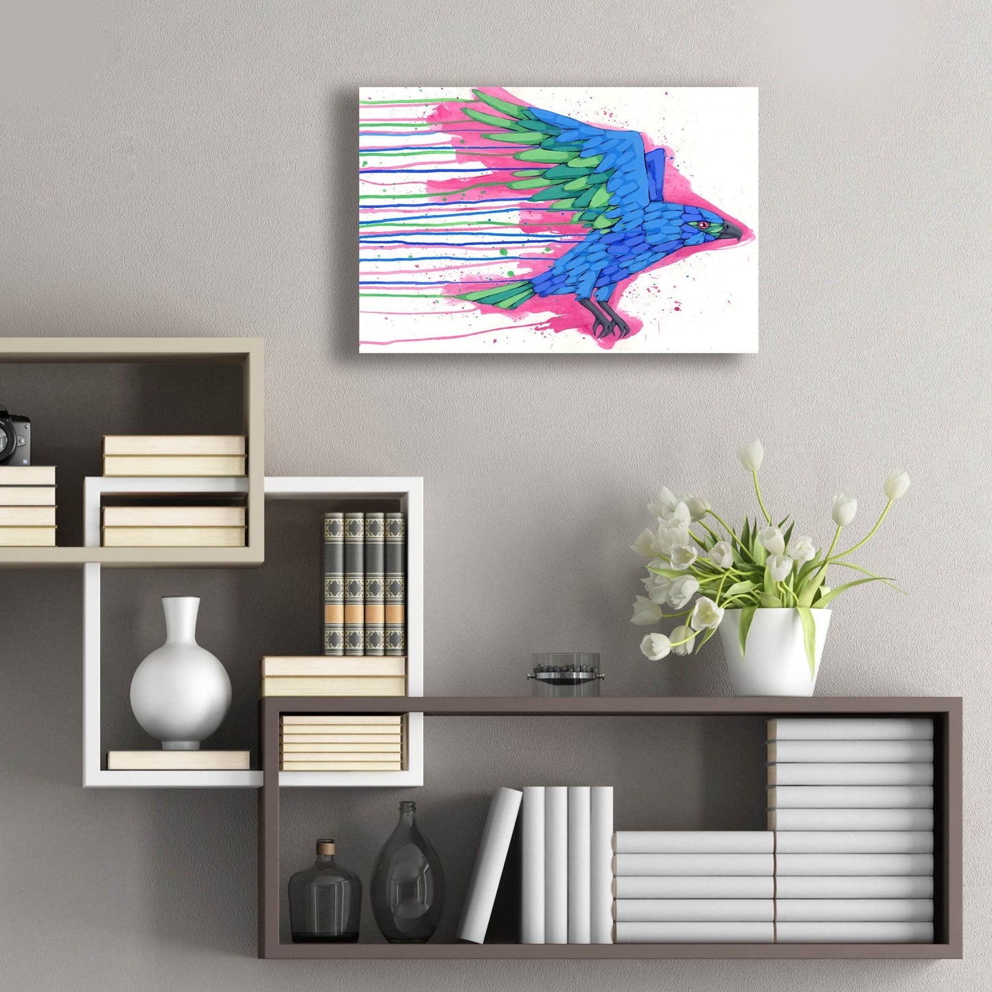 - Modern art with vibrant colors and extraordinary depth comes ready to hang with a mounted hanging plate on the back