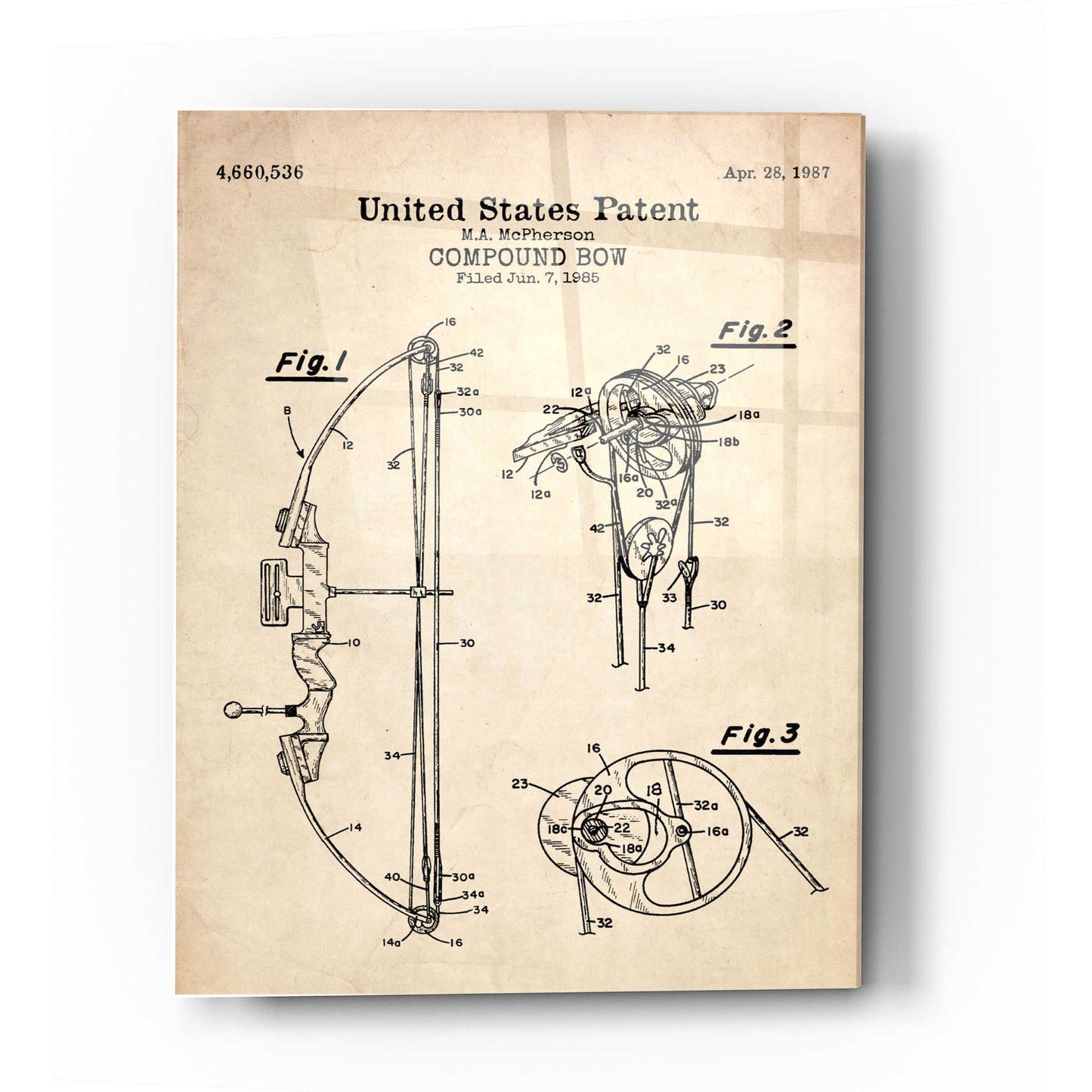 Epic Art 'Compound Bow Blueprint Patent Parchment' Acrylic Glass Wall Art
