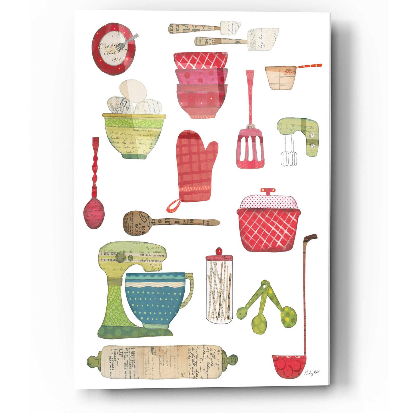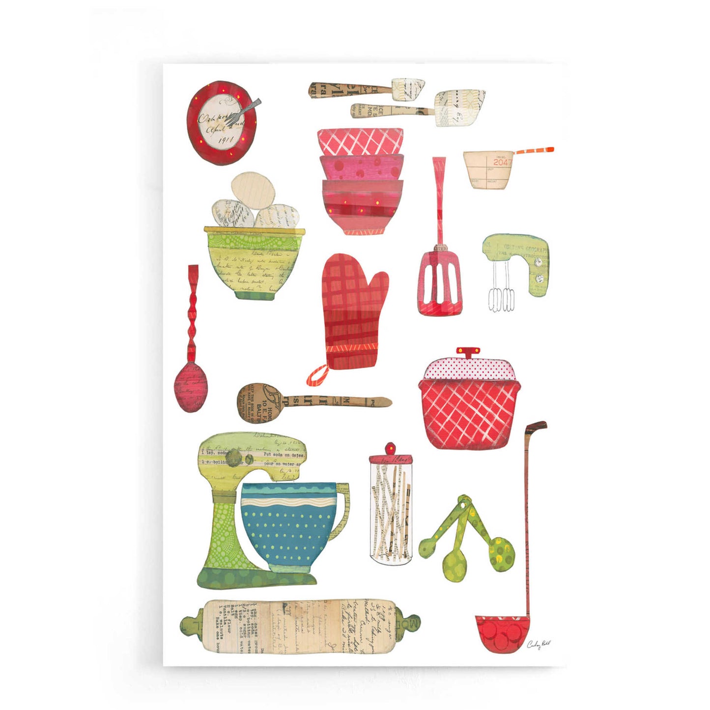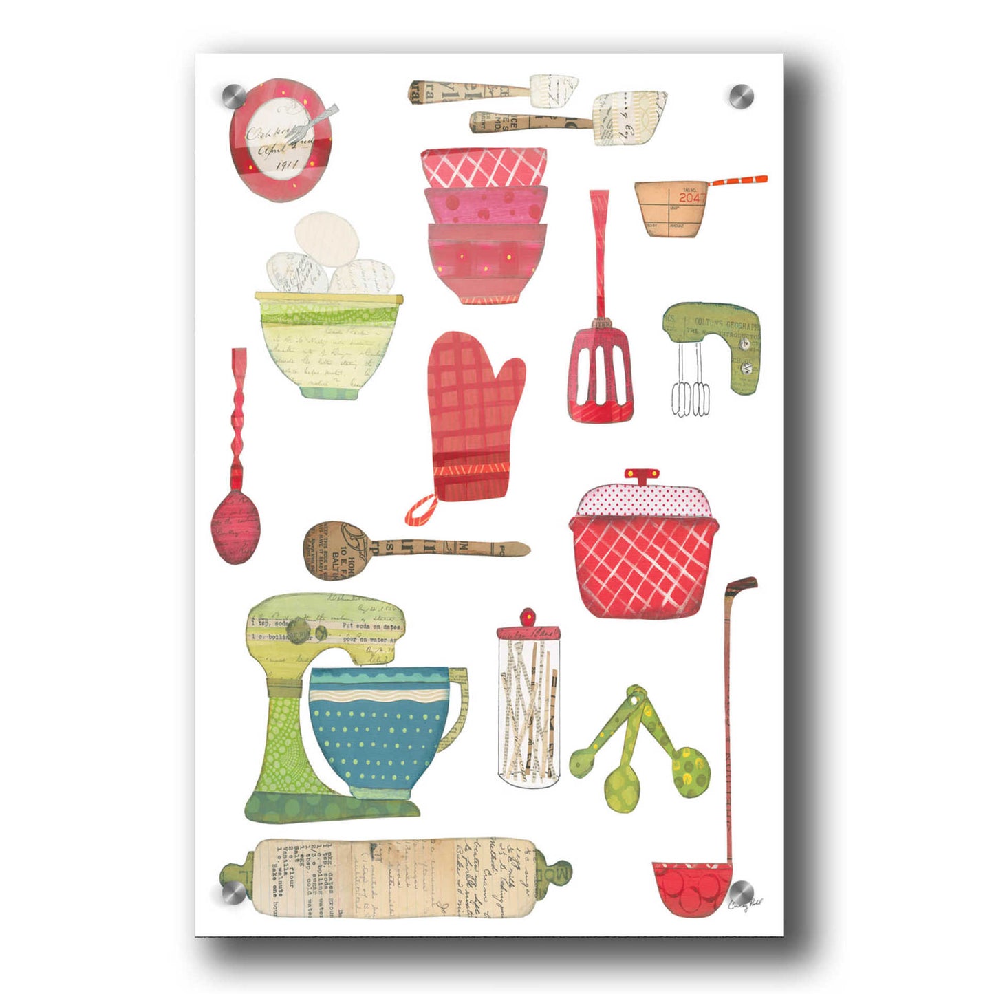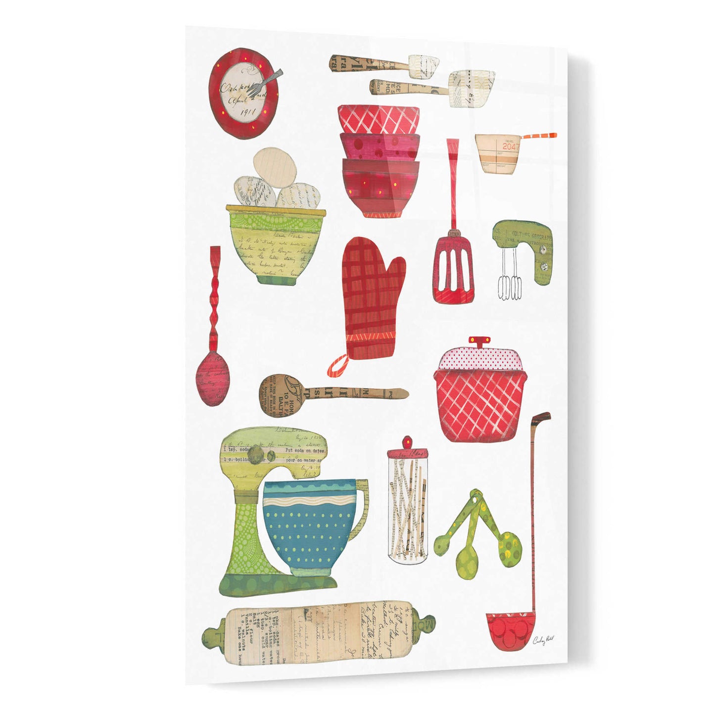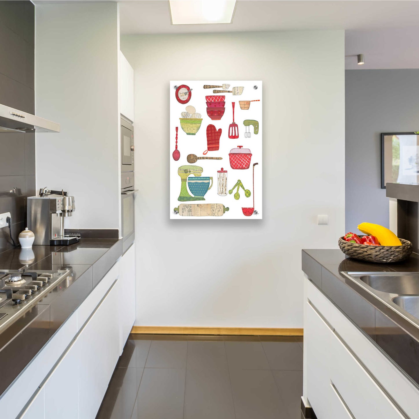 "Cool Kitchen III" by Courtney Prahl. Courtney is a mixed media artist. Collaging old and new materials are her signature style. She enjoys searching for vintage art materials to incorporate into her artwork. Residing in Maryland with her husband and two sons, she teaches art to children and is co-founder of her local art charity "Lend a Hand." Acrylic wall art looks amazing in your home or business. Printed on the back of the acrylic giving it depth and easy maintenance. The highly durable and hard-to-damage qualities make high definition acrylic the ideal wall art for hotels, rental properties, and restaurants. Now Epic Art brings you unmatched value in contemporary wall decor for your home as well. From small sizes to extra large sizes, it is easy to hang, won't shatter like glass if it ever falls down, and is easy to maintain. Simply dust it off or use a damp soft cloth for cleaning.