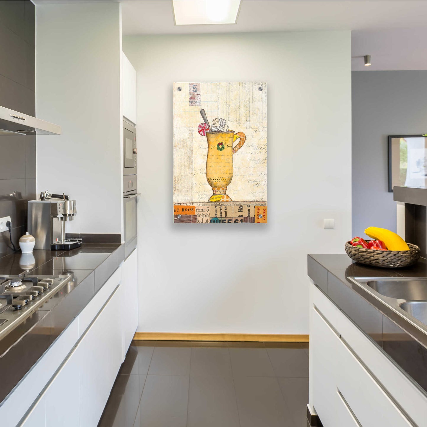"Cozy Cups IV" by Courtney Prahl. Courtney is a mixed media artist. Collaging old and new materials are her signature style. She enjoys searching for vintage art materials to incorporate into her artwork. Residing in Maryland with her husband and two sons, she teaches art to children and is co-founder of her local art charity "Lend a Hand." Acrylic wall art looks amazing in your home or business. Printed on the back of the acrylic giving it depth and easy maintenance. The highly durable and hard-to-damage qualities make high definition acrylic the ideal wall art for hotels, rental properties, and restaurants. Now Epic Art brings you unmatched value in contemporary wall decor for your home as well. From small sizes to extra large sizes, it is easy to hang, won't shatter like glass if it ever falls down, and is easy to maintain. Simply dust it off or use a damp soft cloth for cleaning.