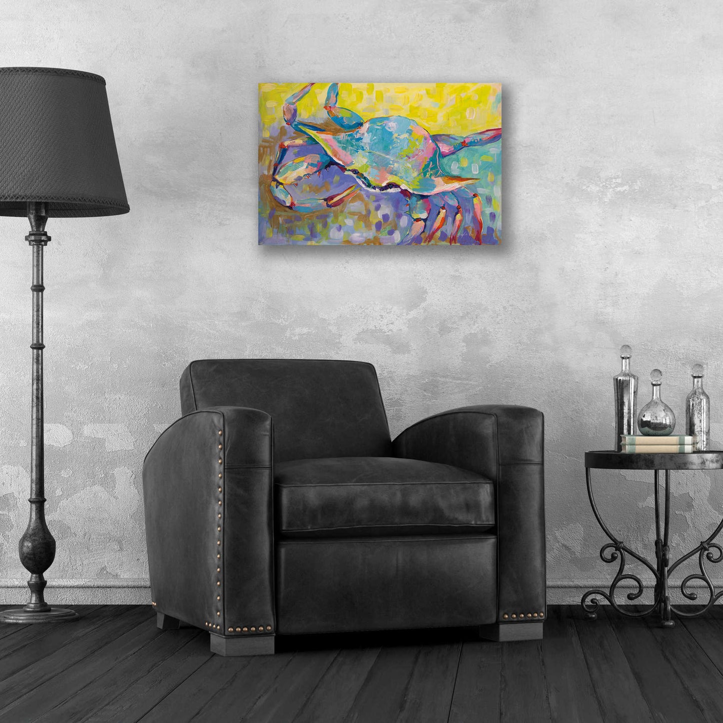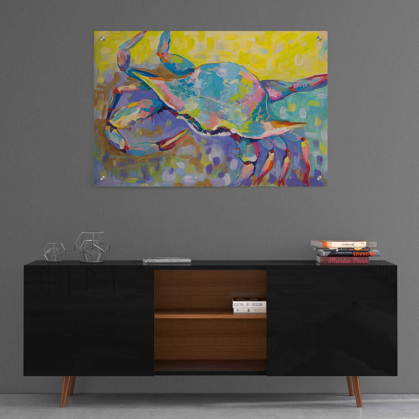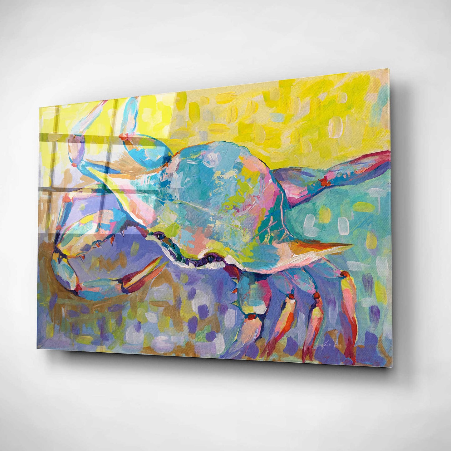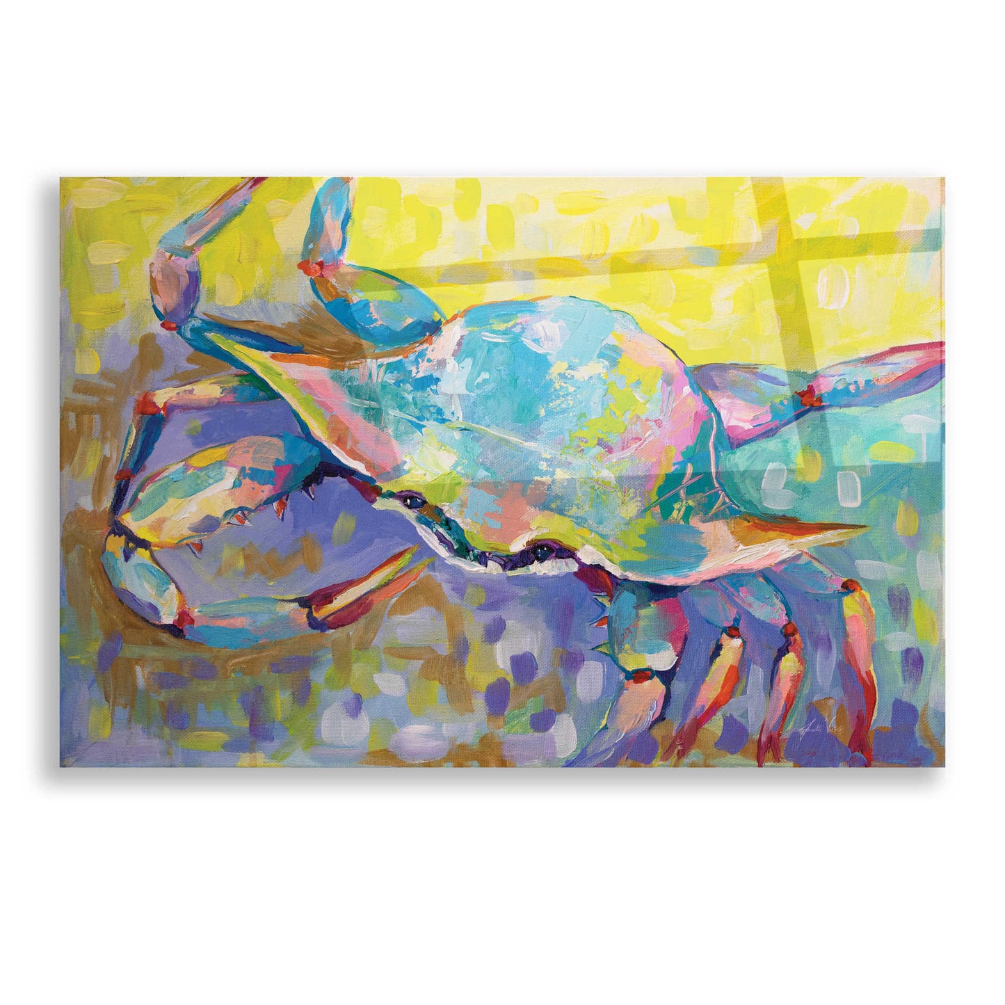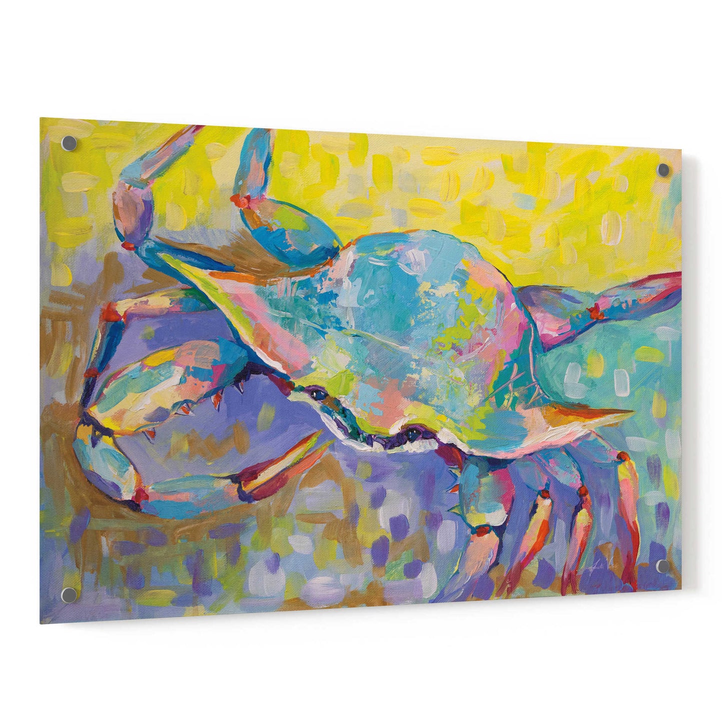 "Crabby Boy" by Jeanette Vertentes. Jeanette's contemporary paintings pay homage to North Stonington, Connecticut, where she lives with her dogs and gardens. She adds each artwork vibrancy with the use of color, texture, movement and bold compositions. As a child, she trained under the painter John Lutes. She earned a Bachelor of Fine Art with a concentration in painting from Rhode Island College. You can find Jeanette's work displayed throughout spring and summer. She teaches throughout the winter and works on commissions worldwide. Acrylic wall art looks amazing in your home or business. Printed on the back of the acrylic giving it depth and easy maintenance. The highly durable and hard-to-damage qualities make high definition acrylic the ideal wall art for hotels, rental properties, and restaurants. Now Epic Art brings you unmatched value in contemporary wall decor for your home as well. From small sizes to extra large sizes, it is easy to hang, won't shatter like glass if it ever falls down, and is easy to maintain. Simply dust it off or use a damp soft cloth for cleaning.