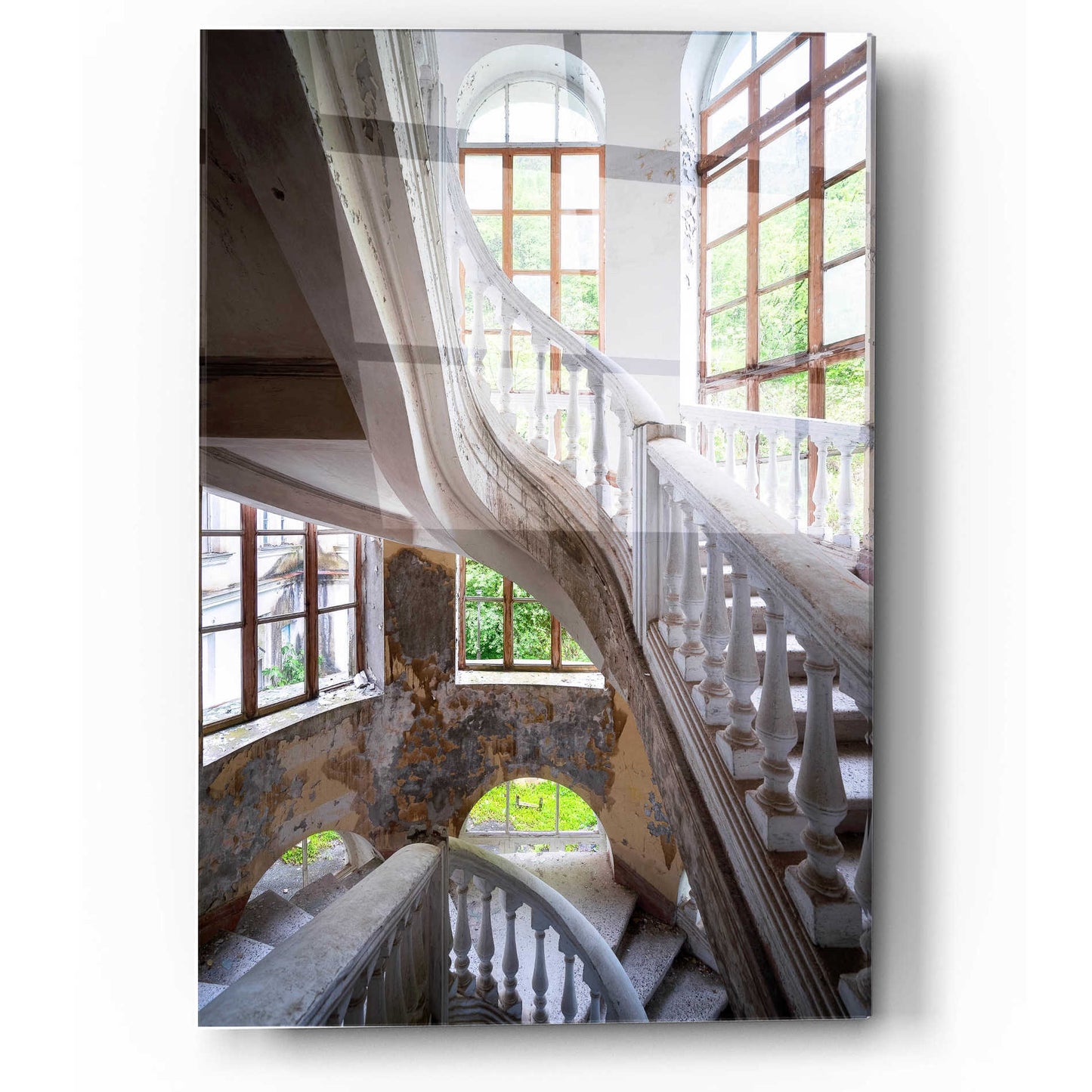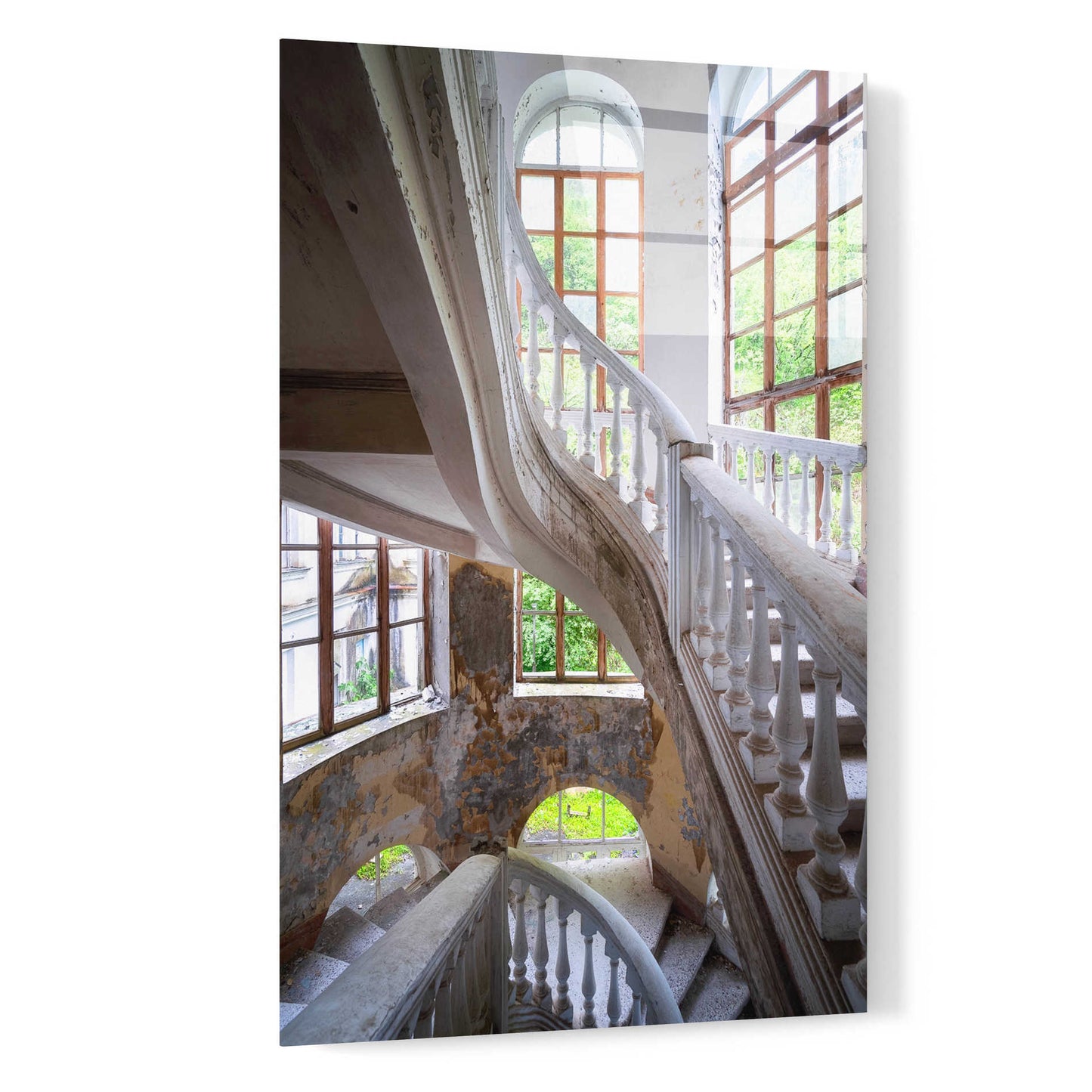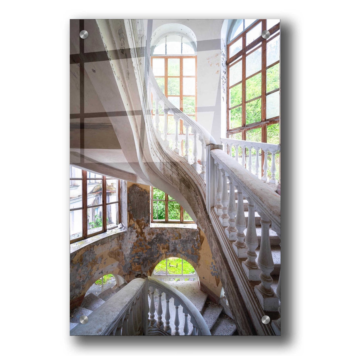 "Curved Stairs" by Roman Robroek. Roman is award-winning, urban photography born and raised in the south of the Netherlands. He specializes in capturing interiors and exteriors of buildings with the use of natural light only. He likes to bring abandoned and decayed buildings a curiosity to the viewer: “What was the story behind those buildings? Who used to live there? What purpose did these objects serve and why were they abandoned?” Acrylic wall art looks amazing in your home or business. Printed on the back of the acrylic giving it depth and easy maintenance. The highly durable and hard-to-damage qualities make high definition acrylic the ideal wall art for hotels, rental properties, and restaurants. Now Epic Art brings you unmatched value in contemporary wall decor for your home as well. From small sizes to extra large sizes, it is easy to hang, won"t shatter like glass if it ever falls down, and is easy to maintain. Simply dust it off or use a damp soft cloth for cleaning.