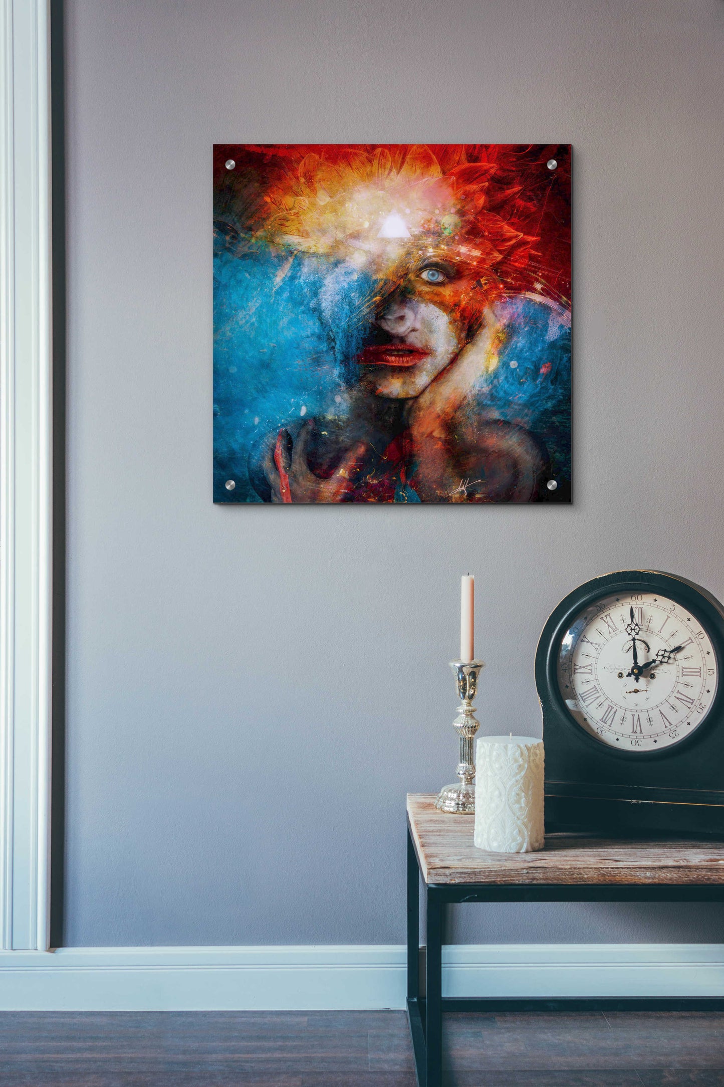 "Dethroned" by Mario Sanchez Nevado. Mario Nevado delivers some of the best surreal artworks of the digital era, but it's his sensitive but caustic approach to storytelling that makes his style to be an unique emotional experience. Acrylic wall art looks amazing in your home or business. Printed on the back of the acrylic giving it depth and easy maintenance. The highly durable and hard-to-damage qualities make high definition acrylic the ideal wall art for hotels, rental properties, and restaurants. Now Epic Art brings you unmatched value in contemporary wall decor for your home as well. From small sizes to extra large sizes, it is easy to hang, won't shatter like glass if it ever falls down, and is easy to maintain. Simply dust it off or use a damp soft cloth for cleaning.
