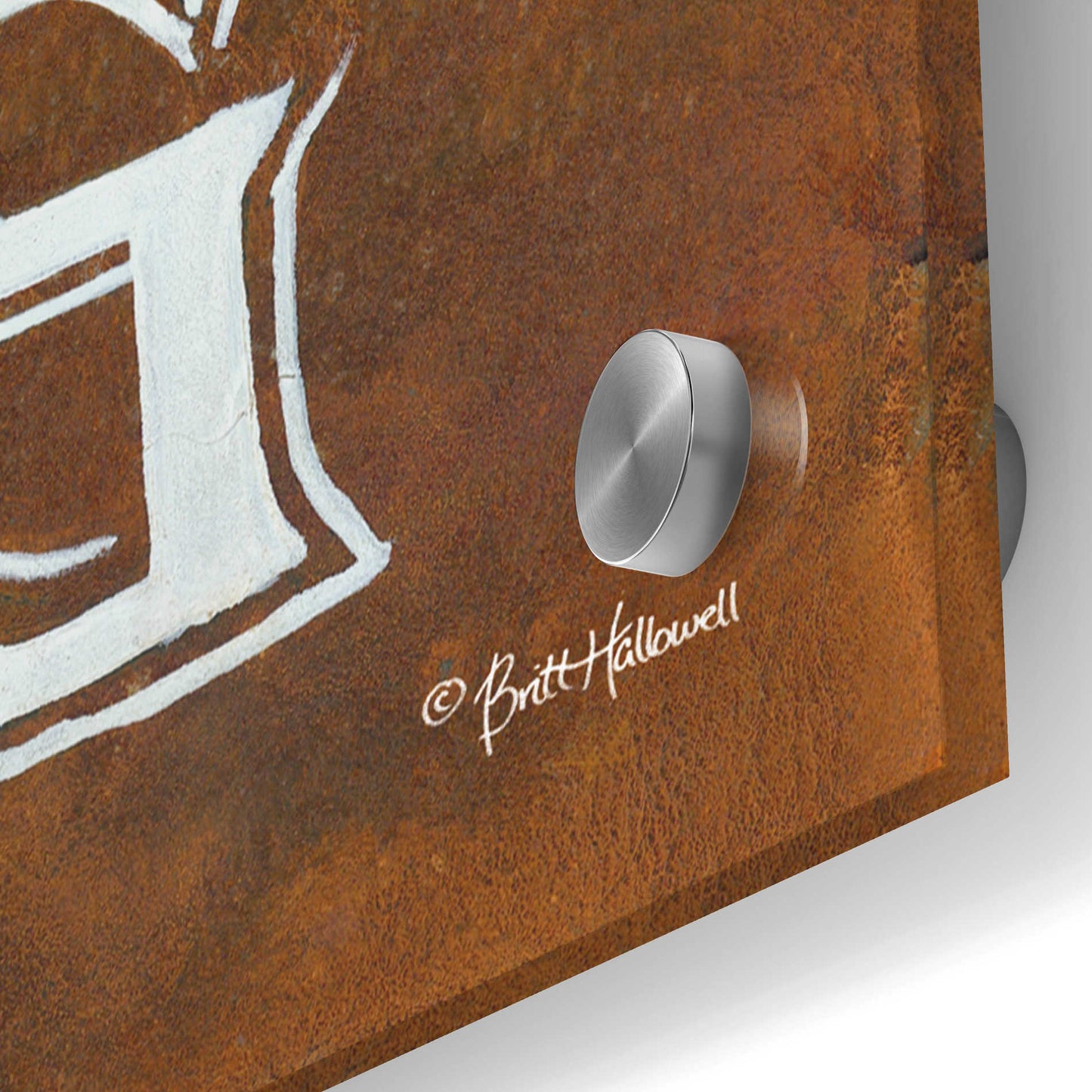 Britt is a self-taught artist. She uses the natural weathering process created by natural elements; thus, real rust is utilized in her work. Plaster is also incorporated in multiple layers over a period of several days. This results in artwork that is completely unique and simply cannot be duplicated due to the environmental changes of temperature and humidity. "I love working with rust and textures because it allows me to create minimalist designs with bold contrasts that are simple and yet very intricate in their nature." Britt's goal is to create artwork that evokes positive emotions from the viewer with the use of imagery, color, and splatter.