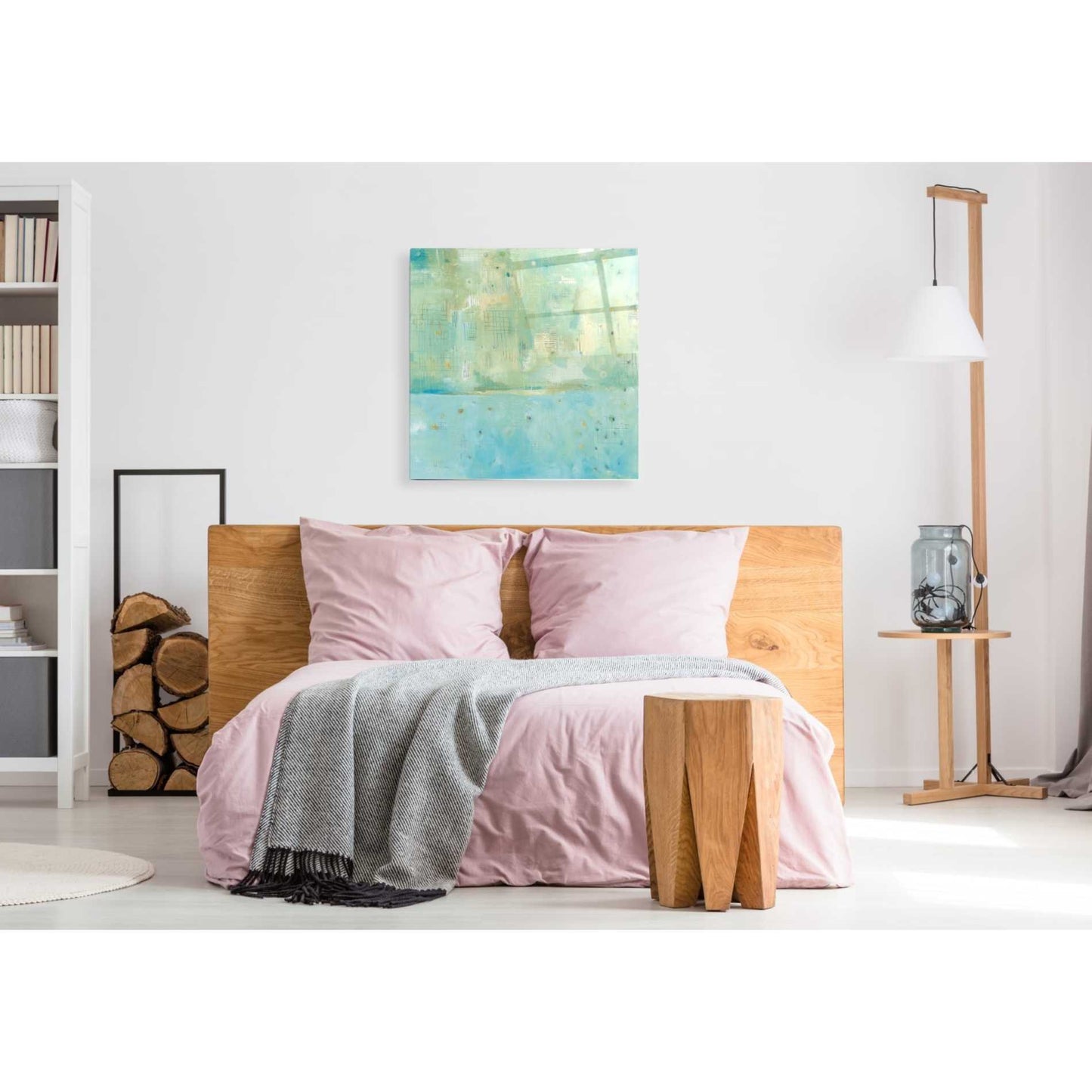 "Dreaming of the Shore" by Melissa Averinos printed on crystal clear acrylic glass. This abstract piece leads your mind to believe you could be looking at a sea view. This would fit in any room from your large statement piece or with others as a set.