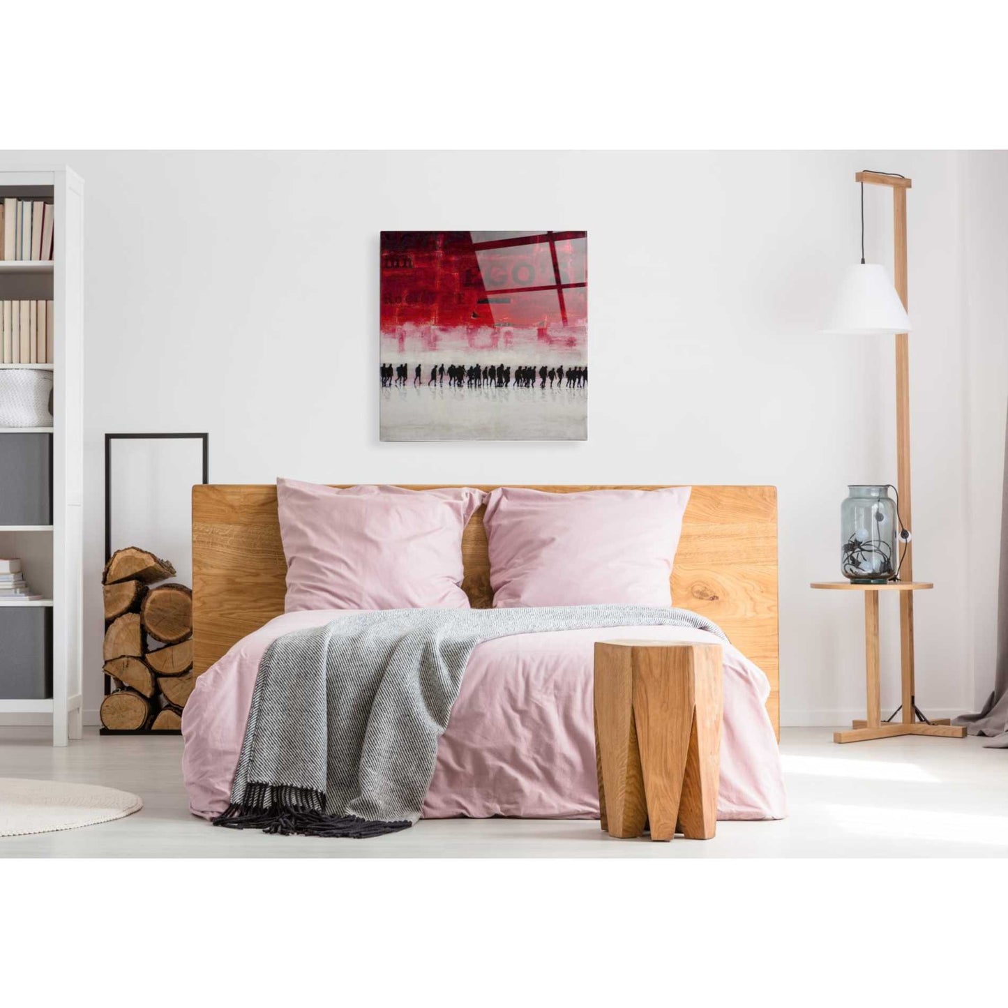 "EGO'S" by DB Waterman printed on crystal clear acrylic glass. Featuring a line of people silhouettes over particular background.