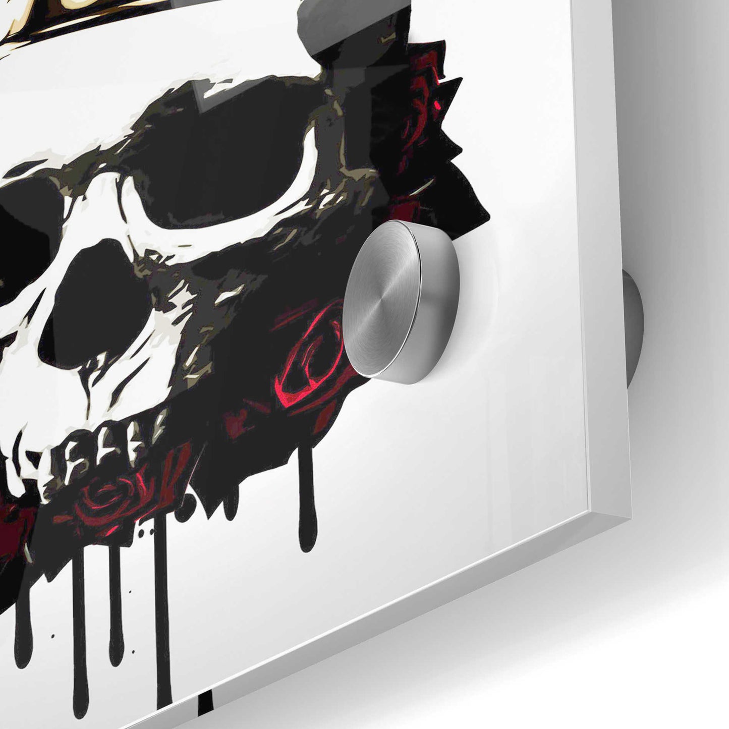 "El Rey De La Muerte" by Nicklas Gustafsson printed on crystal clear acrylic glass. Digital illustration of a Macbethian skull on a bed of roses. Nicklas Gustafsson is a graphic designer and photographer from Stockholm, Sweden. He combines photography with drawing and different digital techniques. He is constantly learning and improving new skills/techniques to add to his skill set. Acrylic wall art looks amazing in your home or business. Printed on the back of the acrylic giving it depth and easy maintenance. The super durable and hard-to-damage qualities make it the ideal wall art for hotels, rental properties, and restaurants. Now Epic Art brings it to you at unbelievably low prices making it very affordable for your home as well. From small sizes to extra large sizes, it is easy to hang, won"t shatter like glass if it ever falls down, and is easy to maintain. Simply dust it off or use a damp soft cloth for cleaning. For small sizes, mounting brackets and padded bumpers will be attached for simple hanging. For the larger sizes, pre-drilled holes and fitted metal standoffs are included for easy wall installation.