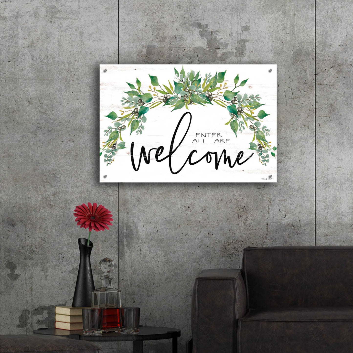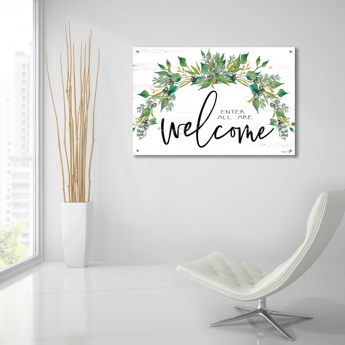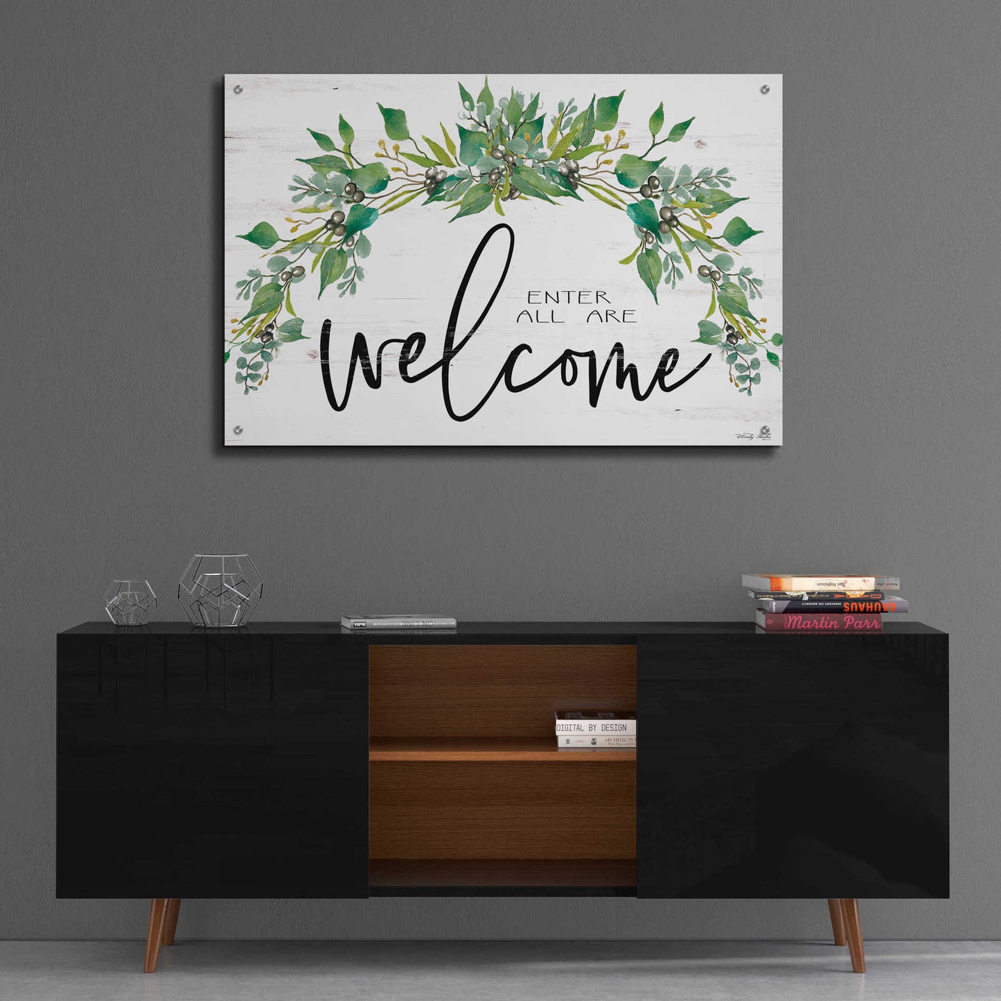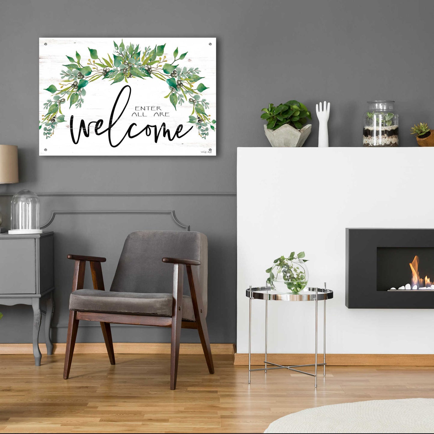 Epic Art 'Enter All Are Welcome' by Cindy Jacobs, Acrylic Glass Wall Art
