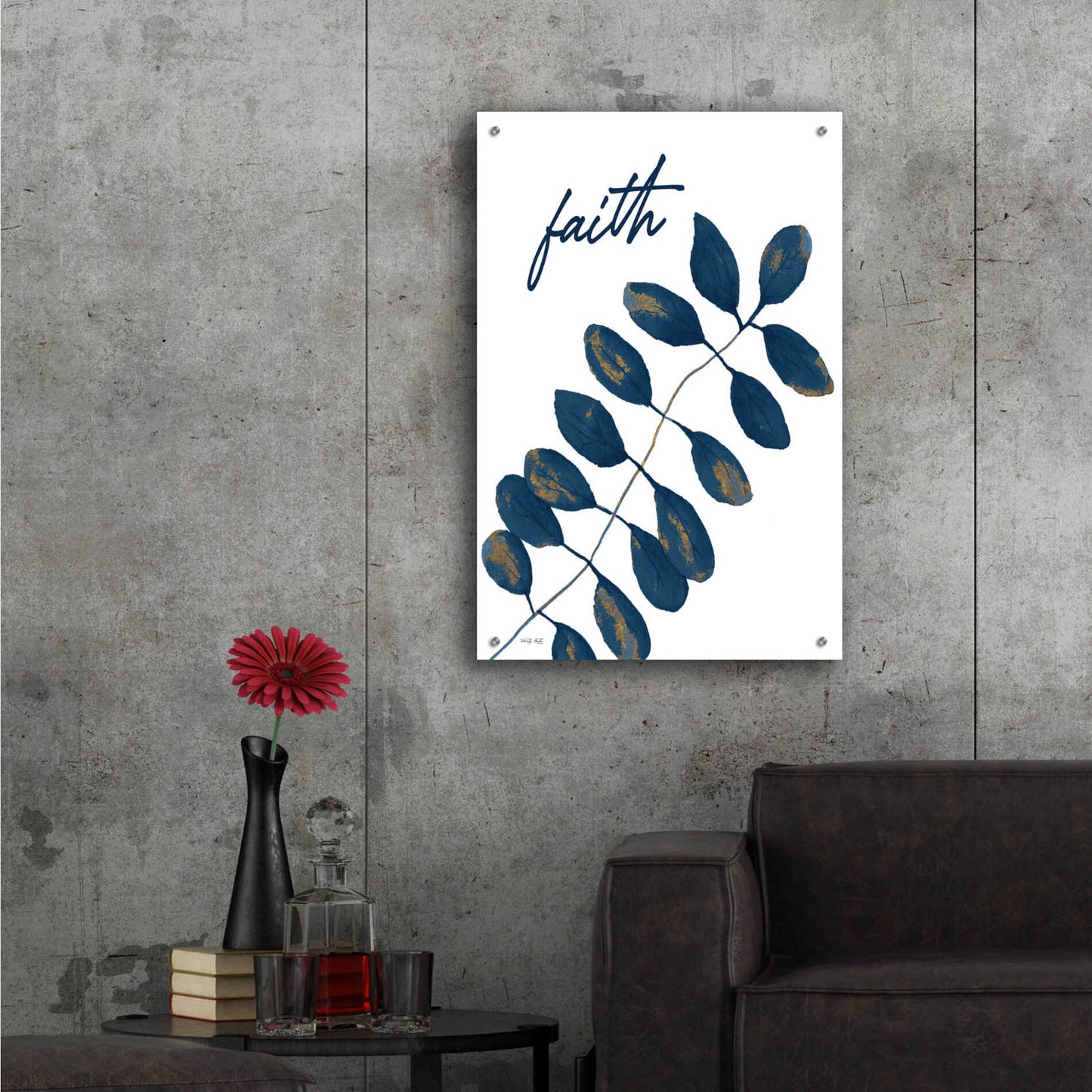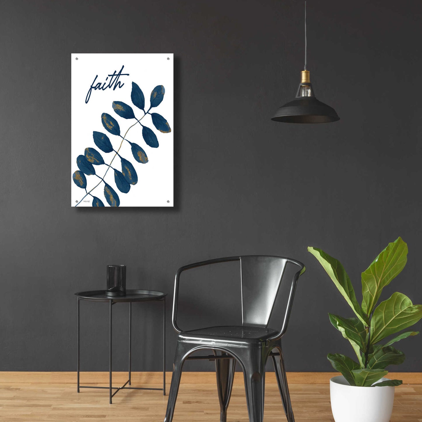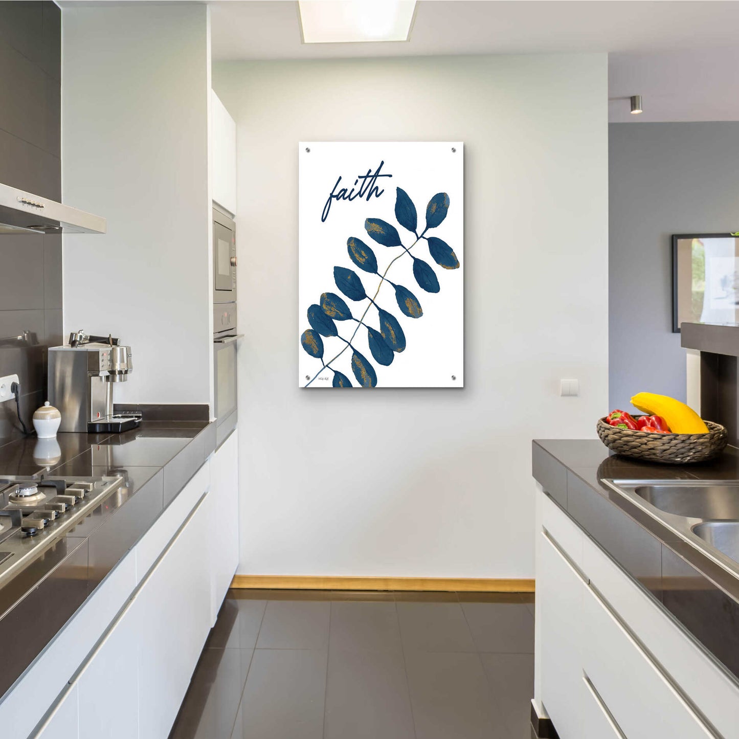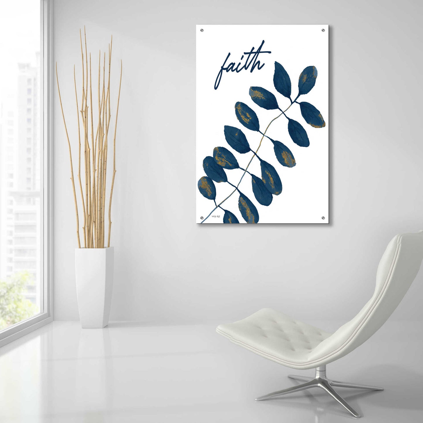 Epic Art 'Faith Navy Gold Leaves' by Cindy Jacobs, Acrylic Glass Wall Art