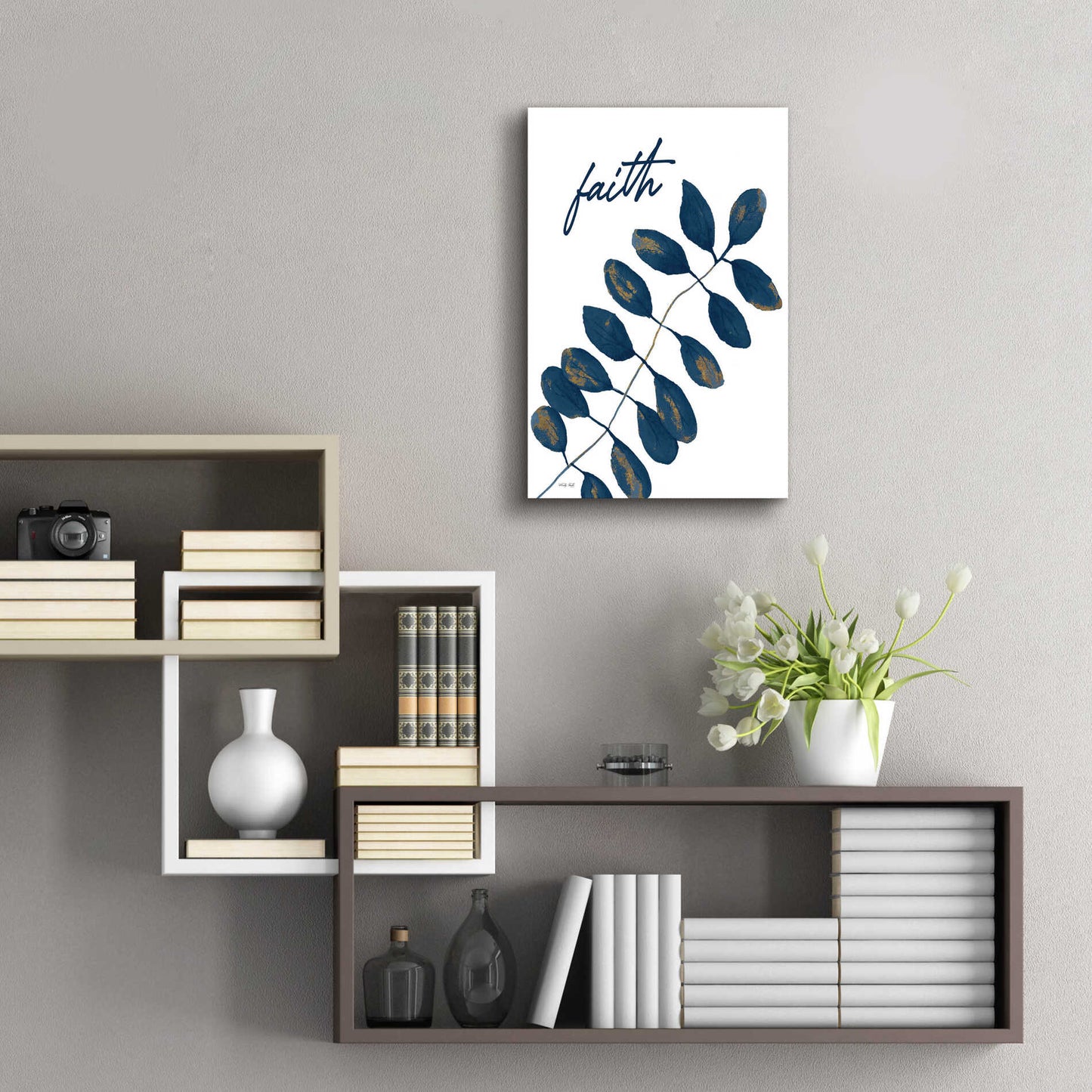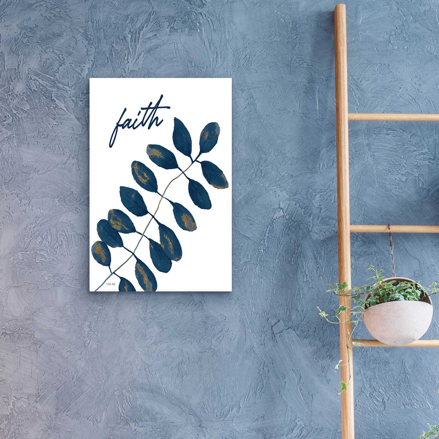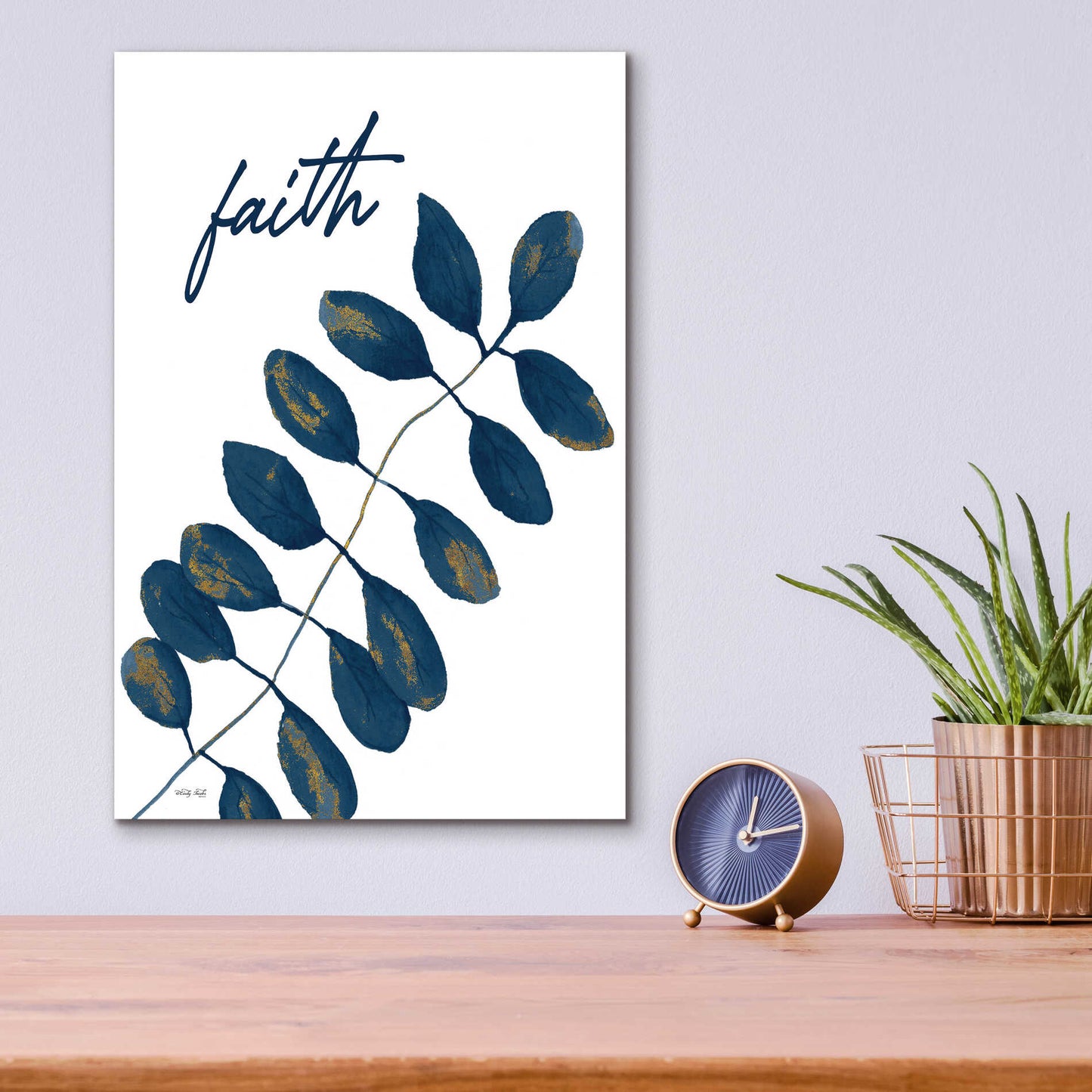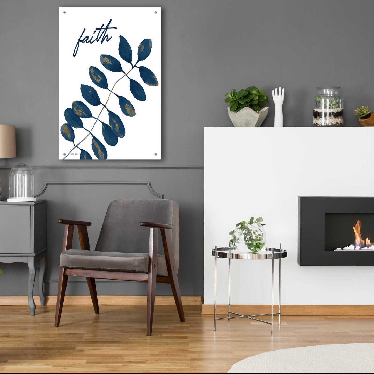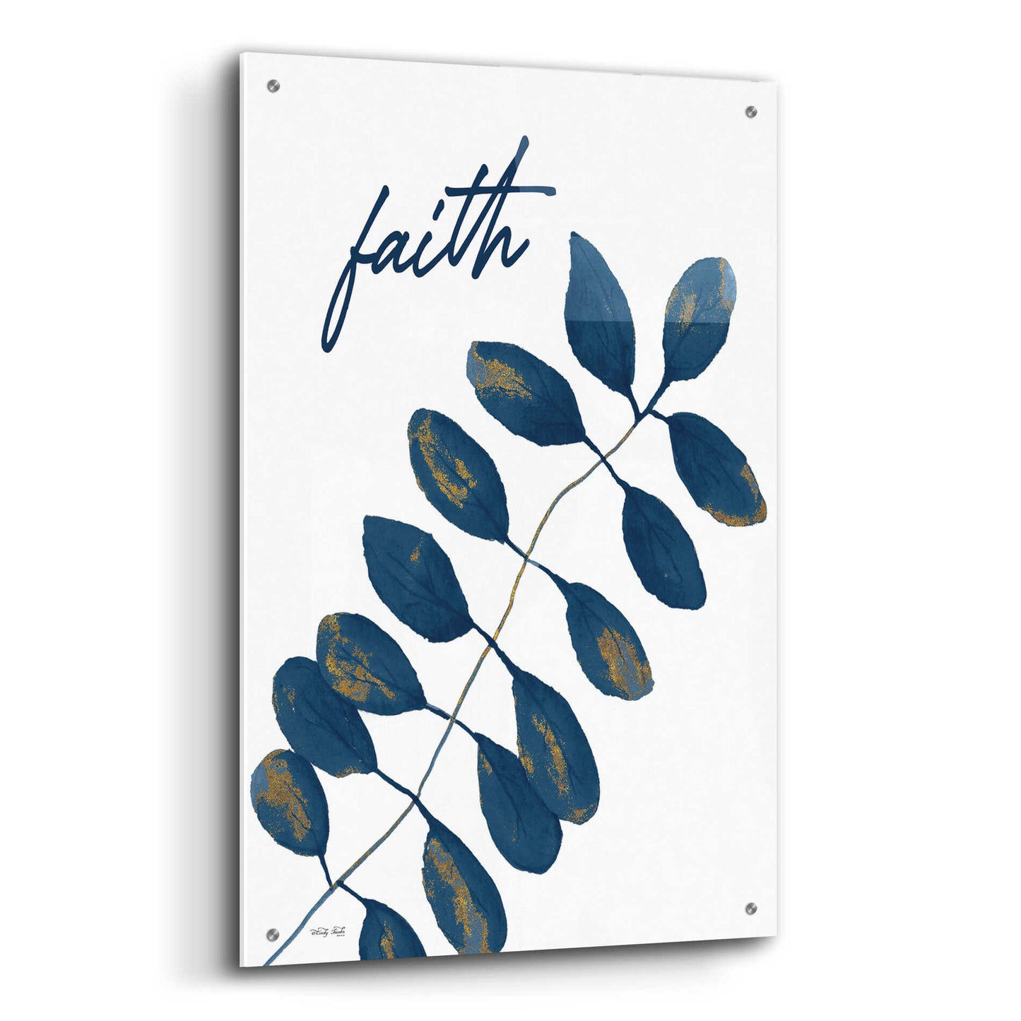 Epic Art 'Faith Navy Gold Leaves' by Cindy Jacobs, Acrylic Glass Wall Art