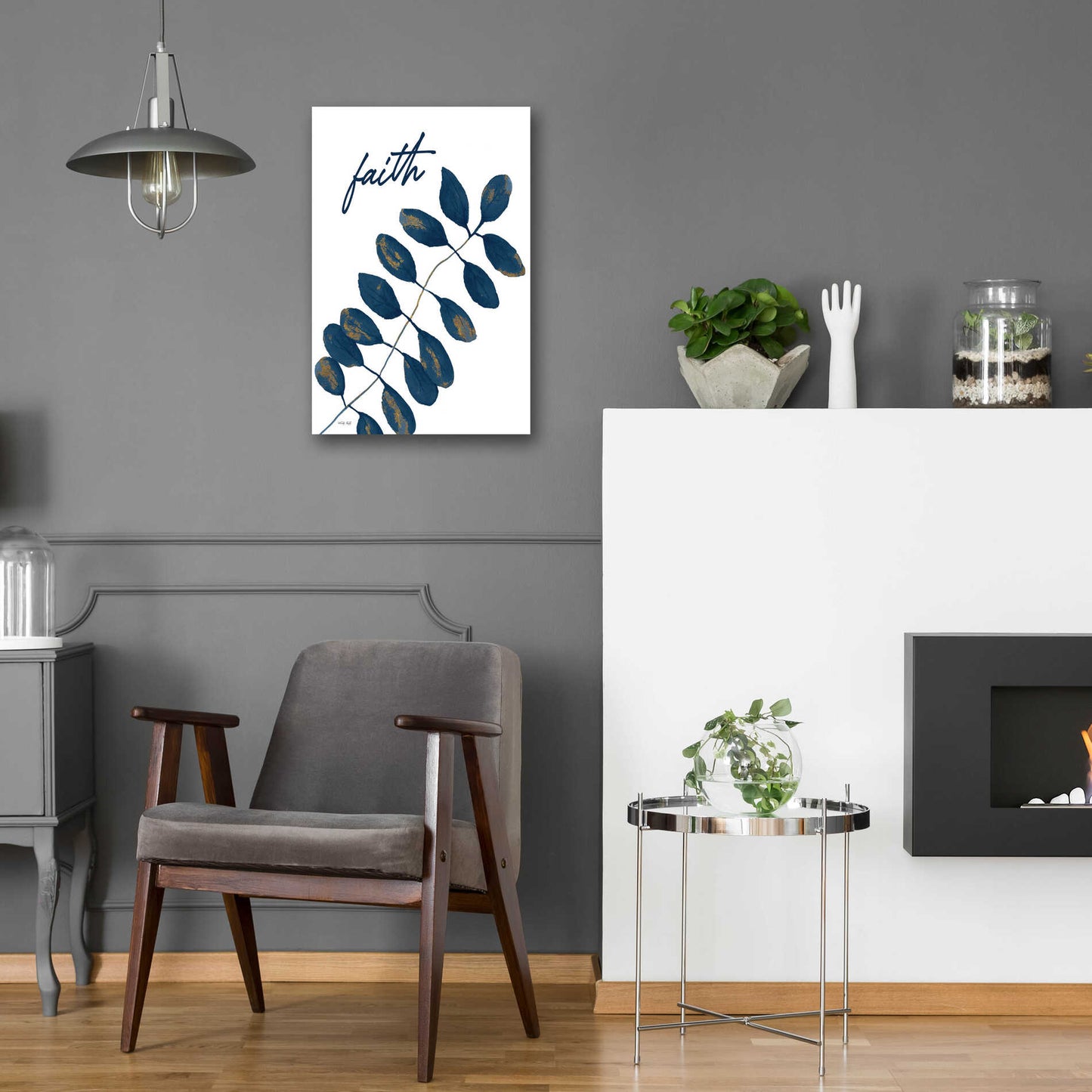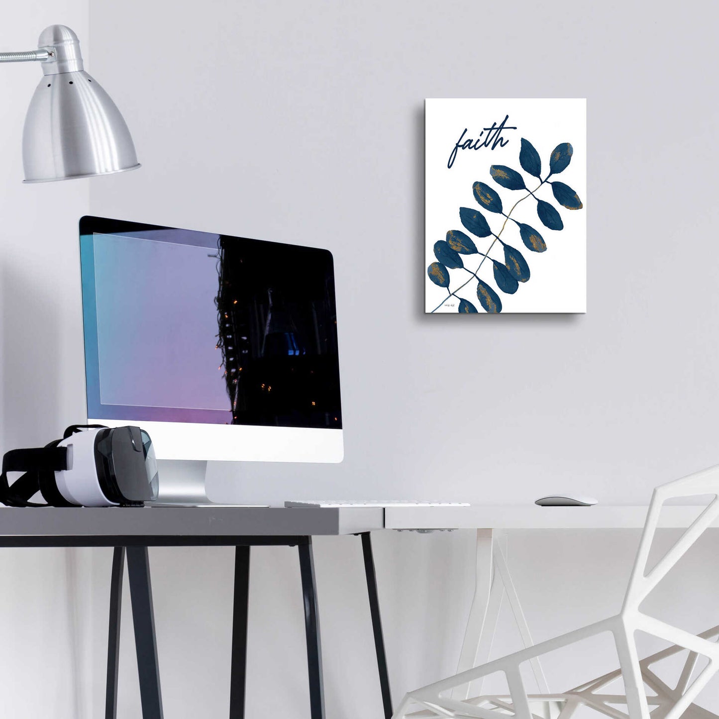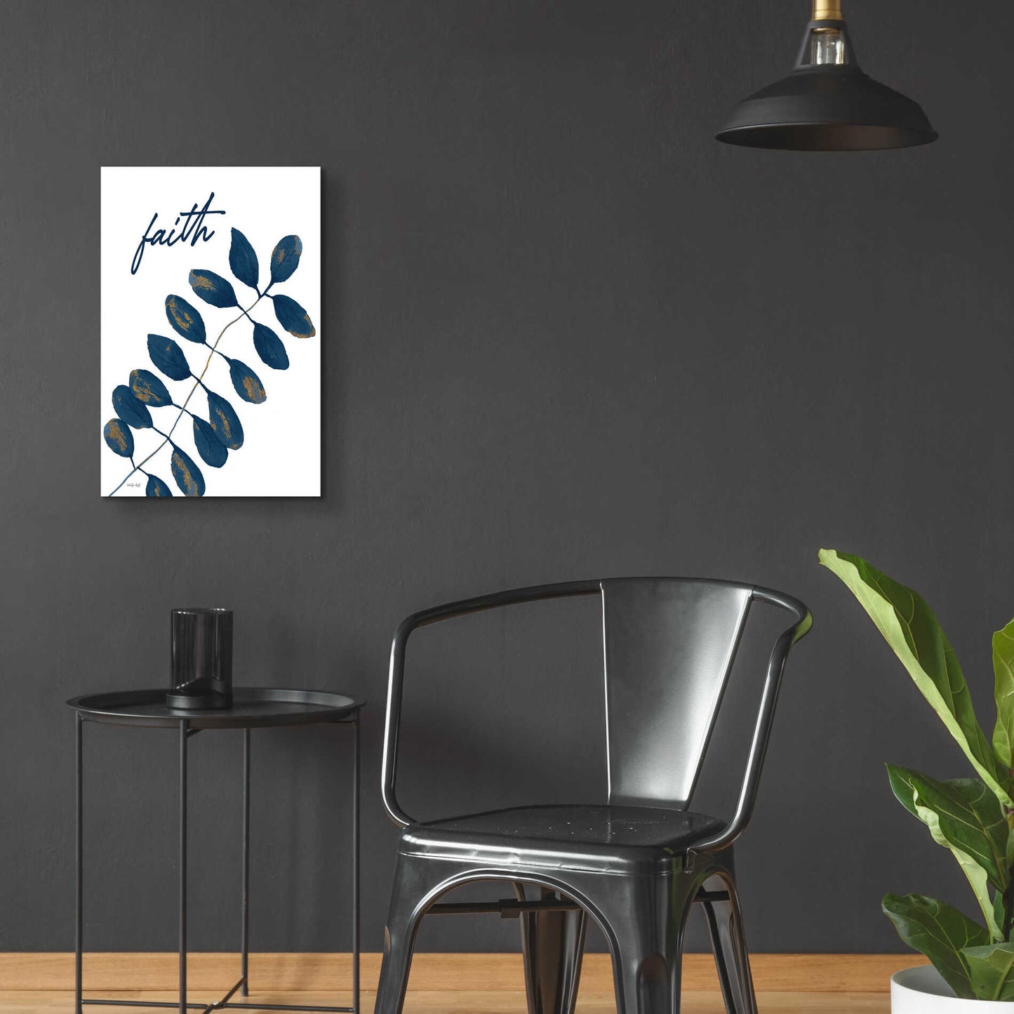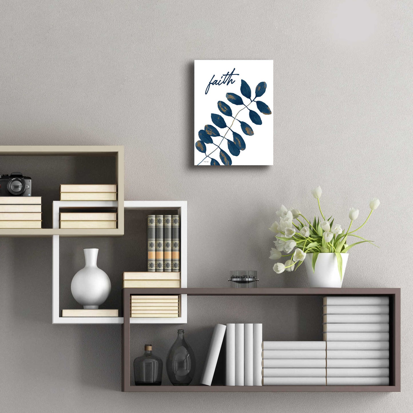 Epic Art 'Faith Navy Gold Leaves' by Cindy Jacobs, Acrylic Glass Wall Art