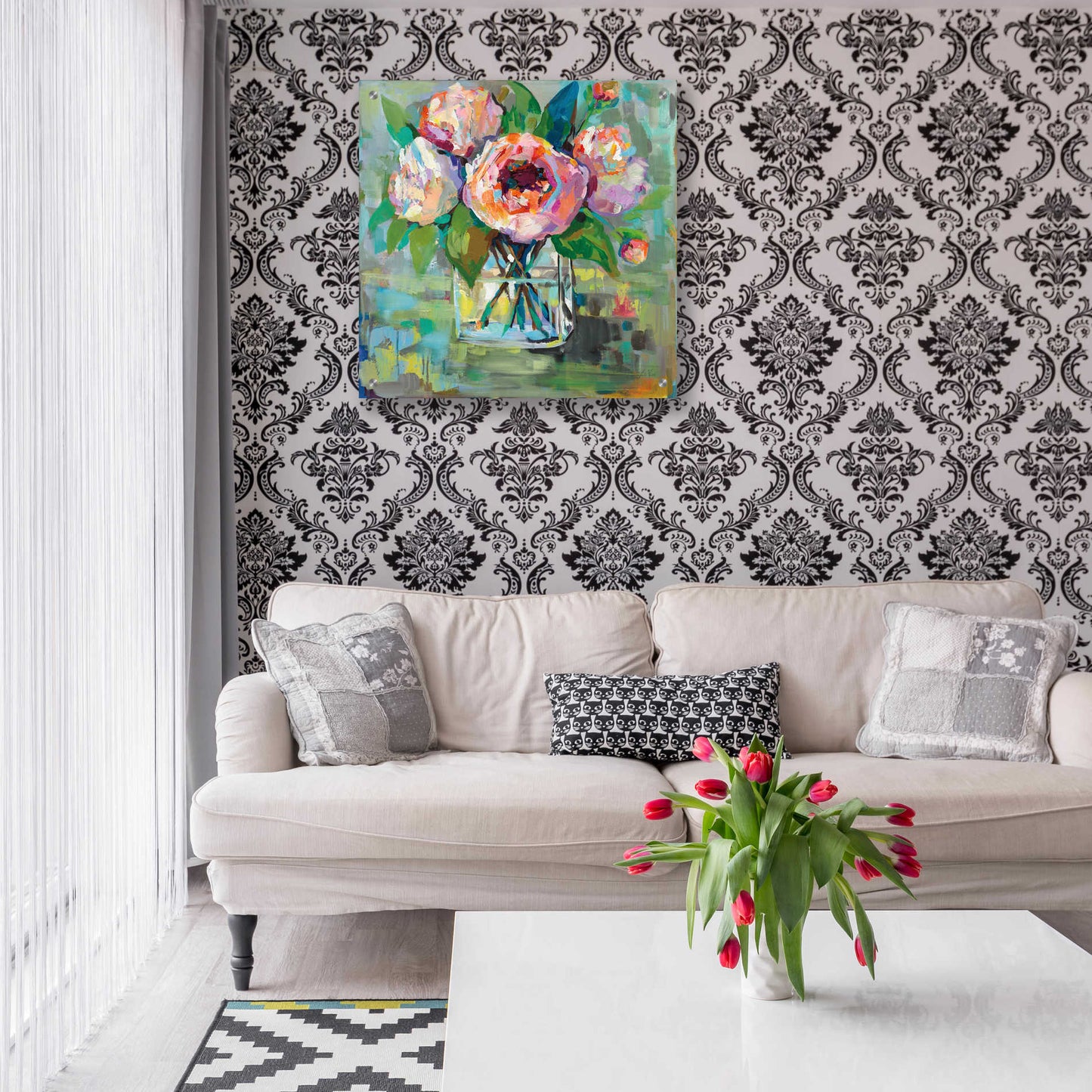 "First of the Season" by Jeanette Vertentes. Jeanette's contemporary paintings pay homage to North Stonington, Connecticut, where she lives with her dogs and gardens. She adds each artwork vibrancy with the use of color, texture, movement and bold compositions. As a child, she trained under the painter John Lutes. She earned a Bachelor of Fine Art with a concentration in painting from Rhode Island College. You can find Jeanette's work displayed throughout spring and summer. She teaches throughout the winter and works on commissions worldwide. Acrylic wall art looks amazing in your home or business. Printed on the back of the acrylic giving it depth and easy maintenance. The highly durable and hard-to-damage qualities make high definition acrylic the ideal wall art for hotels, rental properties, and restaurants. Now Epic Art brings you unmatched value in contemporary wall decor for your home as well. From small sizes to extra large sizes, it is easy to hang, won't shatter like glass if it ever falls down, and is easy to maintain. Simply dust it off or use a damp soft cloth for cleaning.