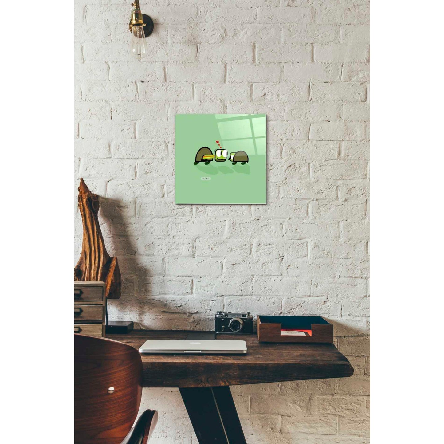 "Flirtle" by Chuck Wimmer printed on crystal clear acrylic glass. Featuring a turtle flirting with a prospect mate. Perfect piece for your home or commercial space.