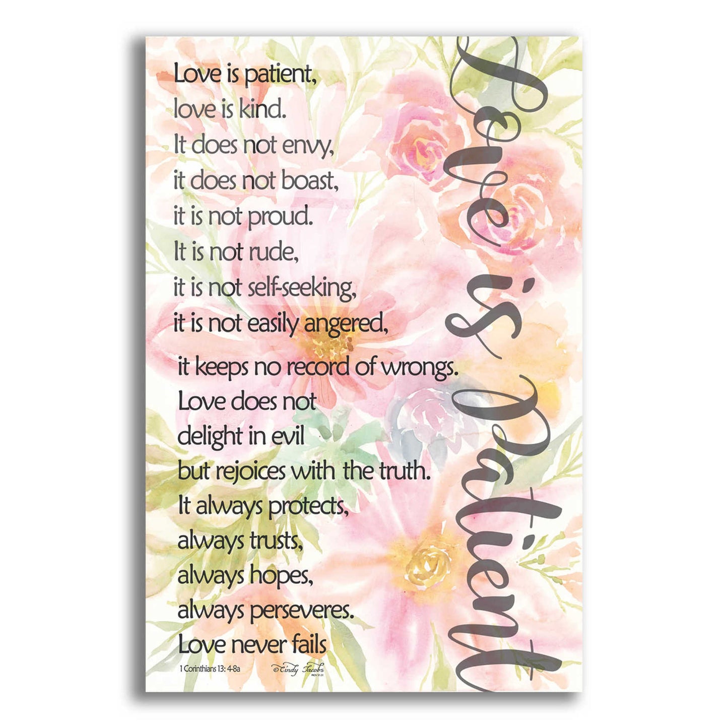 Epic Art 'Floral Love is Patient' by Cindy Jacobs, Acrylic Glass Wall Art