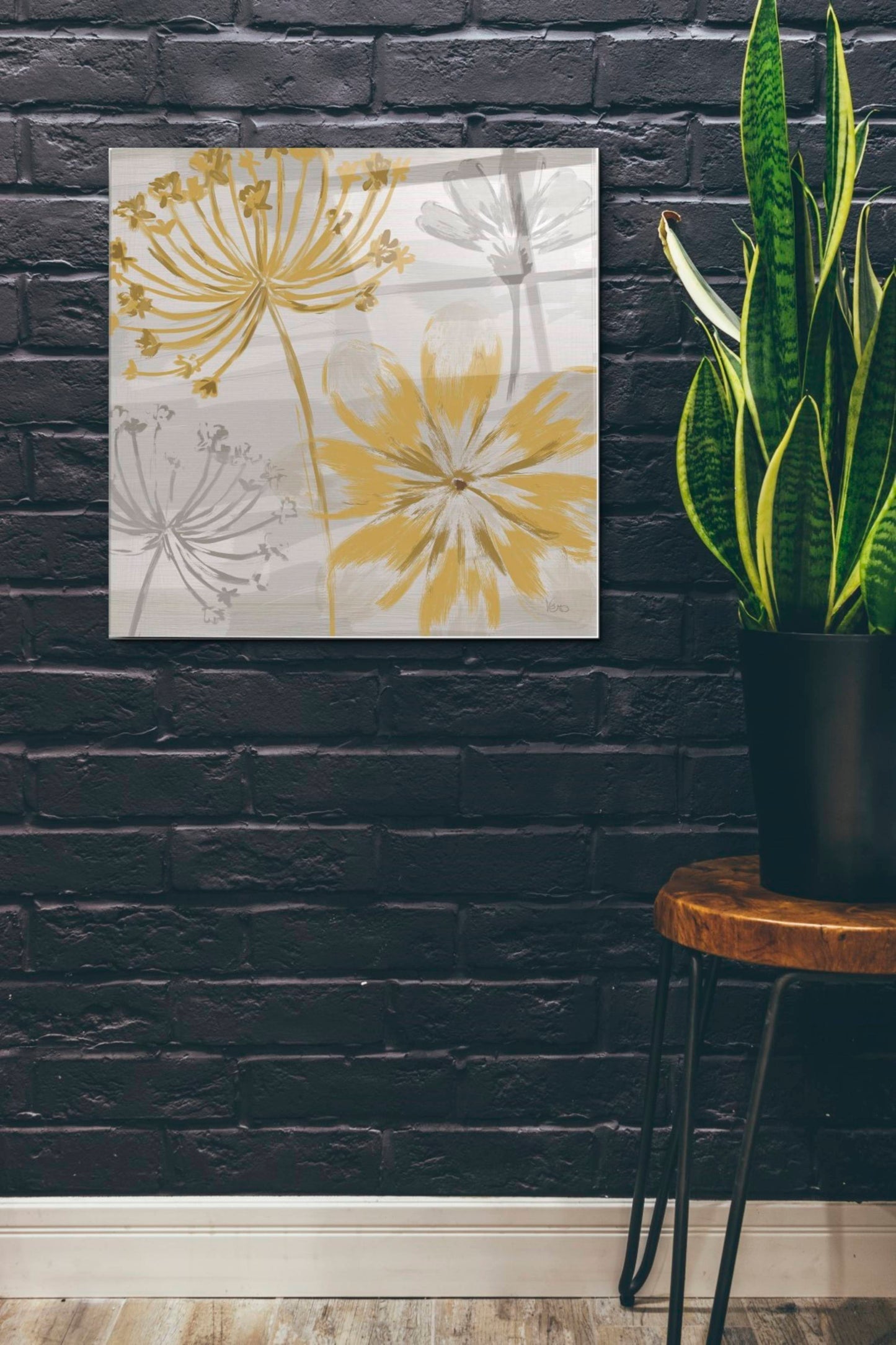 "Flowers in the Wind II" by Veronique Charron printed on crystal clear acrylic glass.Veronique Charron is a French Canadian artist residing in Charlevoix, Quebec. The environment surrounding her country home provides the inspiration for her graphic designs. Although she had formally studied graphic art and design, Veronique"s style of artwork has evolved into a unique mixture of textures, colors, and fashionable flair. Acrylic wall art looks amazing in your home or business. Printed on the back of the acrylic giving it depth and easy maintenance. The super durable and hard-to-damage qualities make it the ideal wall art for hotels, rental properties, and restaurants. Now Epic Art brings it to you at unbelievably low prices making it very affordable for your home as well. From small sizes to extra large sizes, it is easy to hang, won"t shatter like glass if it ever falls down, and is easy to maintain. Simply dust it off or use a damp soft cloth for cleaning.For small sizes, mounting brackets and padded bumpers will be attached for simple hanging. For the larger sizes, pre-drilled holes and fitted metal standoffs are included for easy wall installation.