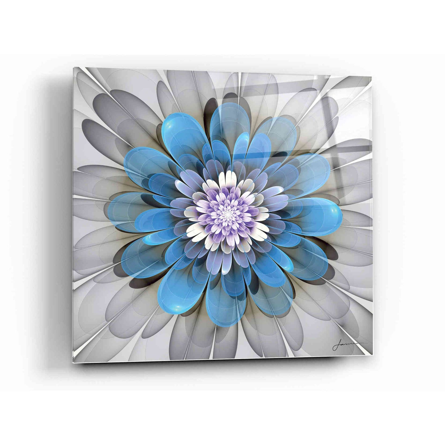 "Fractal Blooms III" by James Burghardt printed on crystal clear acrylic glass. James Burghardt has been a creative force in artwork and graphic design for over 20 years. His artwork has appeared in print, television and computer interfaces. James grew up in Palm Springs, California. He was a child star and sang for president Ronald Reagan. He also made 2 record albums and appeared in many stage productions. This gave him early exposure to the arts and helped lay the course for his career. With a keen eye for design and layout, James' artwork combines traditional themes with contemporary flair. His unique use of natural elements and color composition complements any environment. Acrylic wall art looks amazing in your home or business. Printed on the back of the acrylic giving it depth and easy maintenance. The super durable and hard-to-damage qualities make it the ideal wall art for hotels, rental properties, and restaurants. Now Epic Art brings it to you at unbelievably low prices making it very affordable for your home as well. From small sizes to extra large sizes, it is easy to hang, won"t shatter like glass if it ever falls down, and is easy to maintain. Simply dust it off or use a damp soft cloth for cleaning. For small sizes, mounting brackets and padded bumpers will be attached for simple hanging. For the larger sizes, pre-drilled holes and fitted metal standoffs are included for easy wall installation.