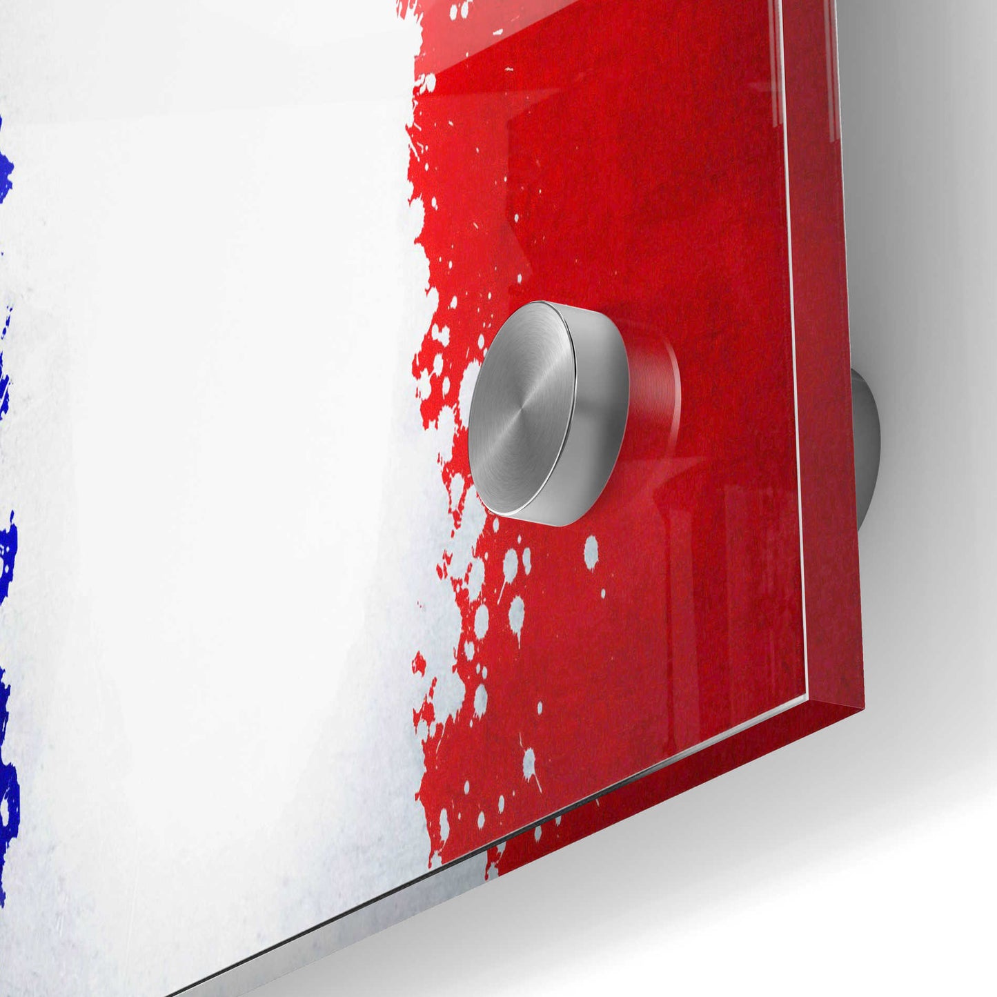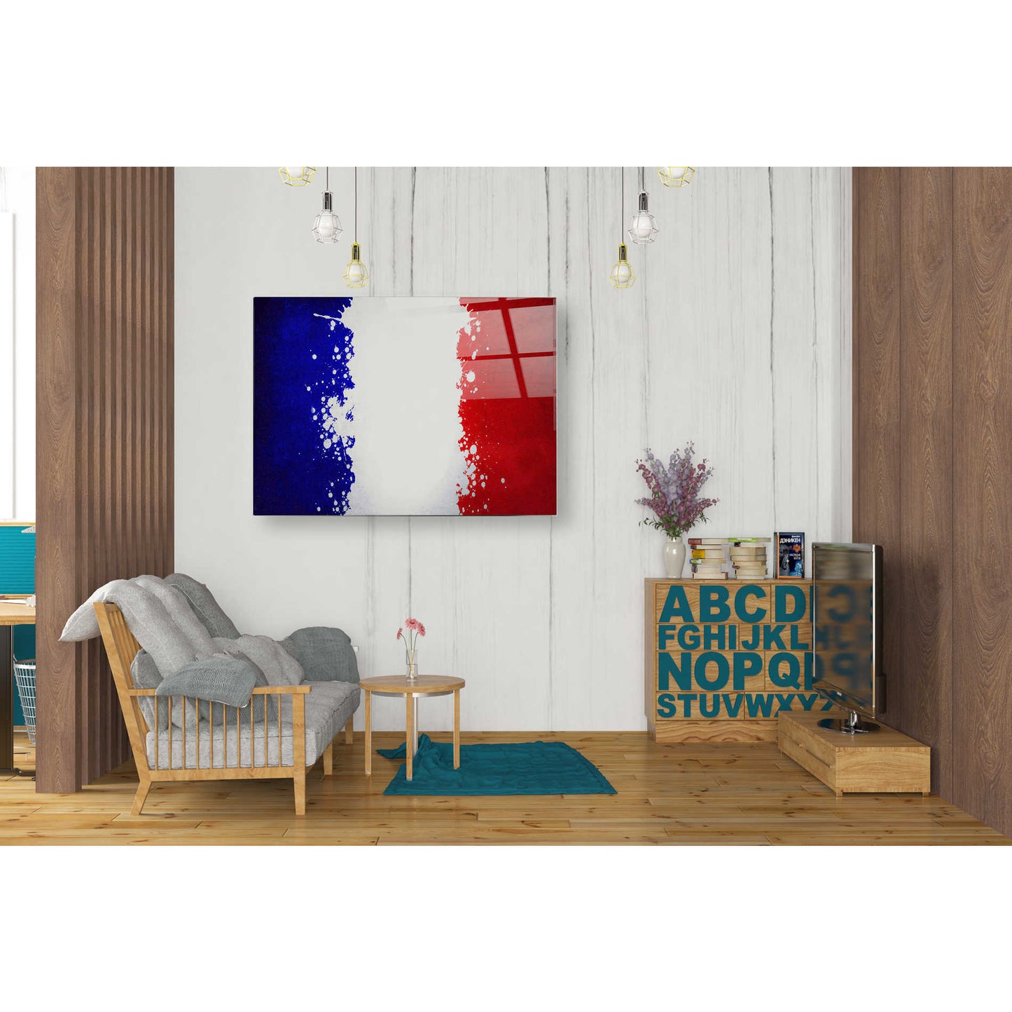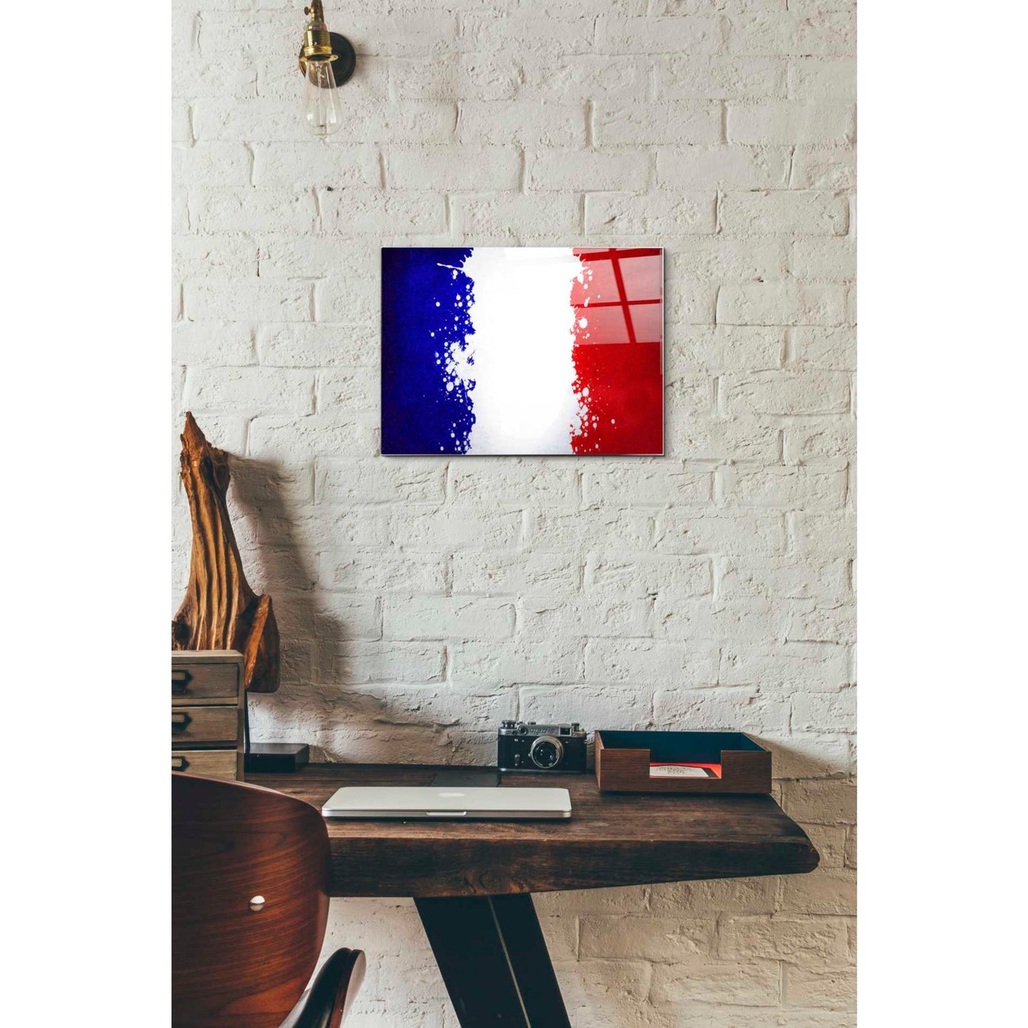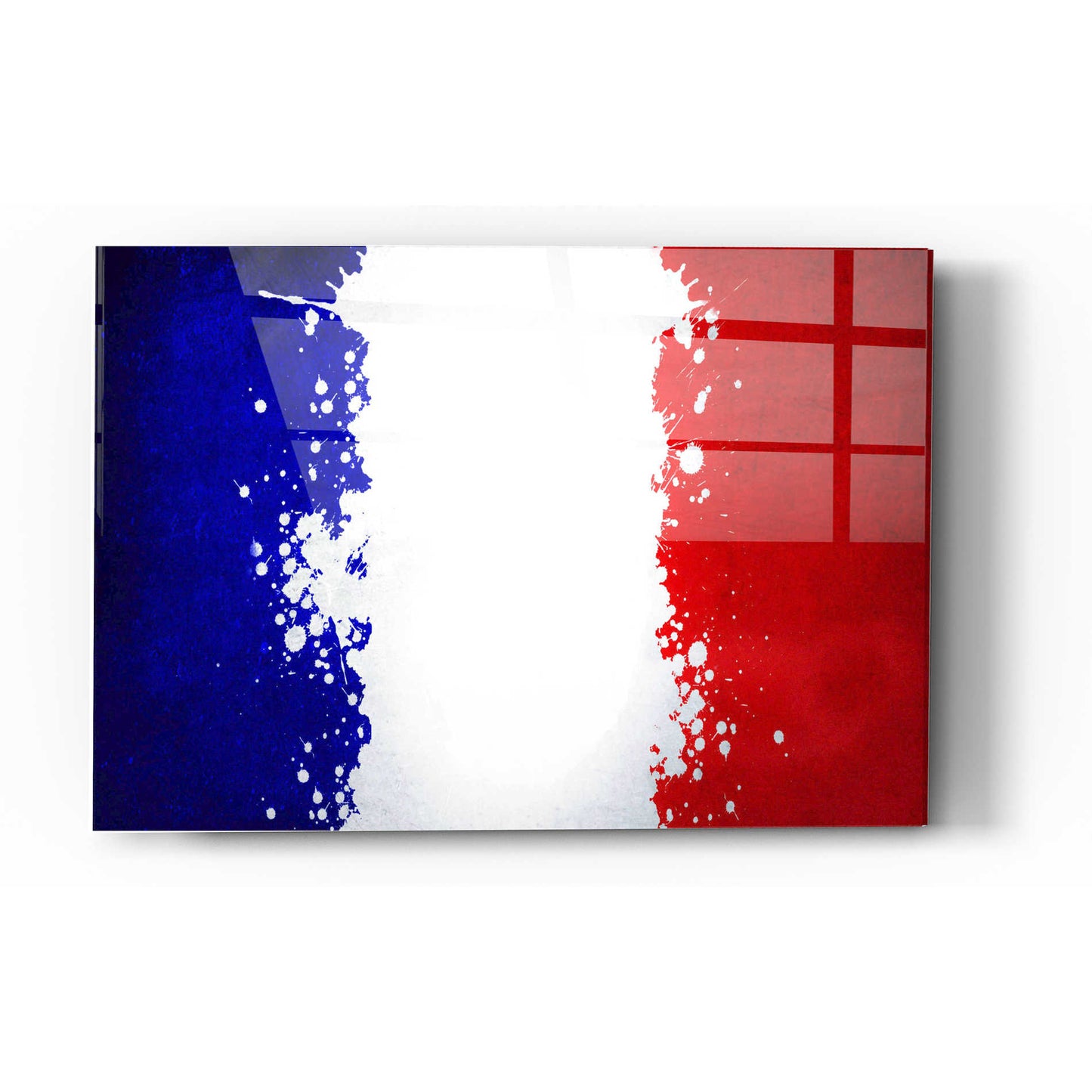 "France" by Epic Graffiti Portfolio printed on crystal clear acrylic glass. Featuring the flag of France in a drip style. Part of an art series rendered in an abstract expressionist style. This is a homage to Pollock and a visual conversation of abstraction versus the depiction of the figure. In this case, subjects of what we're familiar with: flags of the world.