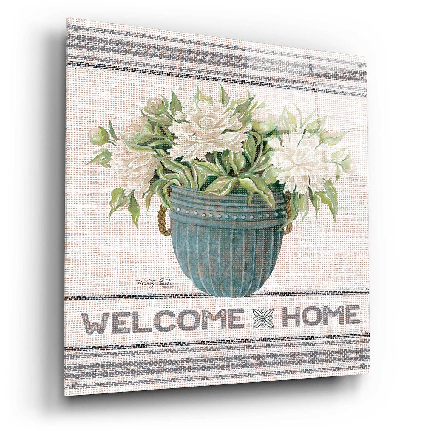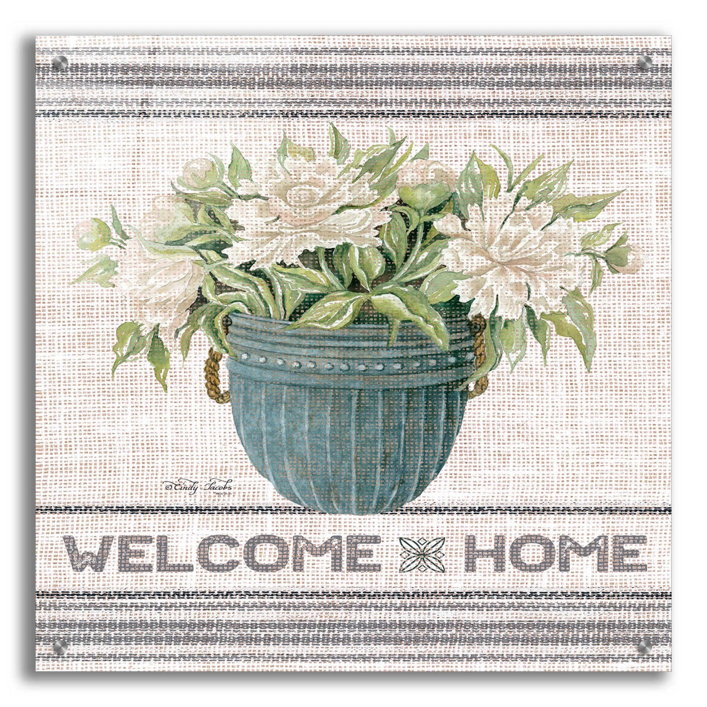 Epic Art 'Galvanized Peonies Welcome Home' by Cindy Jacobs, Acrylic Glass Wall Art