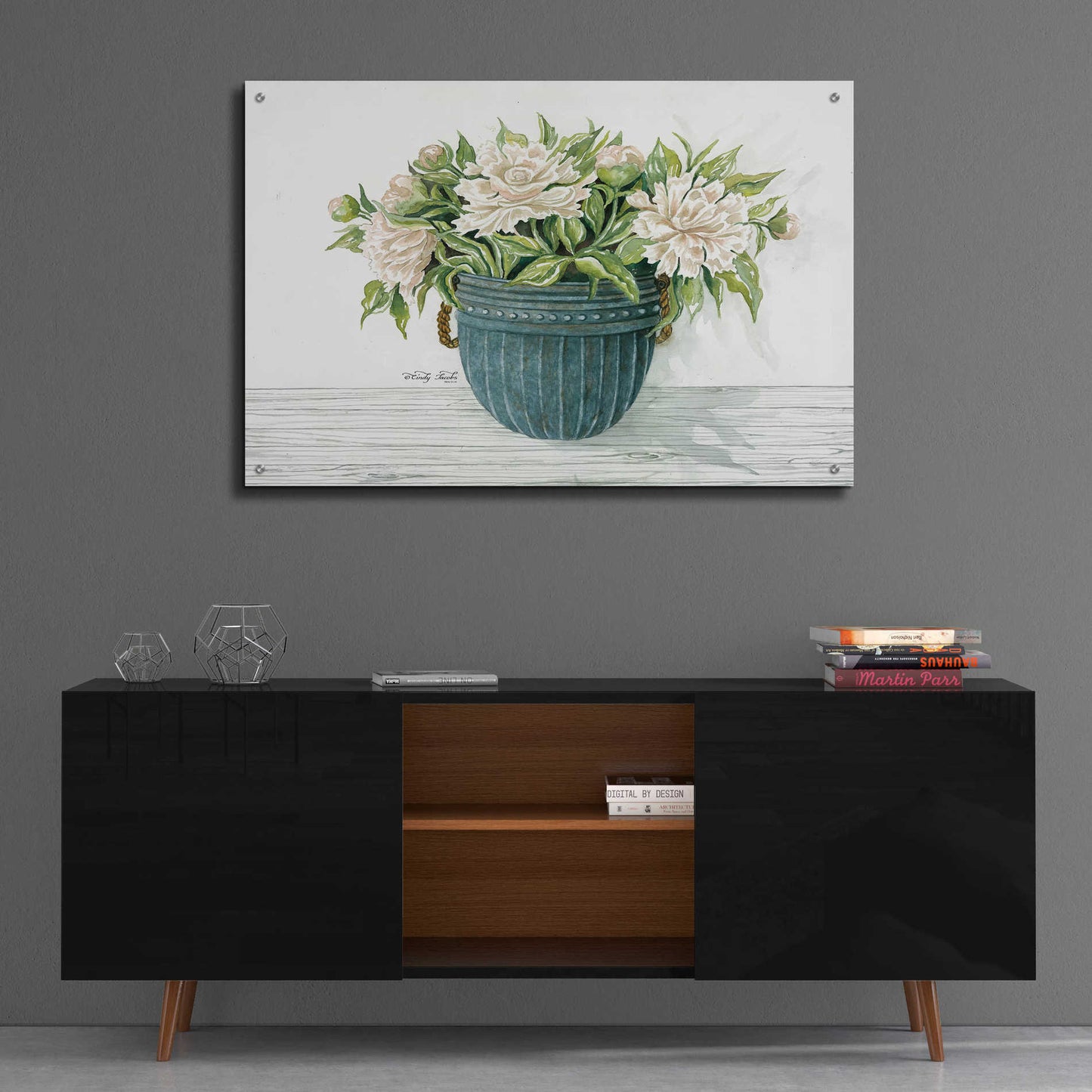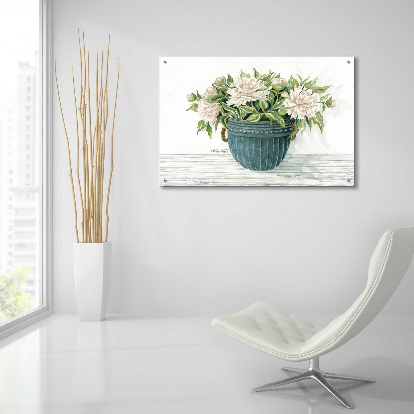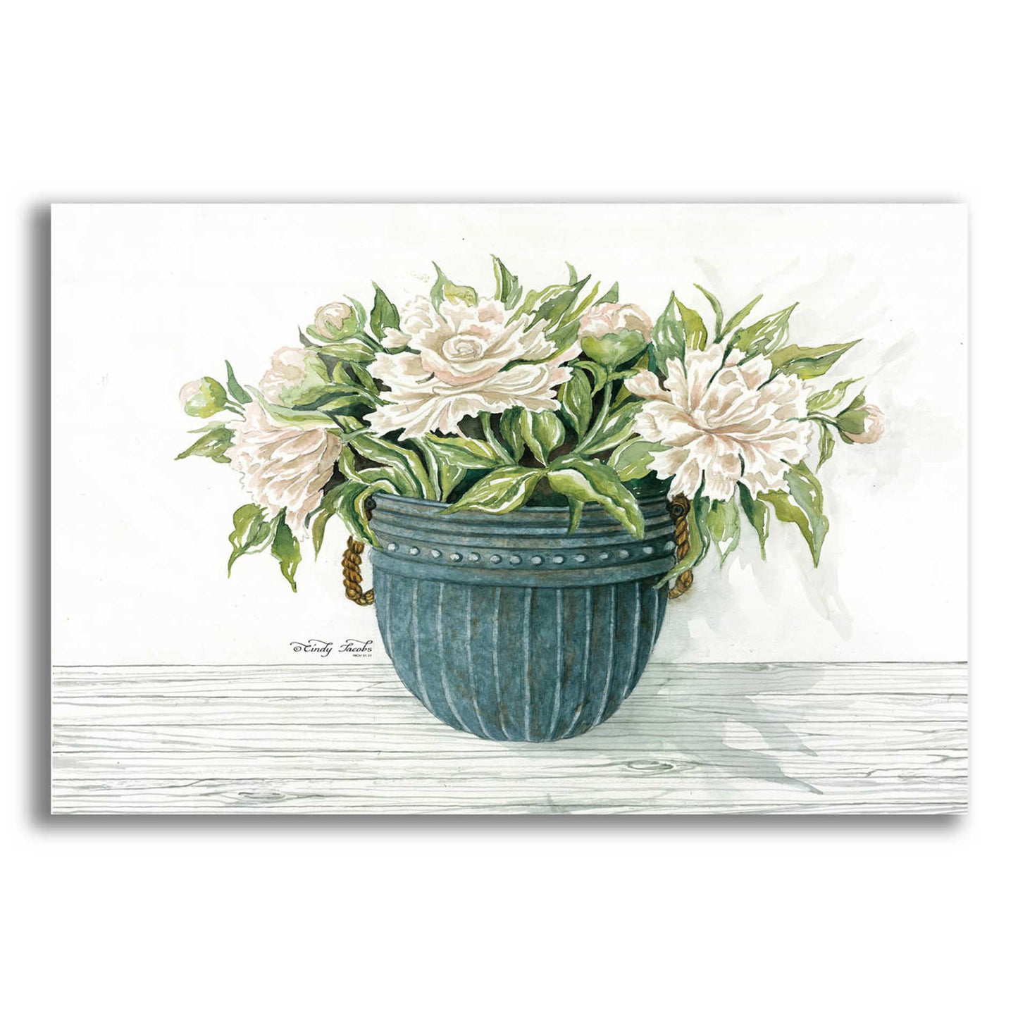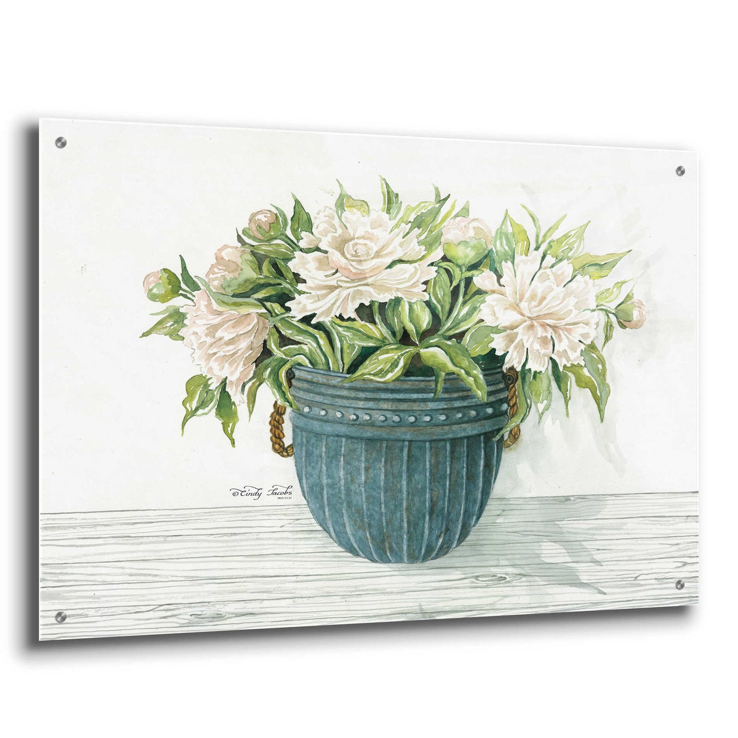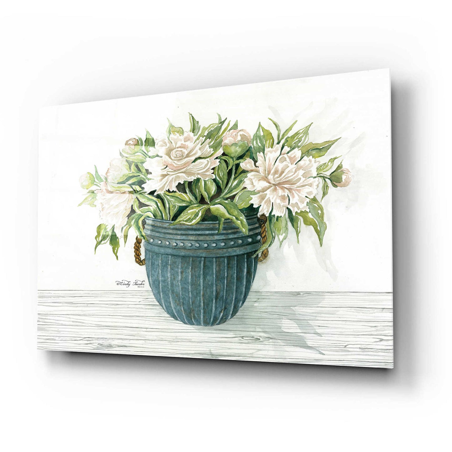 Epic Art 'Galvanized Pot Peonies' by Cindy Jacobs, Acrylic Glass Wall Art