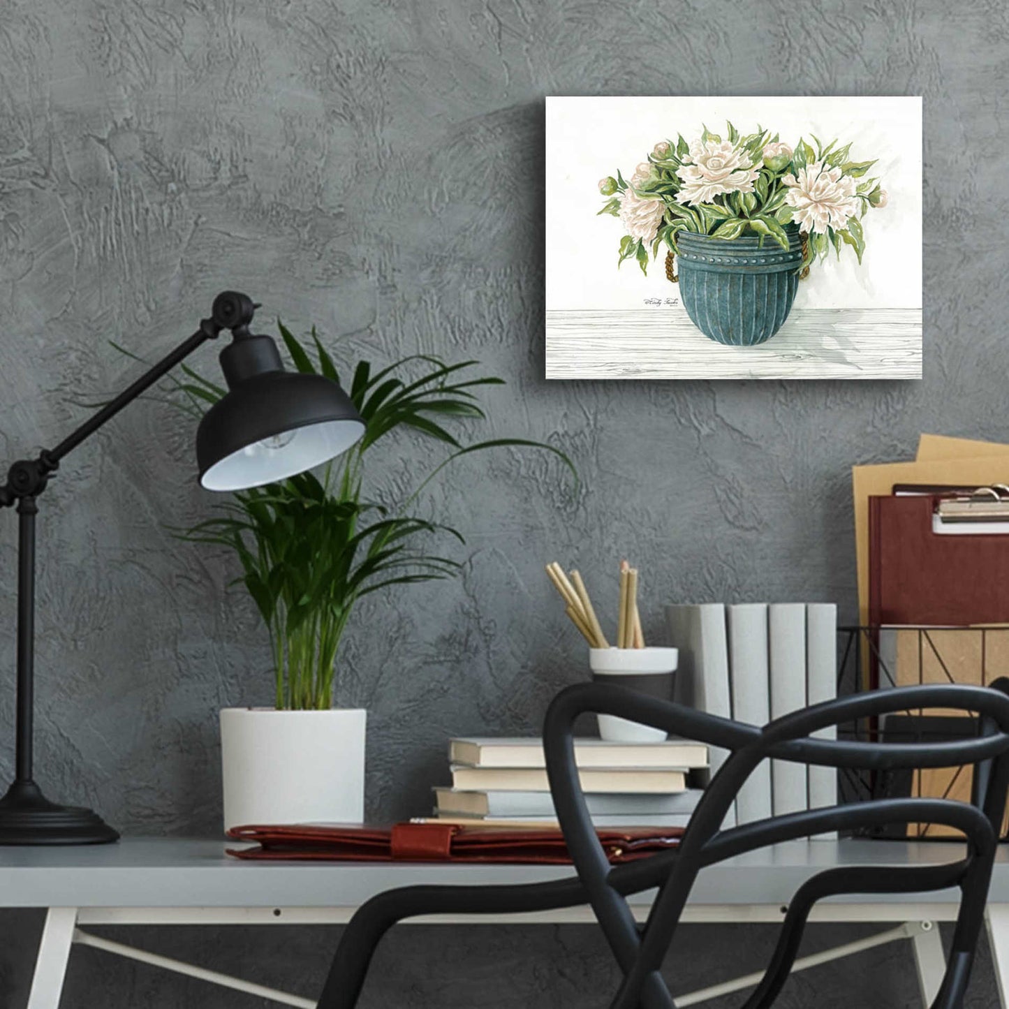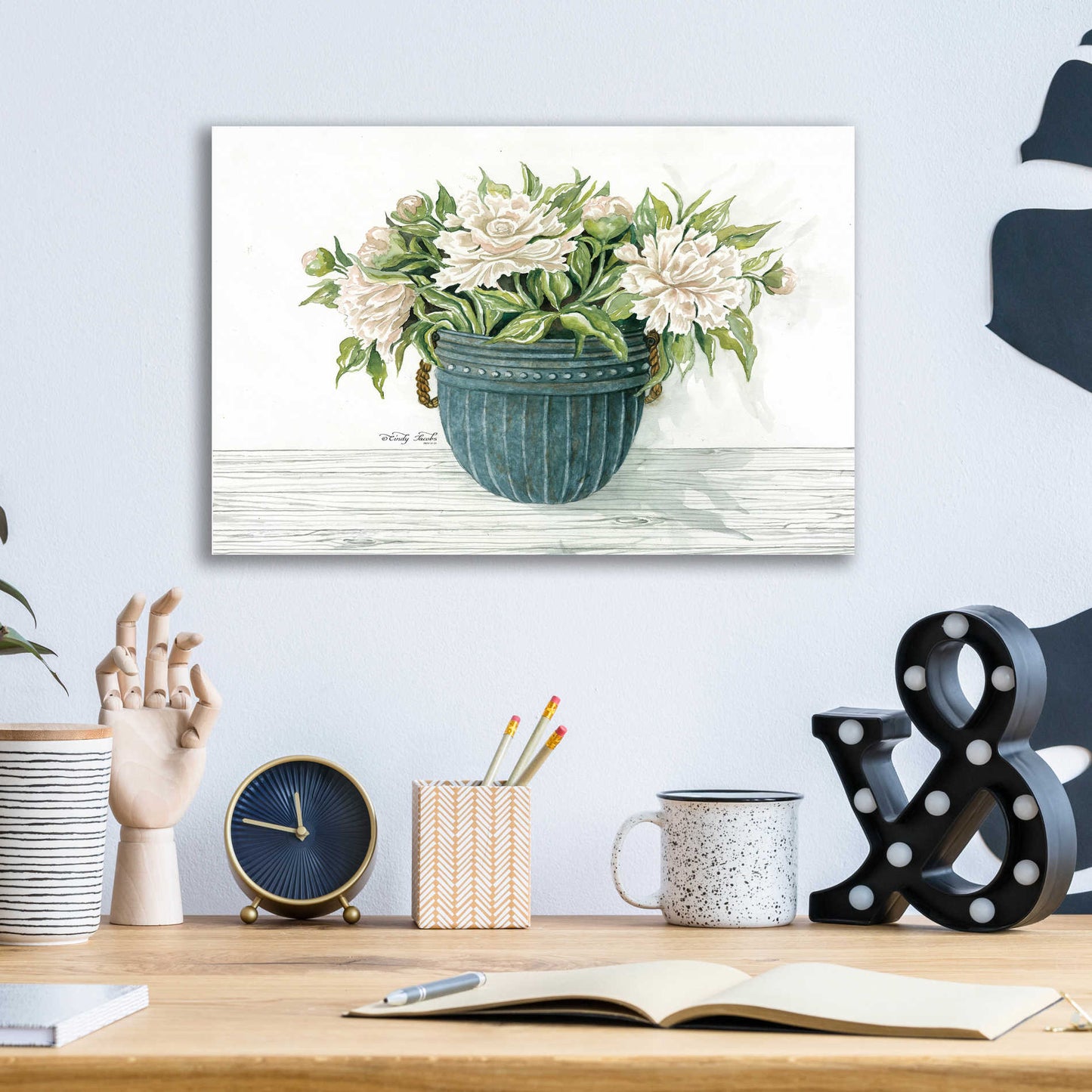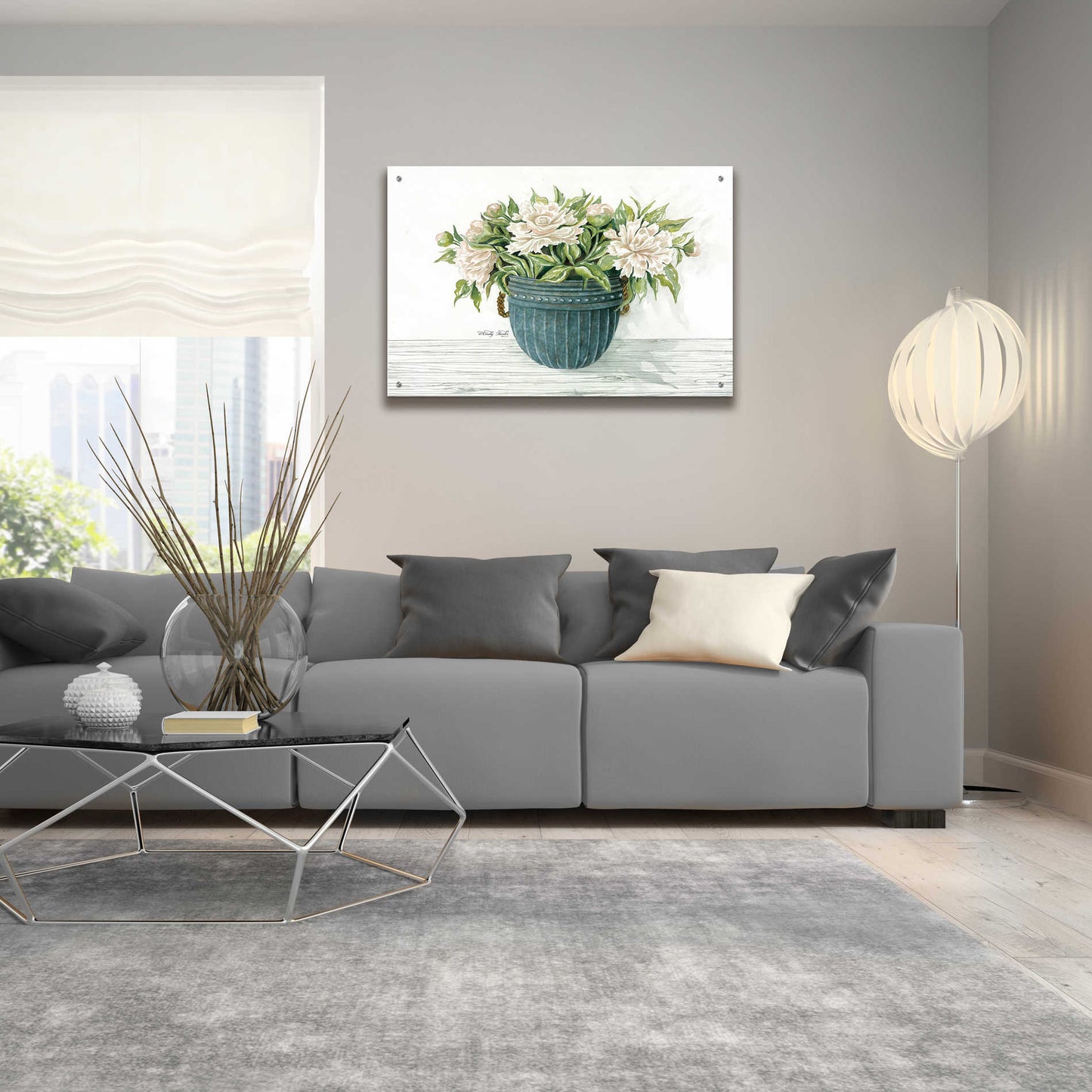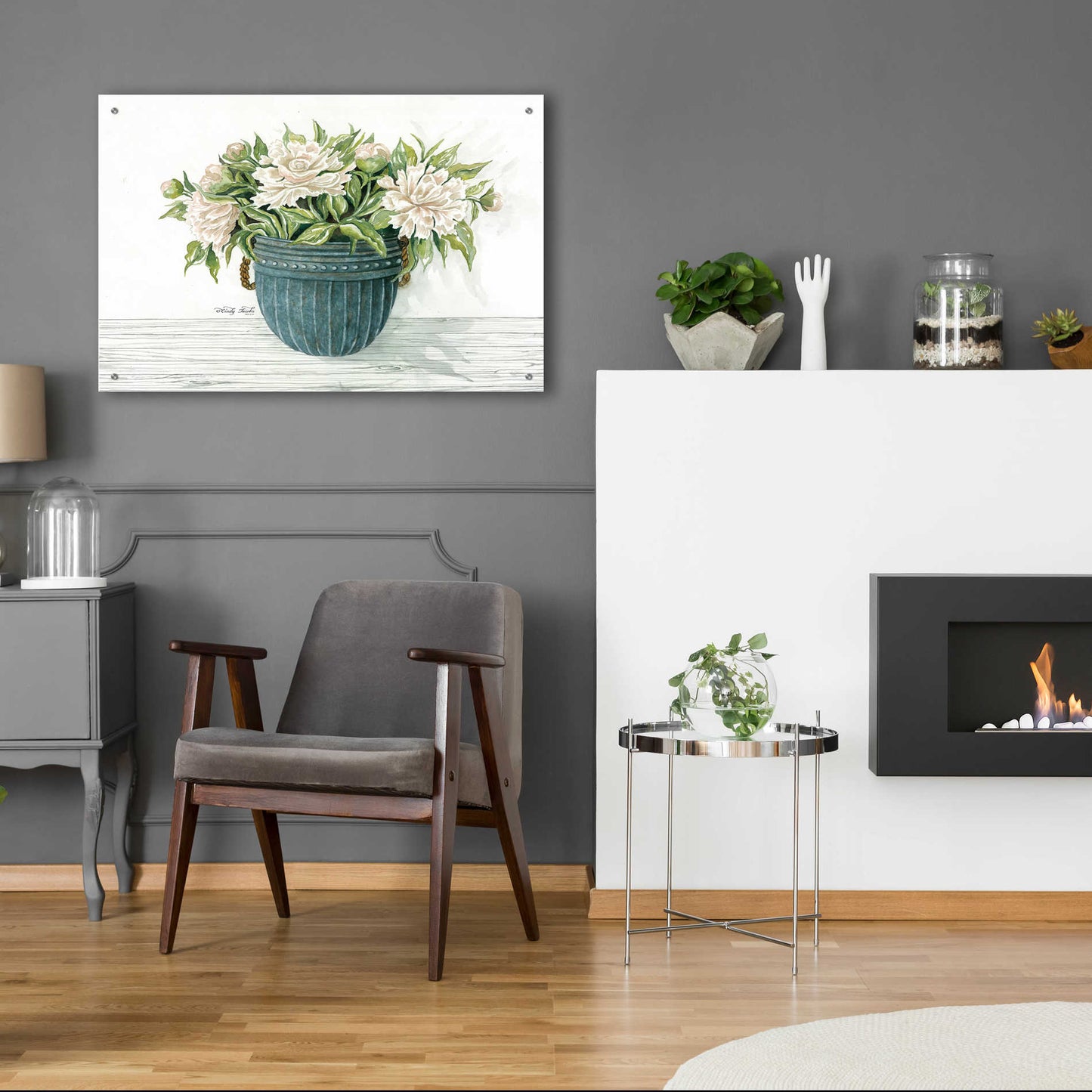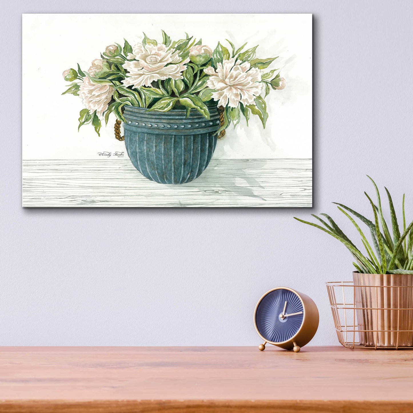 Epic Art 'Galvanized Pot Peonies' by Cindy Jacobs, Acrylic Glass Wall Art