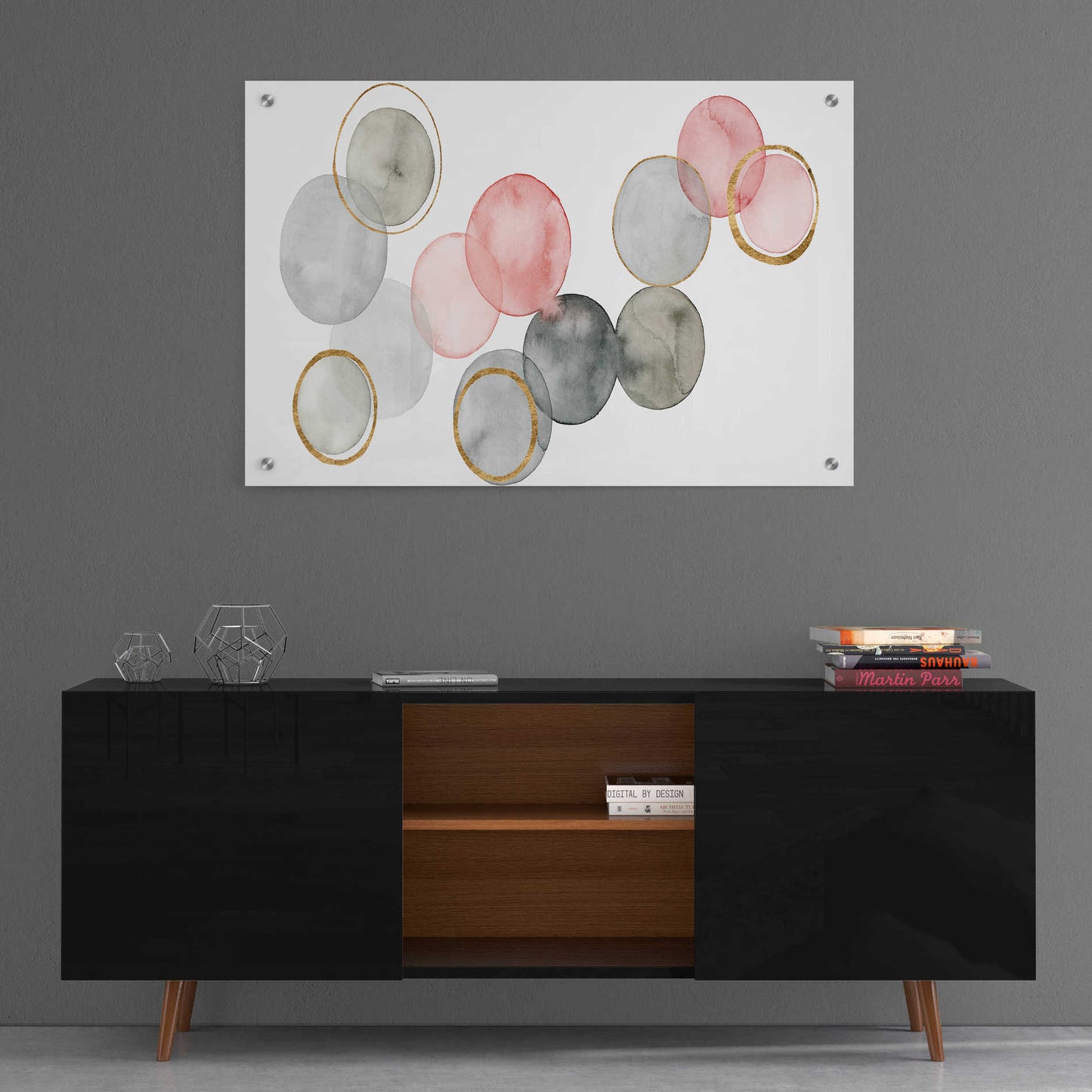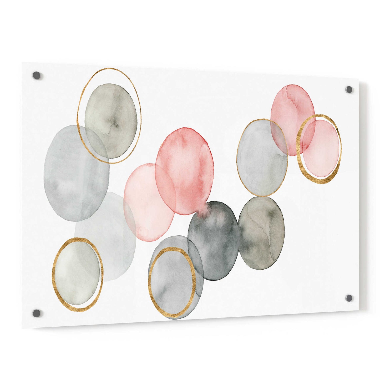 "Gilded Spheres II" by Grace Popp. Grace Popp earned her BFA in Communication Arts from Virginia Commonwealth University. Her primary medium has become watercolor, which she periodically supplements with other materials. She is inspired by nature, films, history, current events, and other artists both past and present. She currently lives in Charlottesville VA, with her partner and two perfect cats, Hitch and Ollie. Acrylic wall art looks amazing in your home or business. Printed on the back of the acrylic giving it depth and easy maintenance. The highly durable and hard-to-damage qualities make high definition acrylic the ideal wall art for hotels, rental properties, and restaurants. Now Epic Art brings you unmatched value in contemporary wall decor for your home as well. From small sizes to extra large sizes, it is easy to hang, won"t shatter like glass if it ever falls down, and is easy to maintain. Simply dust it off or use a damp soft cloth for cleaning.