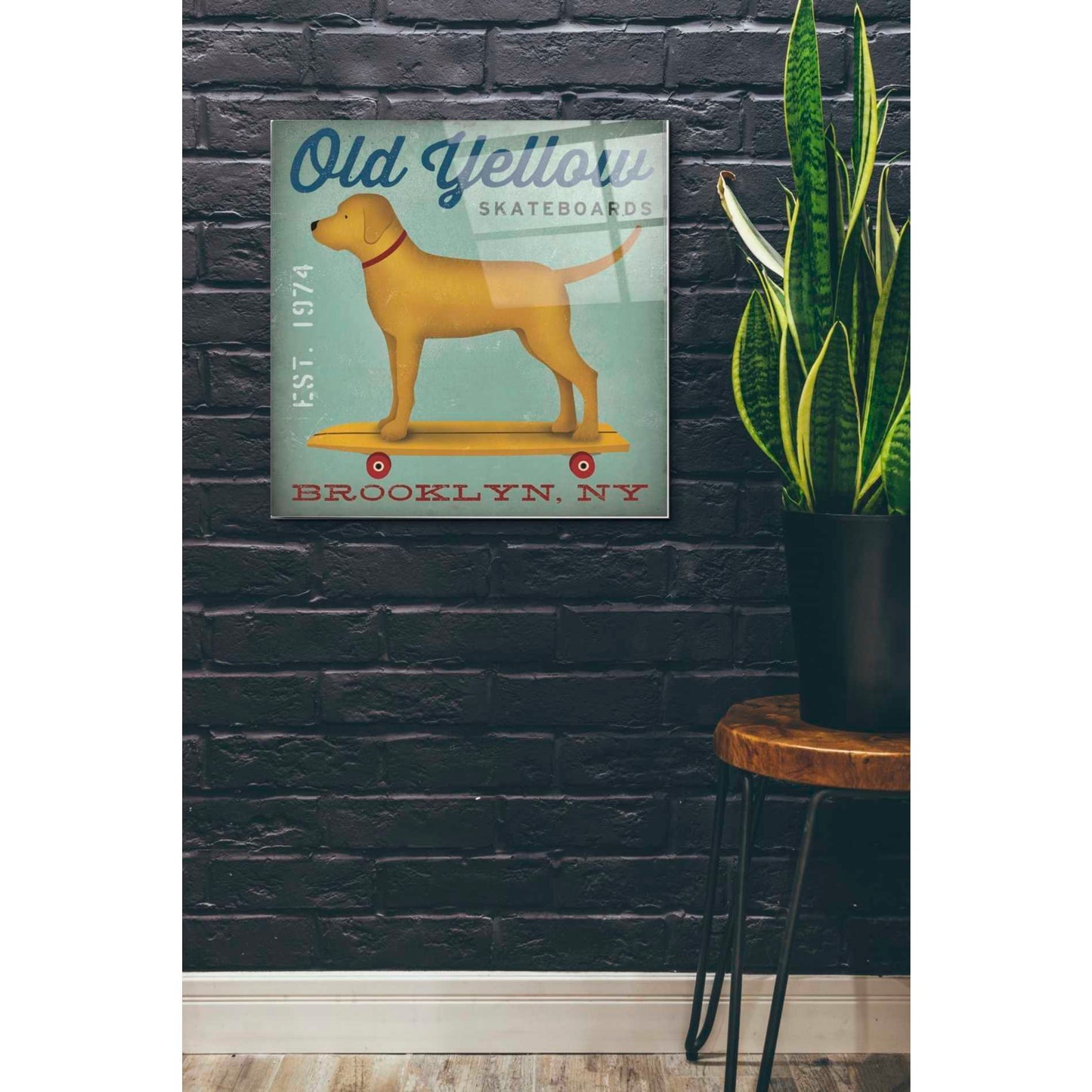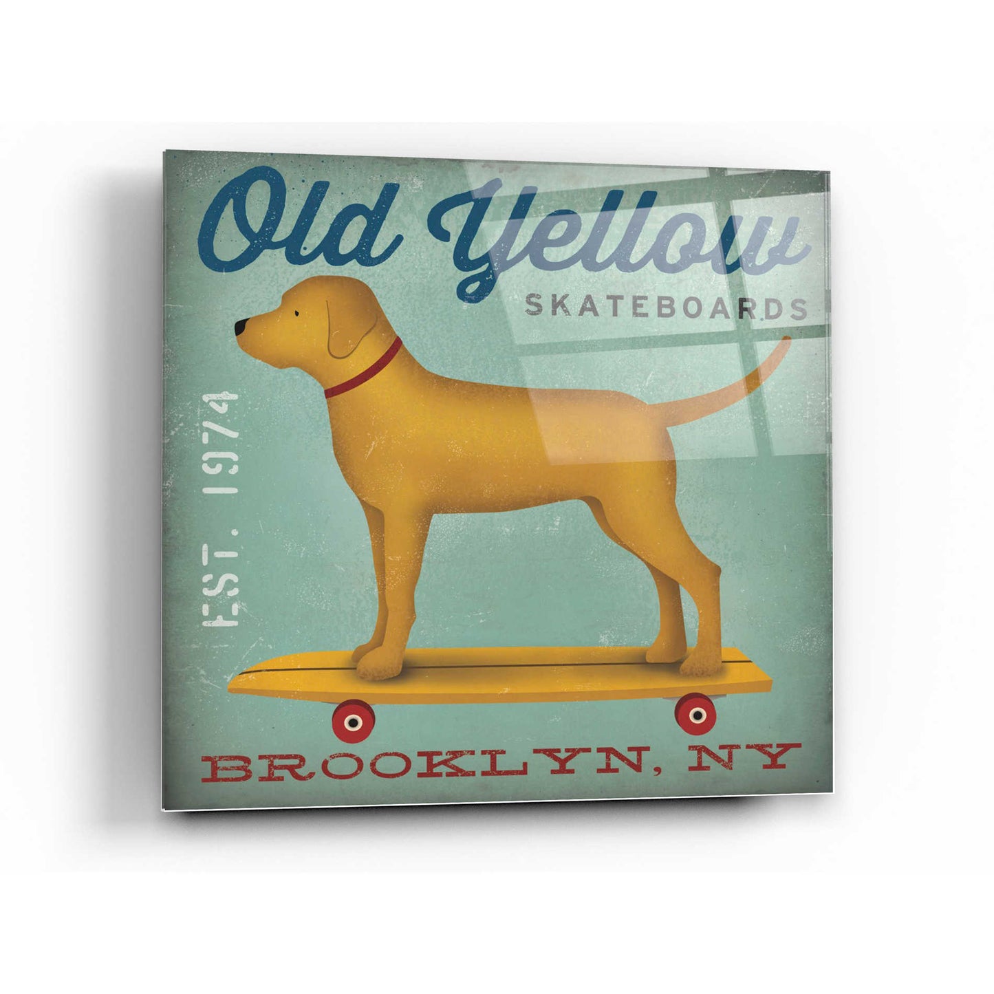 "Golden Dog on Skateboard" by Ryan Fowlerprinted on crystal clear acrylic glass. Ryan Fowler studied photography and photographic printing methods, both in a darkroom and on a computer. He uses his drawings, paintings, and graphic illustrations to create his work inspired" by nature, advertising design, and New England and Pacific Northwest iconography. Ryan uses a combination of traditional and modern techniques for his various subject matters; which include animals, landscapes, children"s art, typography, and graphic design. Acrylic wall art looks amazing in your home or business. Printed on the back of the acrylic giving it depth and easy maintenance. The super durable and hard-to-damage qualities make it the ideal wall art for hotels, rental properties, and restaurants. Now Epic Art brings it to you at unbelievably low prices making it very affordable for your home as well. From small sizes to extra large sizes, it is easy to hang, won"t shatter like glass if it ever falls down, and is easy to maintain. Simply dust it off or use a damp soft cloth for cleaning. For small sizes, mounting brackets and padded bumpers will be attached for simple hanging. For the larger sizes, pre-drilled holes and fitted metal standoffs are included for easy wall installation.